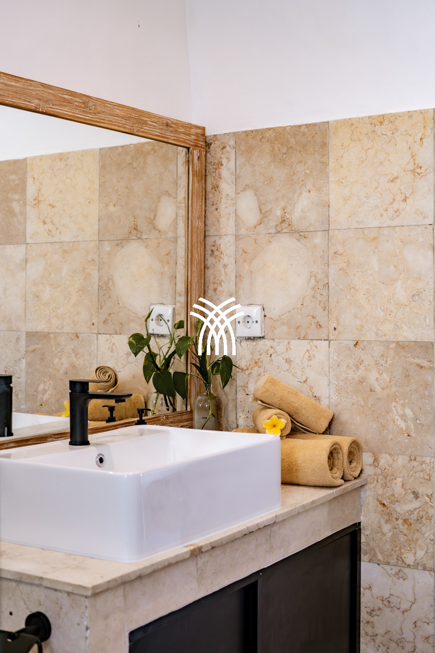 Conçue pour les couples, les petites familles ou les surfeurs recherchant la tranquillité après les vagues, la villa se déploie sur environ 160 mètres carrés d'un espace de vie soigneusement conçu, où deux chambres spacieuses avec des lits king-size, des draps moelleux et la climatisation créent une atmosphère de confort et de sérénité. Deux salles de bains élégantes avec des équipements modernes et des douches de pluie améliorent l'indulgence quotidienne, tandis que la piscine privée encadrée de transats invite à des moments de détente sous le soleil chaud de Bali. Une cuisine fonctionnelle équipée d'un réfrigérateur, d'un micro-ondes et d'équipements essentiels, complétée par un comptoir haut et des chaises hautes, crée un cadre accueillant pour des repas partagés et des moments sociaux sans effort, tandis que le stationnement privé et sécurisé pour une voiture et au moins deux motos garantit la commodité et la tranquillité d'esprit tout au long de votre séjour.