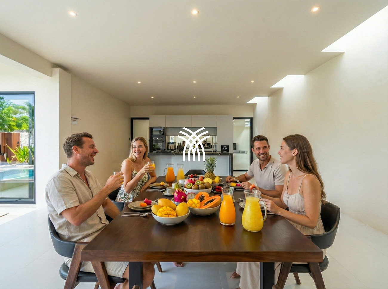 Les invités bénéficient d'un accès exclusif à l'ensemble de la villa, à la piscine privée et au jardin tropical, complété par un service de ménage quotidien, un WiFi haut débit, la climatisation dans toutes les chambres avec ventilateurs supplémentaires, des équipements de salle de bain complets et un parking sécurisé sur place. Une équipe dédiée est disponible pour organiser des locations de scooters, des massages à la villa, des visites, des transferts aéroport et des recommandations culinaires personnalisées, garantissant que chaque séjour soit sans effort et personnalisé dès l'arrivée. Des intérieurs soigneusement préparés et un service attentif permettent aux invités de se concentrer sur la détente, la connexion et des expériences significatives, qu'elles soient partagées en famille ou entre amis, dans un cadre conçu pour inspirer le confort et la joie.