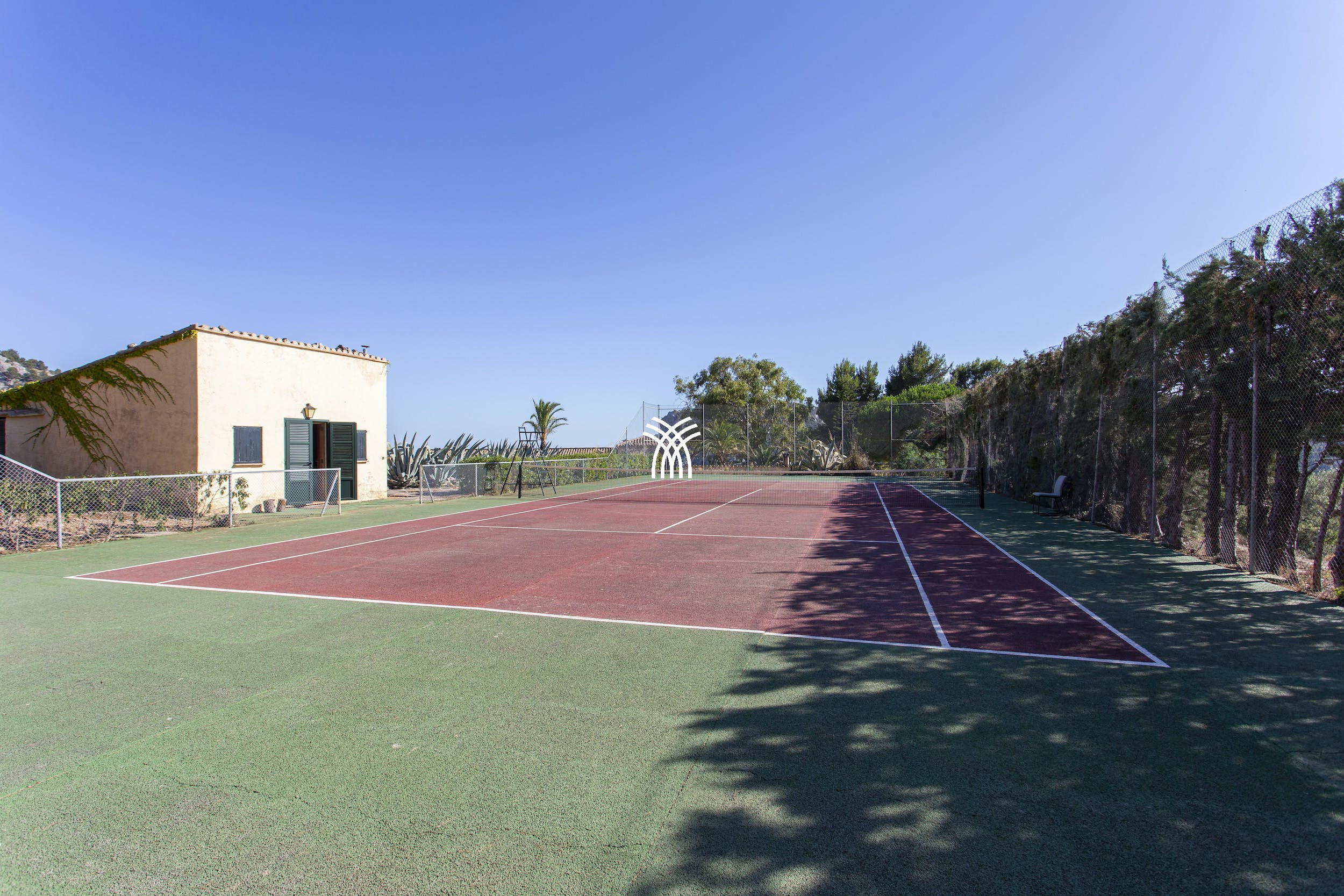 Pénétrez dans le jardin luxuriant où les oliviers, citronniers et palmiers créent un cadre tranquille. L'expérience extérieure est rehaussée par une piscine privée spectaculaire et une cuisine et un espace barbecue couverts high-tech, idéaux pour les dîners du soir ou les rassemblements au bord de la piscine avec une vue panoramique sur le coucher de soleil. Les invités peuvent également profiter d'un court de tennis privé, parfait pour des matchs amicaux dans l'air frais de la montagne.