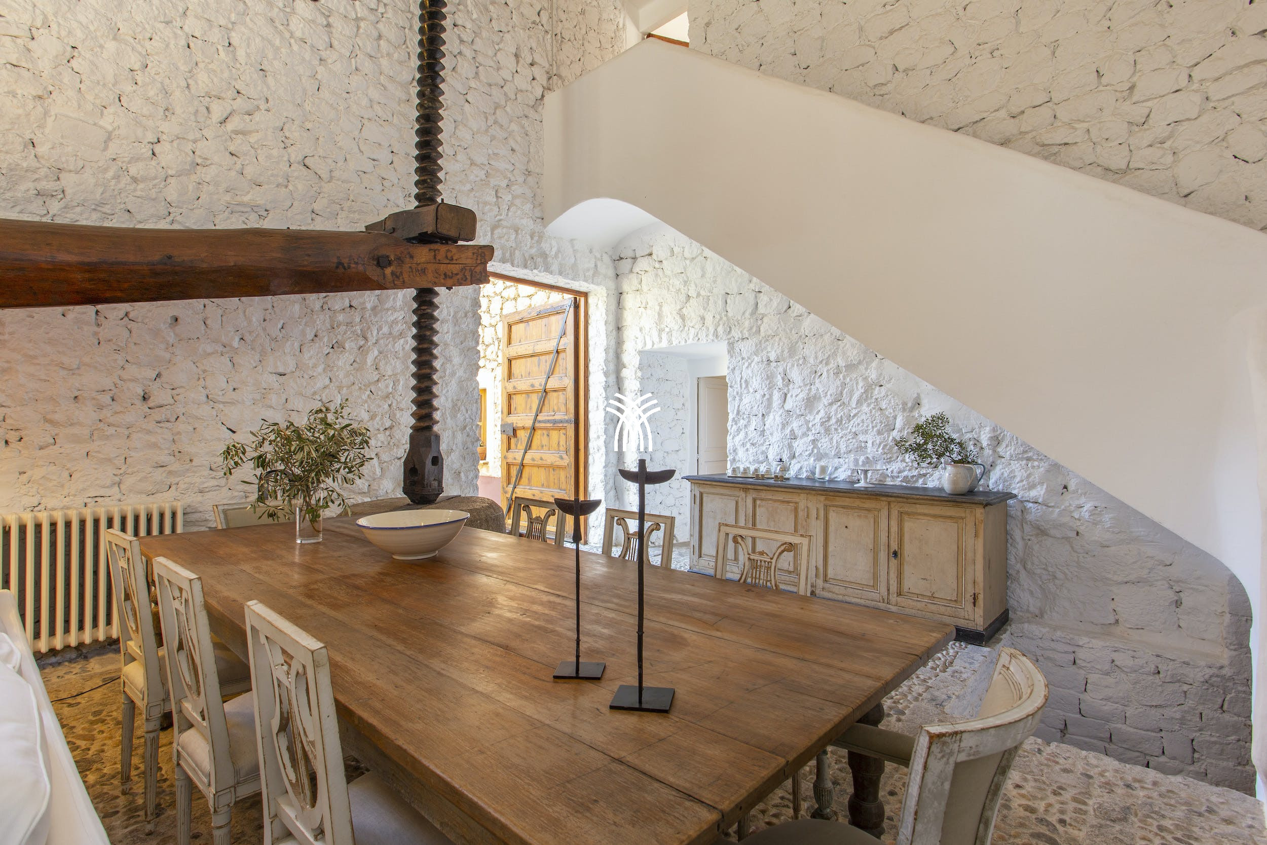 La Sonrisa accueille les invités avec une disposition spacieuse conçue pour la détente et le divertissement. La villa dispose de six chambres doubles élégantes, chacune décorée avec des touches rustiques comme des poutres en bois apparentes, des murs en pierre et des plafonds voûtés, pouvant accueillir jusqu'à 12 invités dans un confort absolu. Les intérieurs reflètent un équilibre raffiné entre histoire et modernité, avec un salon à double hauteur mettant en valeur une cheminée originale de pressoir à huile comme point focal.
