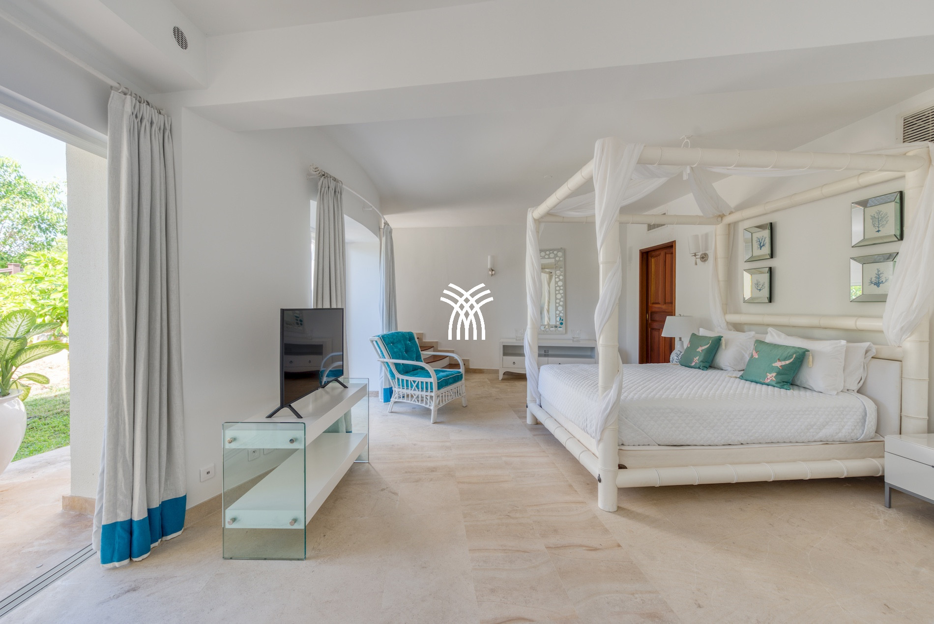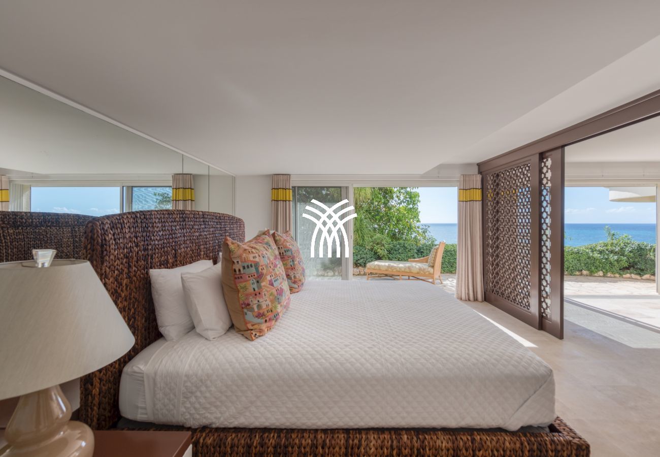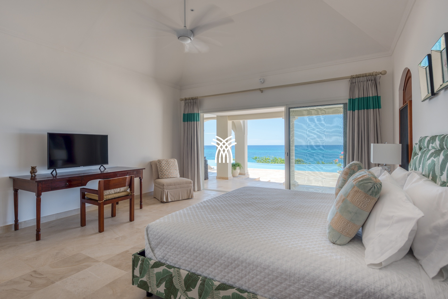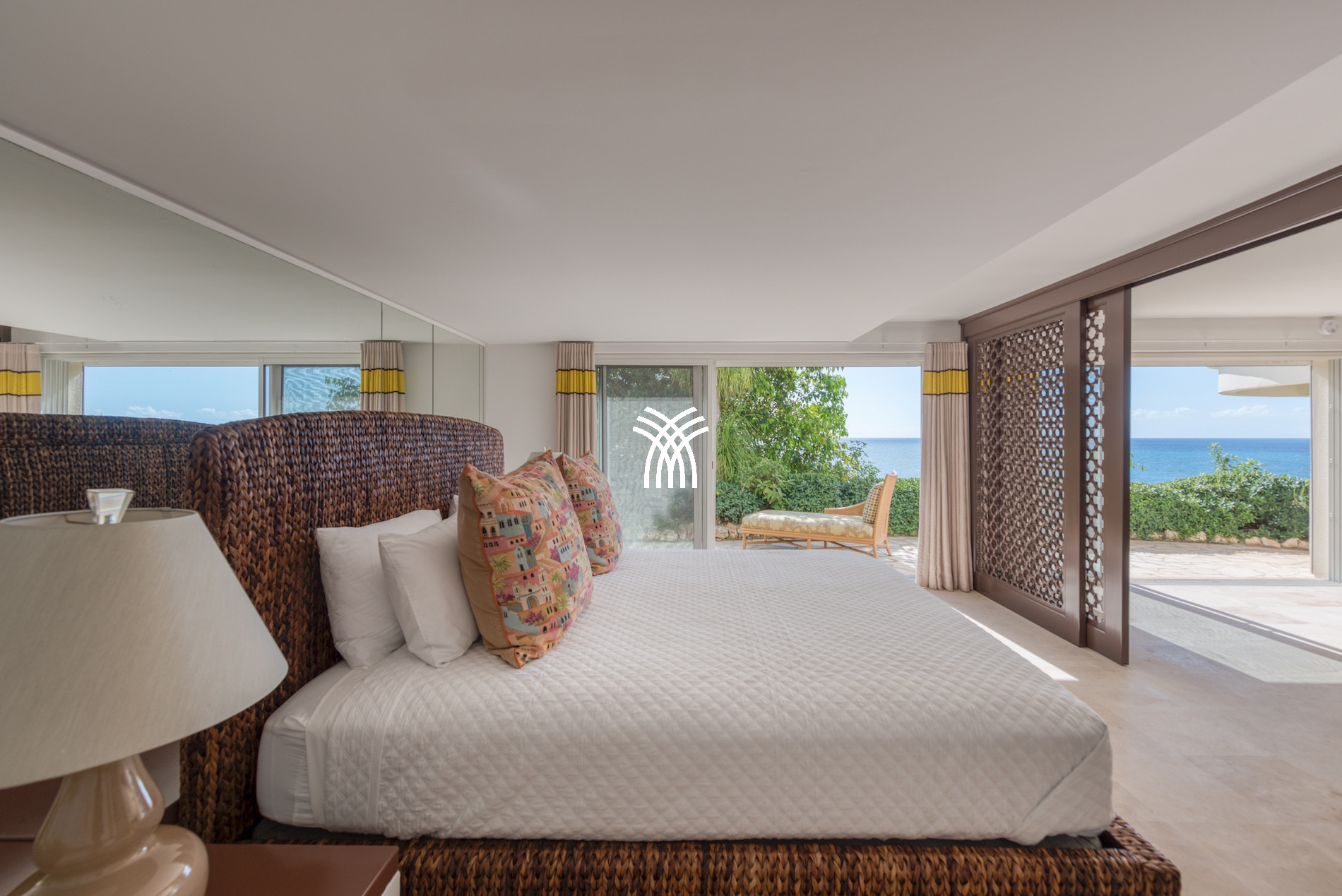 4 chambres de tailles égales ont la vue sur la mer des Caraïbes et sont au niveau de la terrasse de la piscine. La 5ème chambre et sa salle de bains attenante sont au niveau inférieur avec vue sur la mer des Caraïbes. Cette chambre comprend aussi une kitchenette.