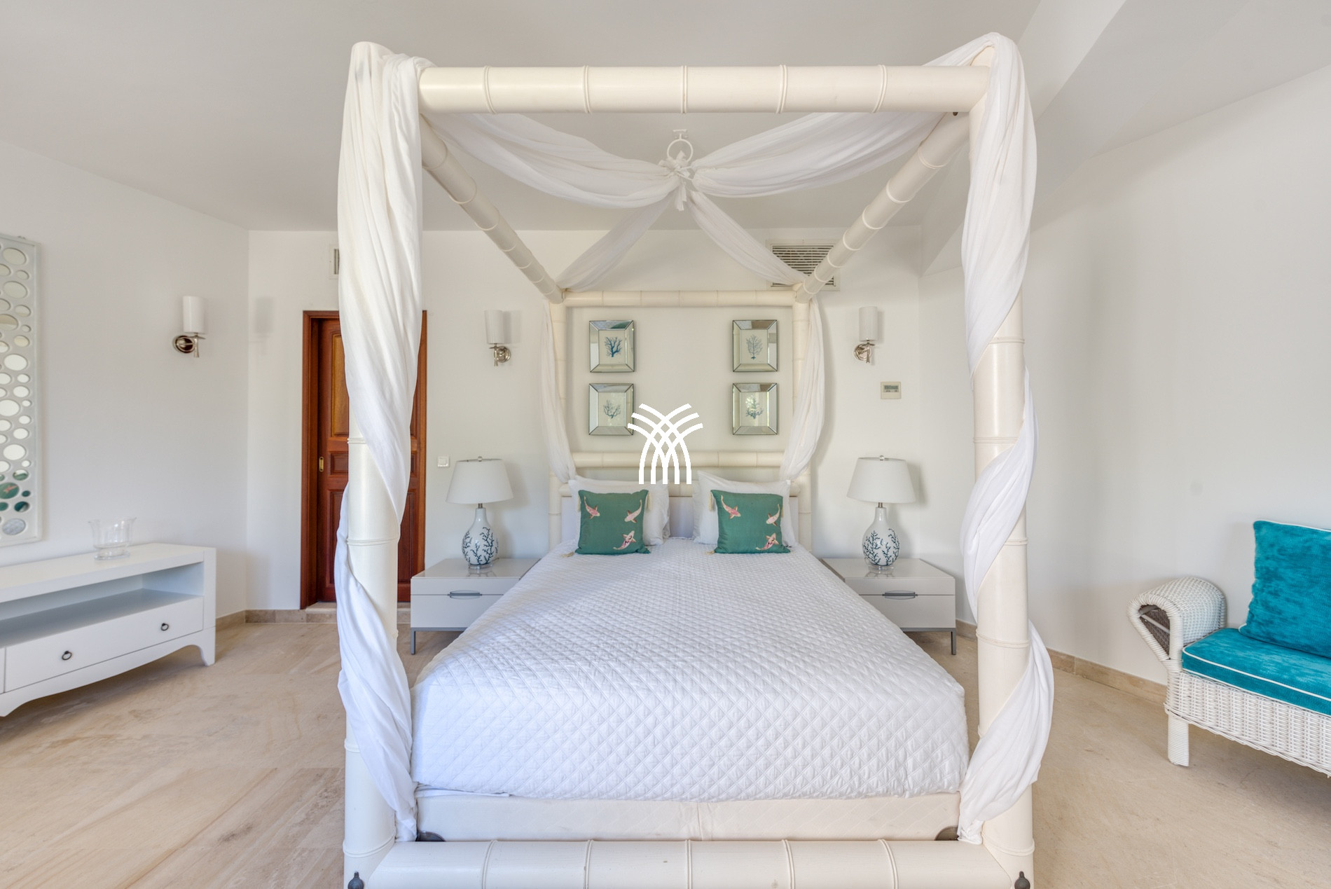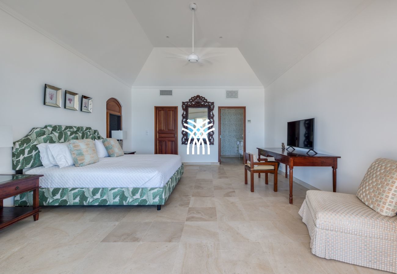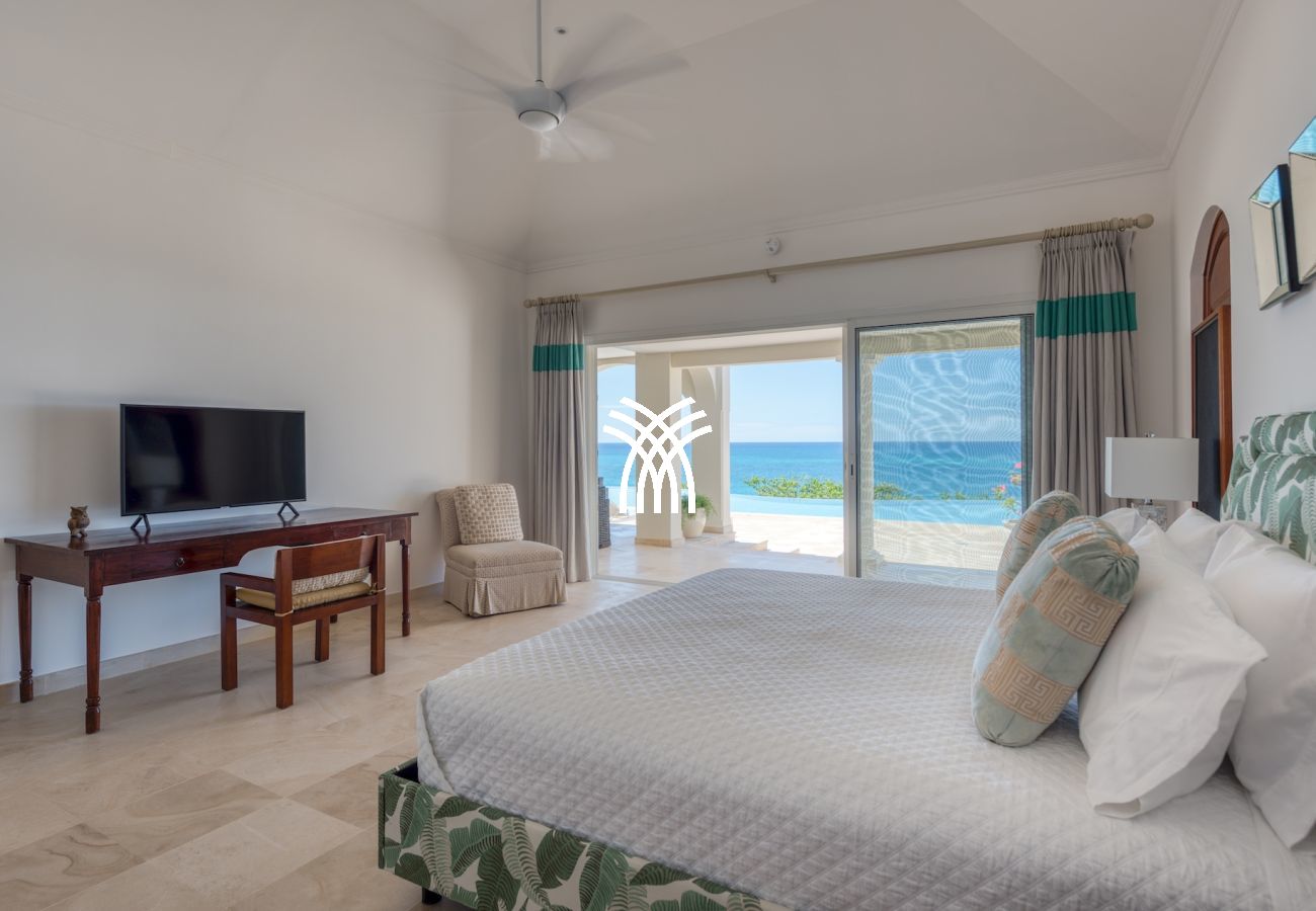 4 chambres de tailles égales ont la vue sur la mer des Caraïbes et sont au niveau de la terrasse de la piscine. La 5ème chambre et sa salle de bains attenante sont au niveau inférieur avec vue sur la mer des Caraïbes. Cette chambre comprend aussi une kitchenette.