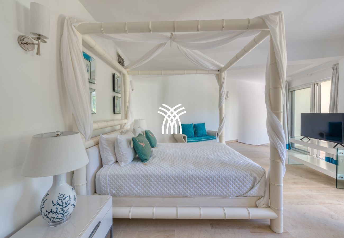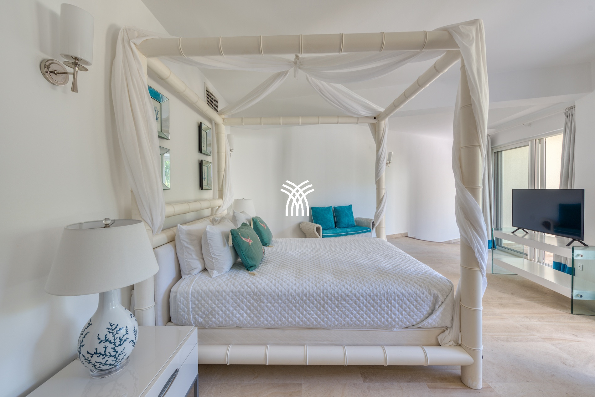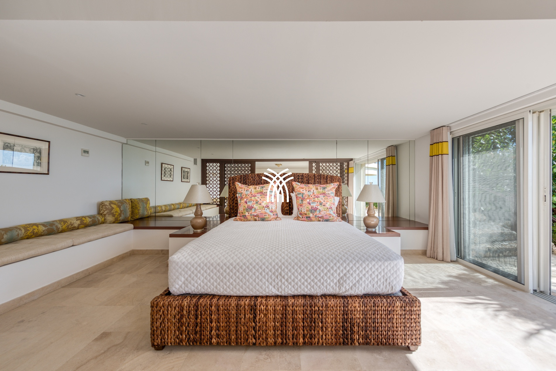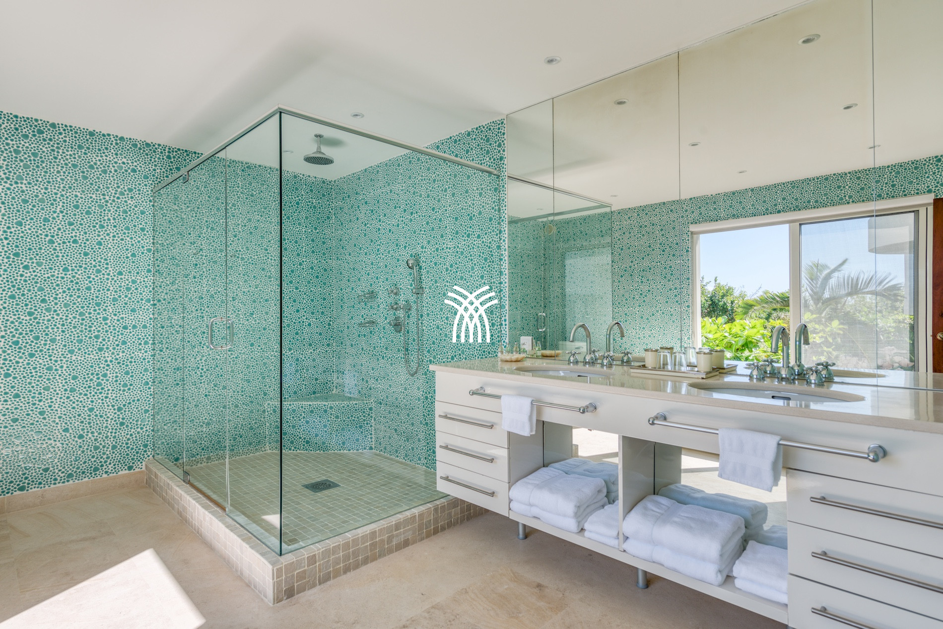 4 chambres de tailles égales ont la vue sur la mer des Caraïbes et sont au niveau de la terrasse de la piscine. La 5ème chambre et sa salle de bains attenante sont au niveau inférieur avec vue sur la mer des Caraïbes. Cette chambre comprend aussi une kitchenette.
