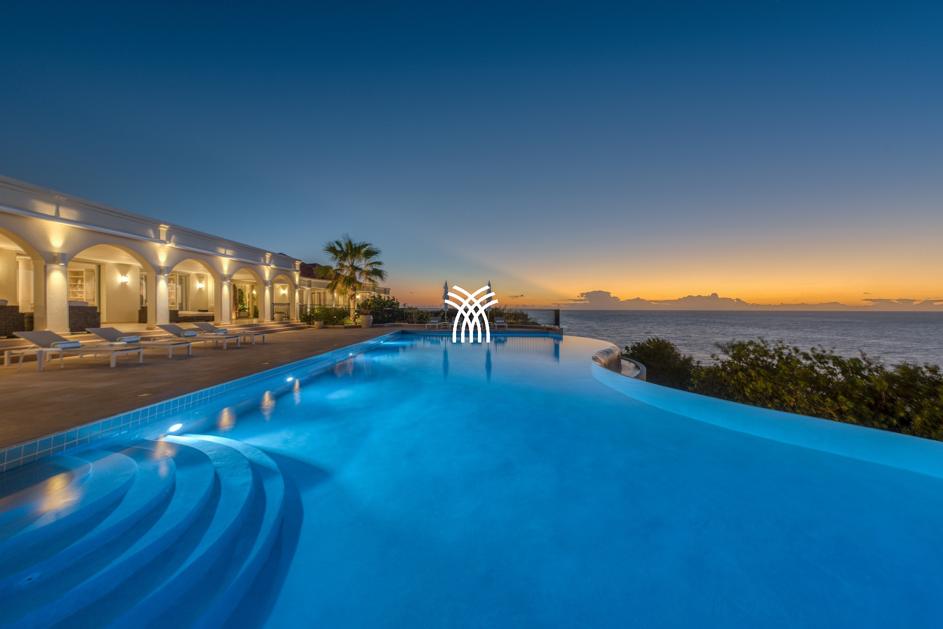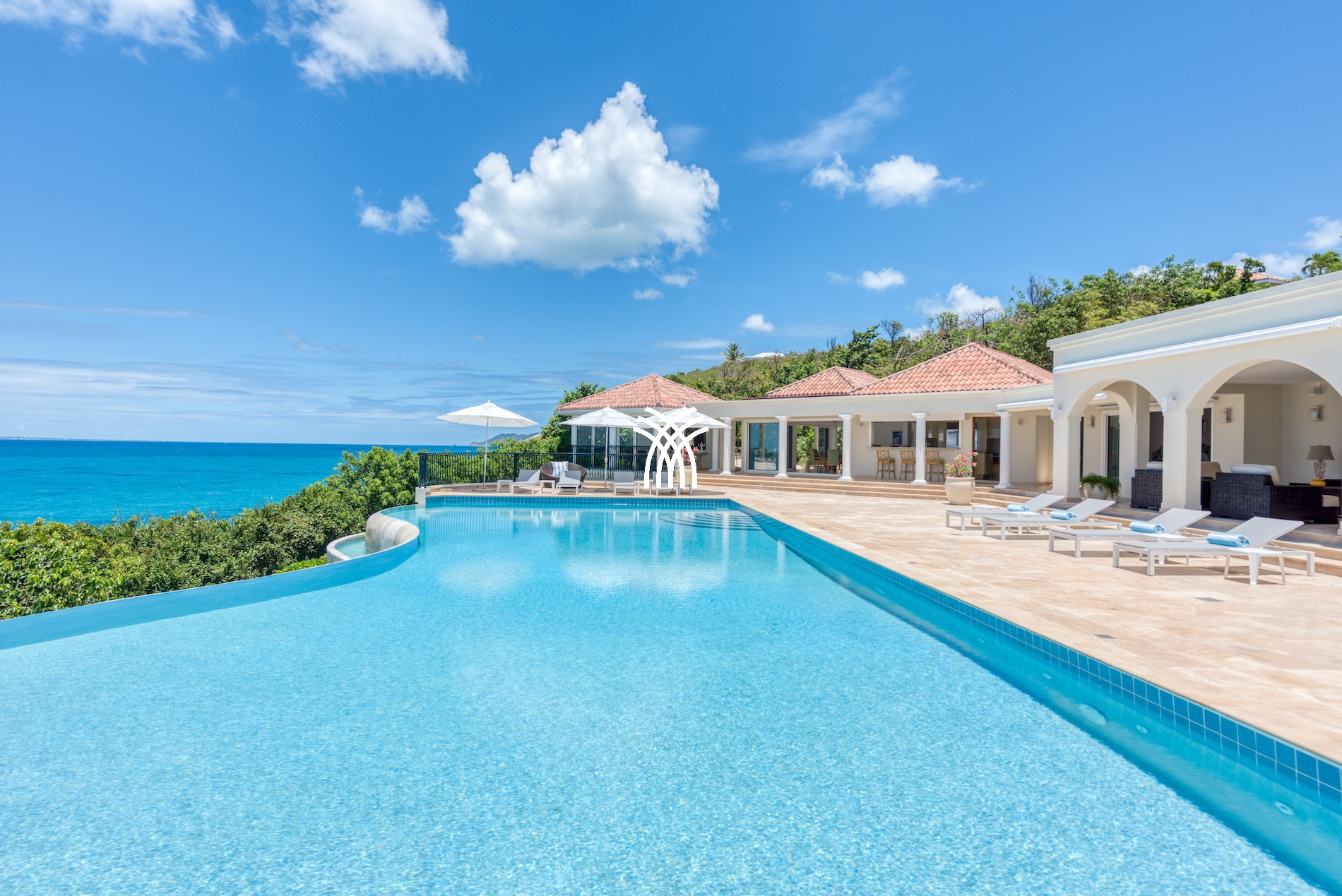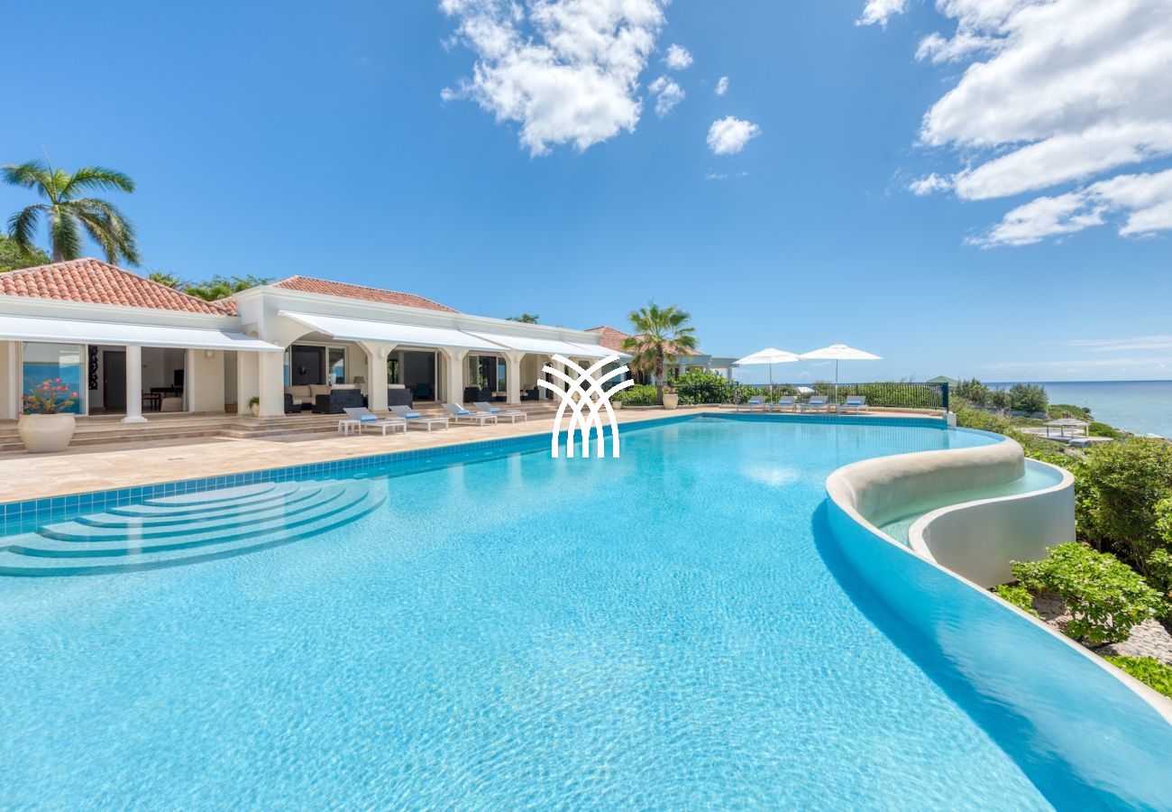 Dès l’entrée, les volumes généreux, la décoration soignée et les matériaux nobles insufflent une atmosphère chaleureuse et apaisante. Entièrement climatisée, la villa s’organise autour d’un vaste salon lumineux, d’une cuisine moderne parfaitement équipée, et d’une grande terrasse extérieure avec bar, salon lounge et espace repas. La piscine chauffée à débordement, bordée de parasols et de transats, surplombe l’horizon, offrant une vue saisissante sur l’océan. Elle est chauffée du 15 octobre au 15 avril, et peut l’être en dehors de cette période sur demande (350 USD/semaine).