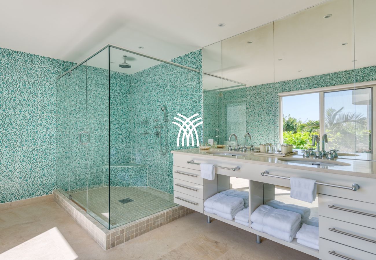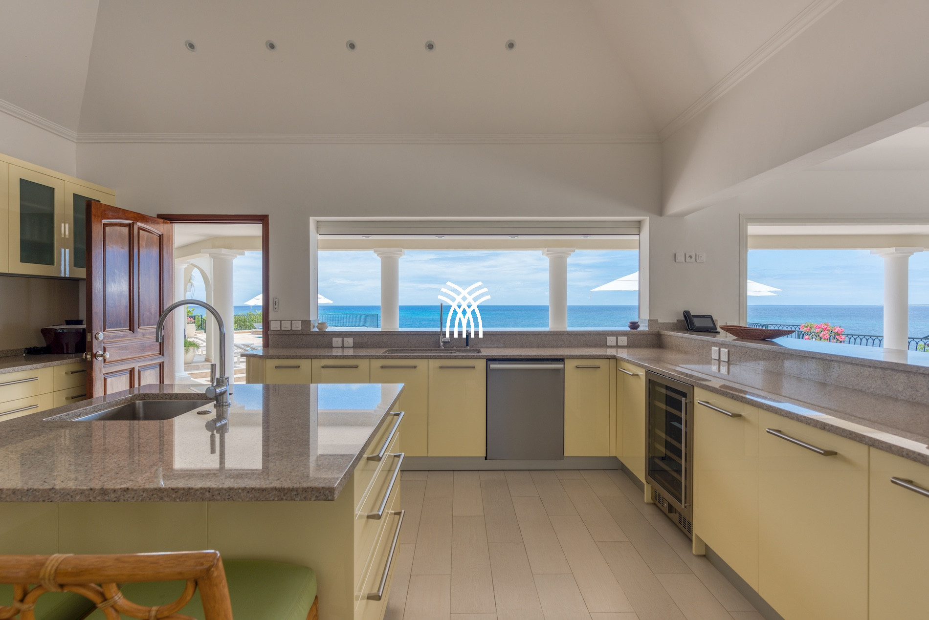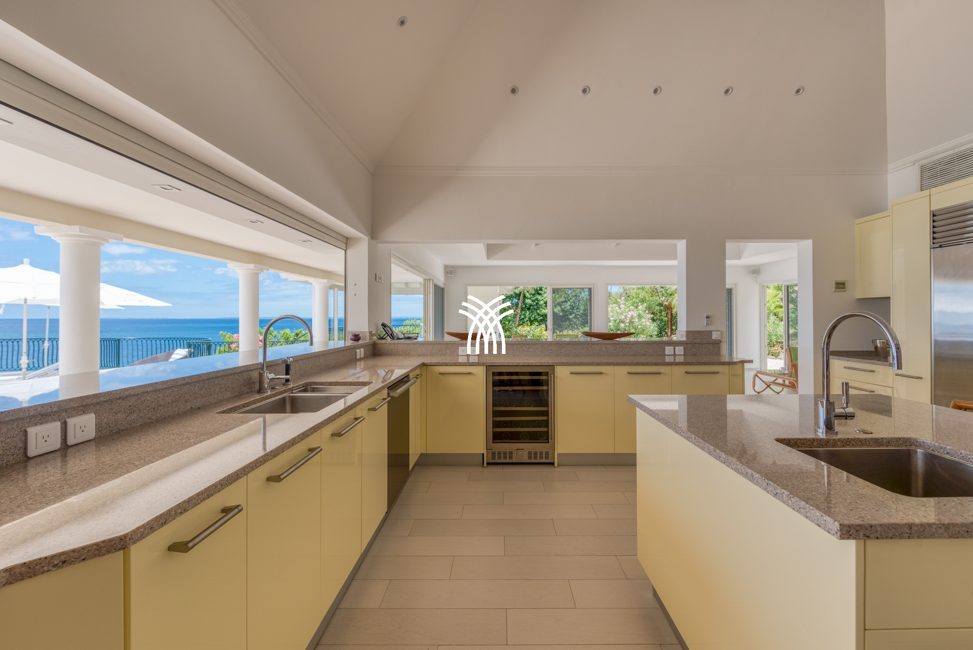 Dès l’entrée, les volumes généreux, la décoration soignée et les matériaux nobles insufflent une atmosphère chaleureuse et apaisante. Entièrement climatisée, la villa s’organise autour d’un vaste salon lumineux, d’une cuisine moderne parfaitement équipée, et d’une grande terrasse extérieure avec bar, salon lounge et espace repas. La piscine chauffée à débordement, bordée de parasols et de transats, surplombe l’horizon, offrant une vue saisissante sur l’océan. Elle est chauffée du 15 octobre au 15 avril, et peut l’être en dehors de cette période sur demande (350 USD/semaine).