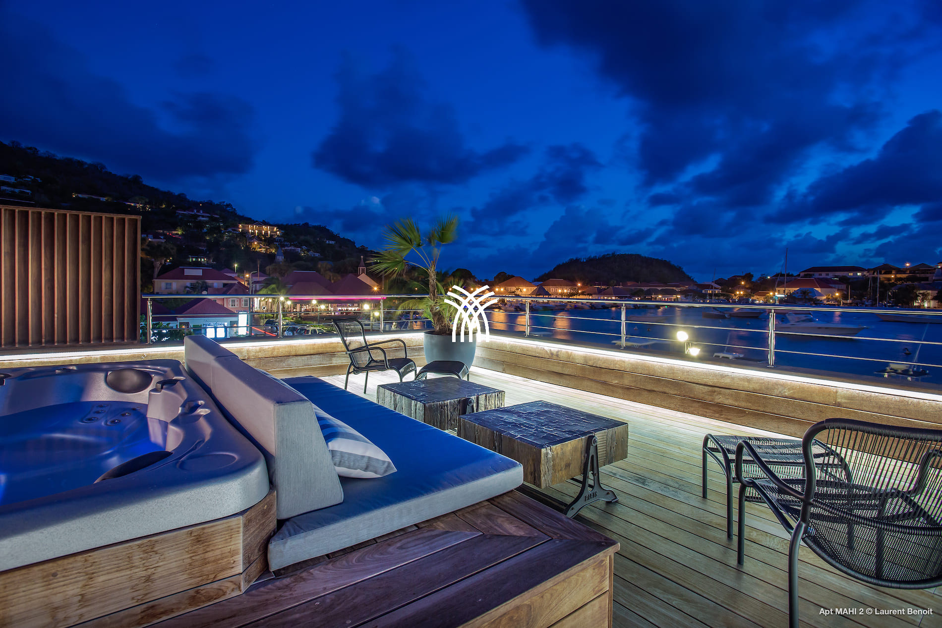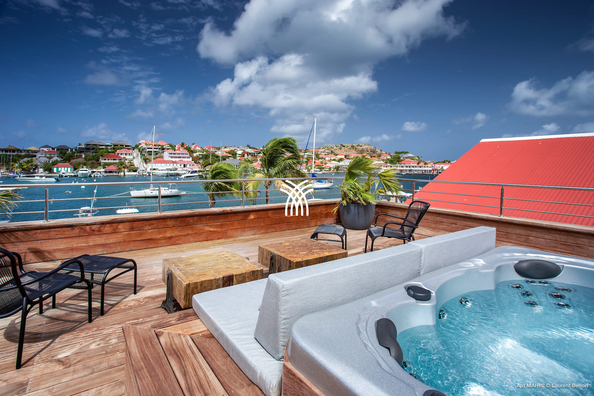 The Privilege Apartment is a luxury refuge nestled in the heart of the lively village of Gustavia, the elegant capital of Saint Barthélemy. Just steps away from Shell Beach, gourmet restaurants, and designer boutiques, this rare property combines a central location, absolute comfort, and an exceptional panoramic view of the harbor.