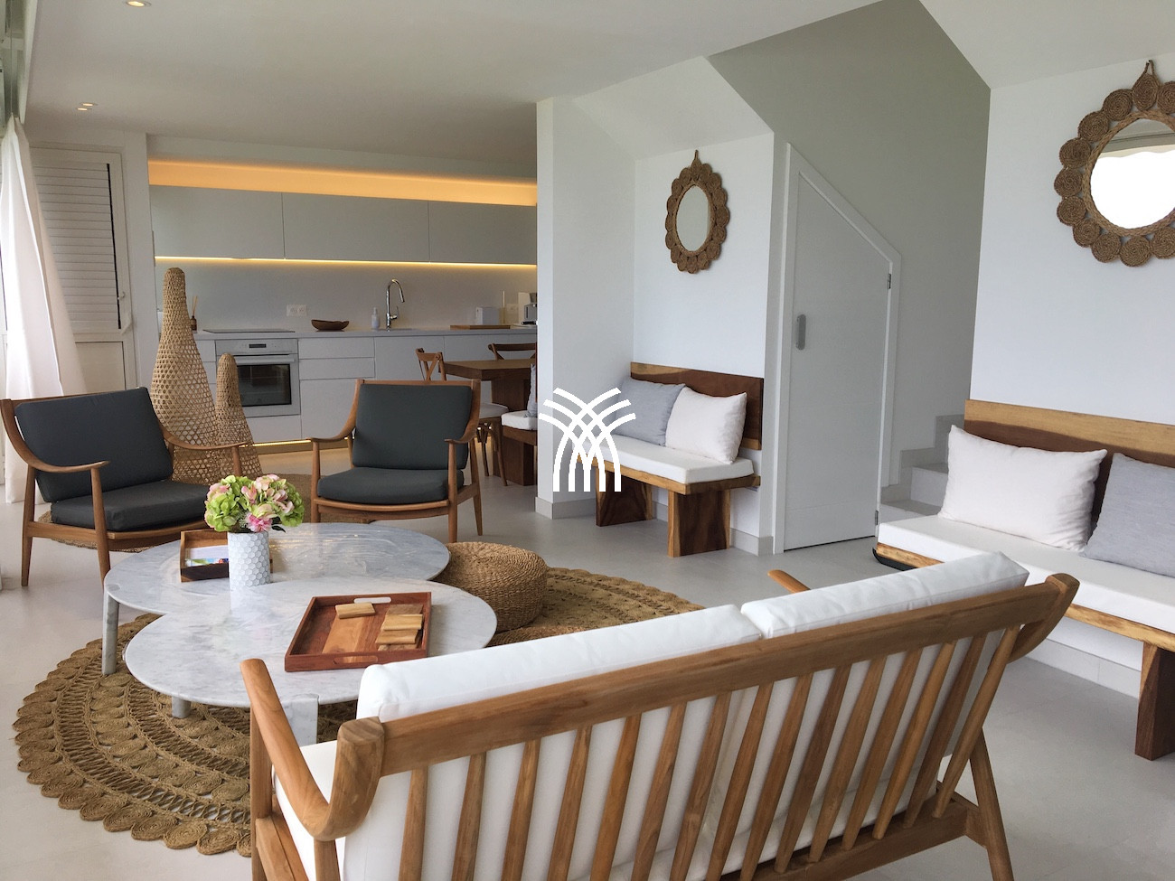 The apartment is homely, is modern, and is 80 m². The property is located right next to the beach. It has views of waterfront and the swimming pool.