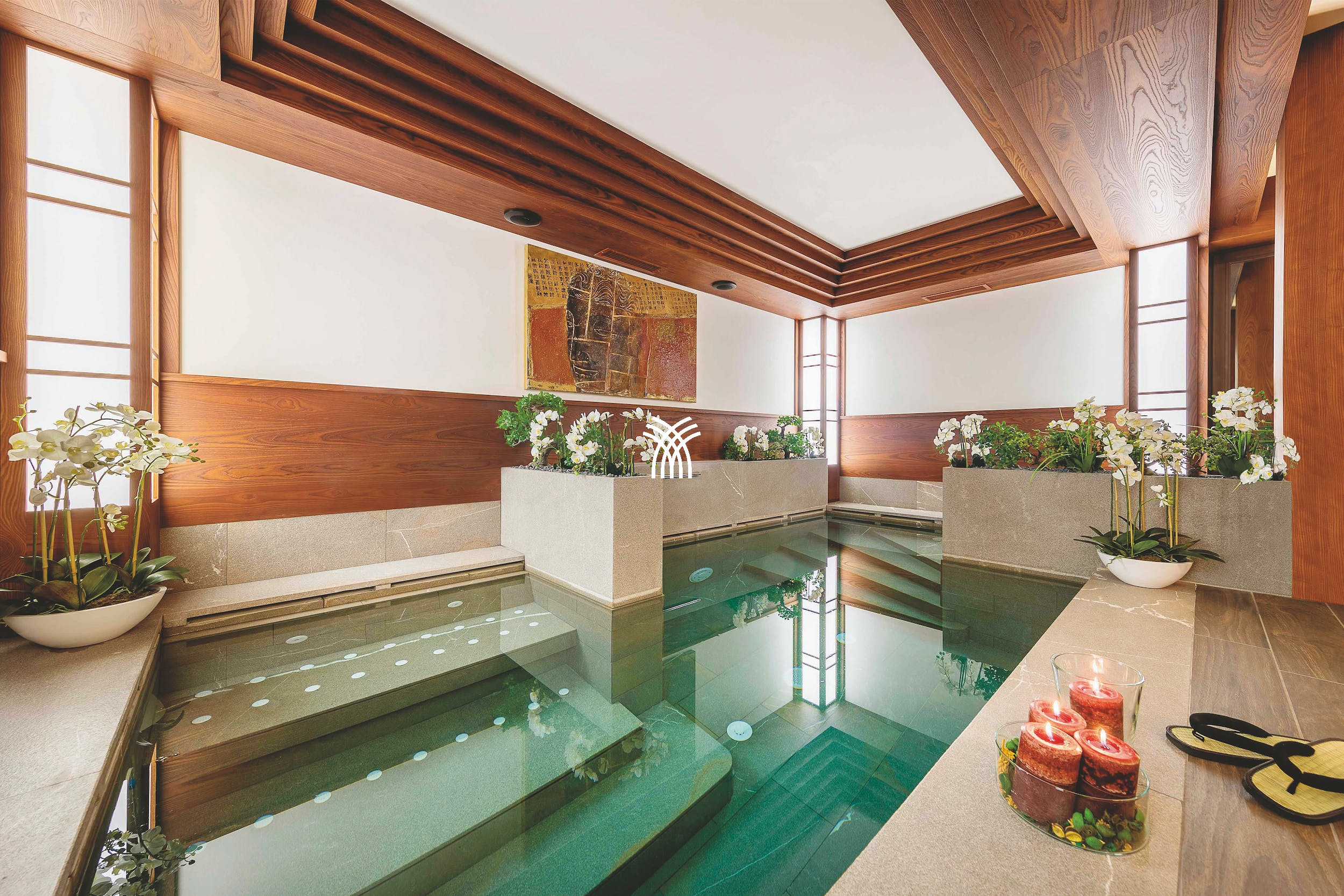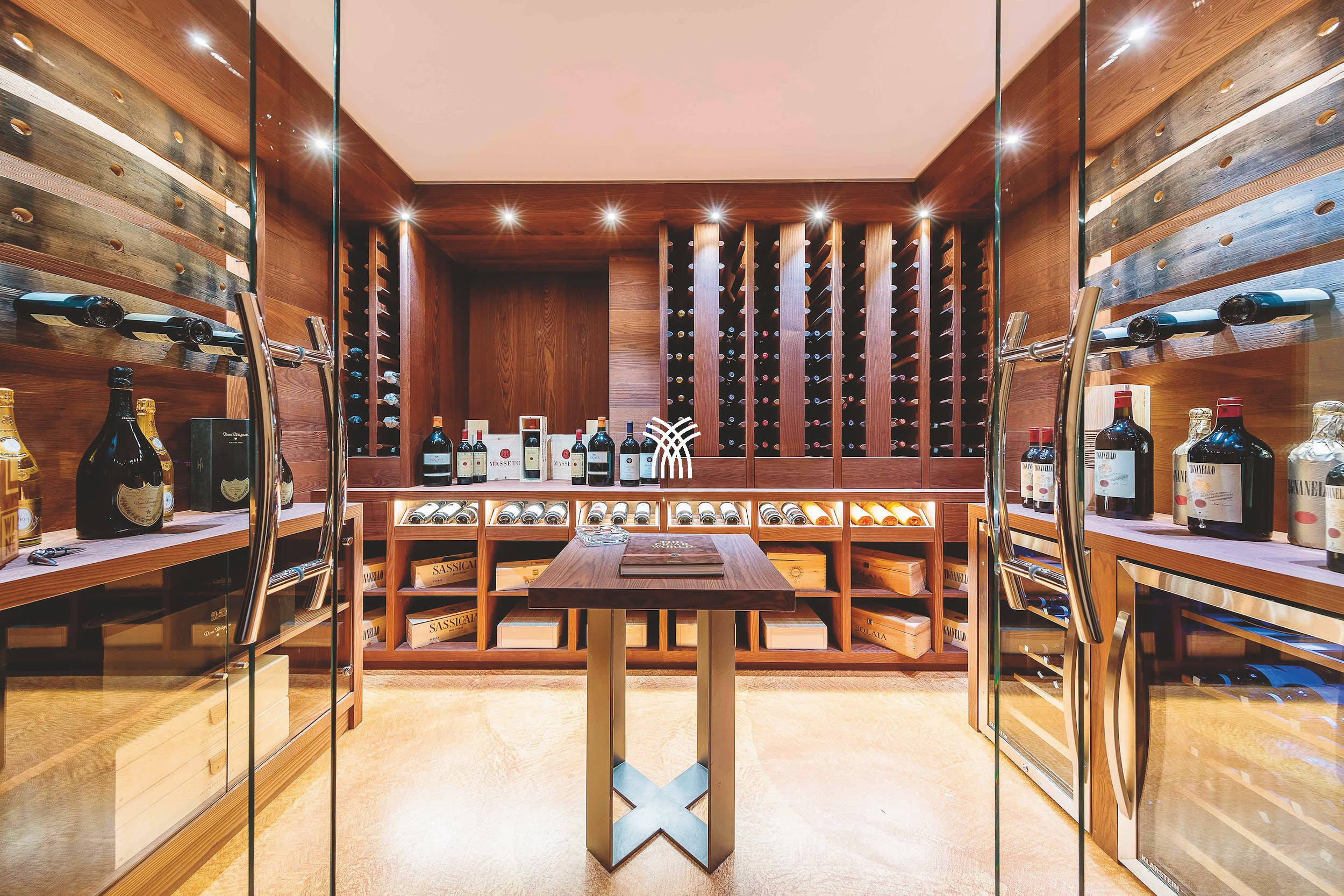 The lower level is devoted to wellness and relaxation, with a modern spa and a 25-square-meter fitness area. Indulge in the sauna, swim in the 20-metre heated pool, or unwind in the Jacuzzi with a cascading waterfall. A wine cellar stocked with prestigious labels and a soundproof cinema room with plush seating complete the experience, making this Luxury Chalet Rental Italy Alps an unforgettable destination where comfort, style, and serenity unite.