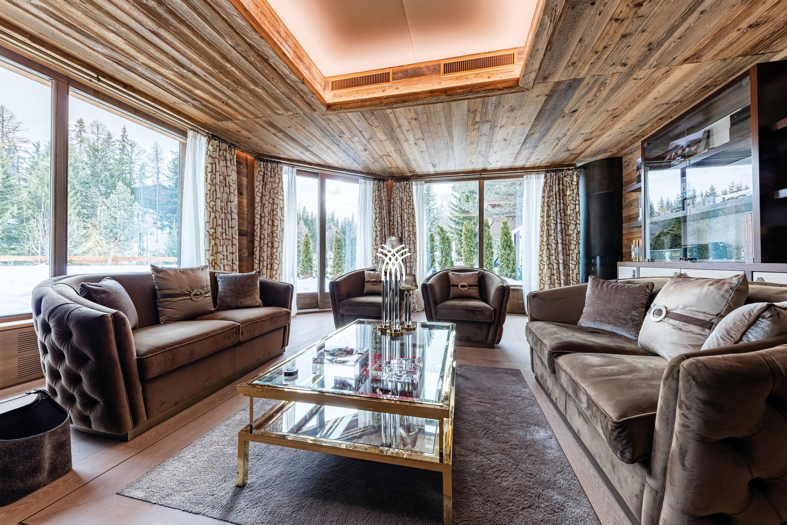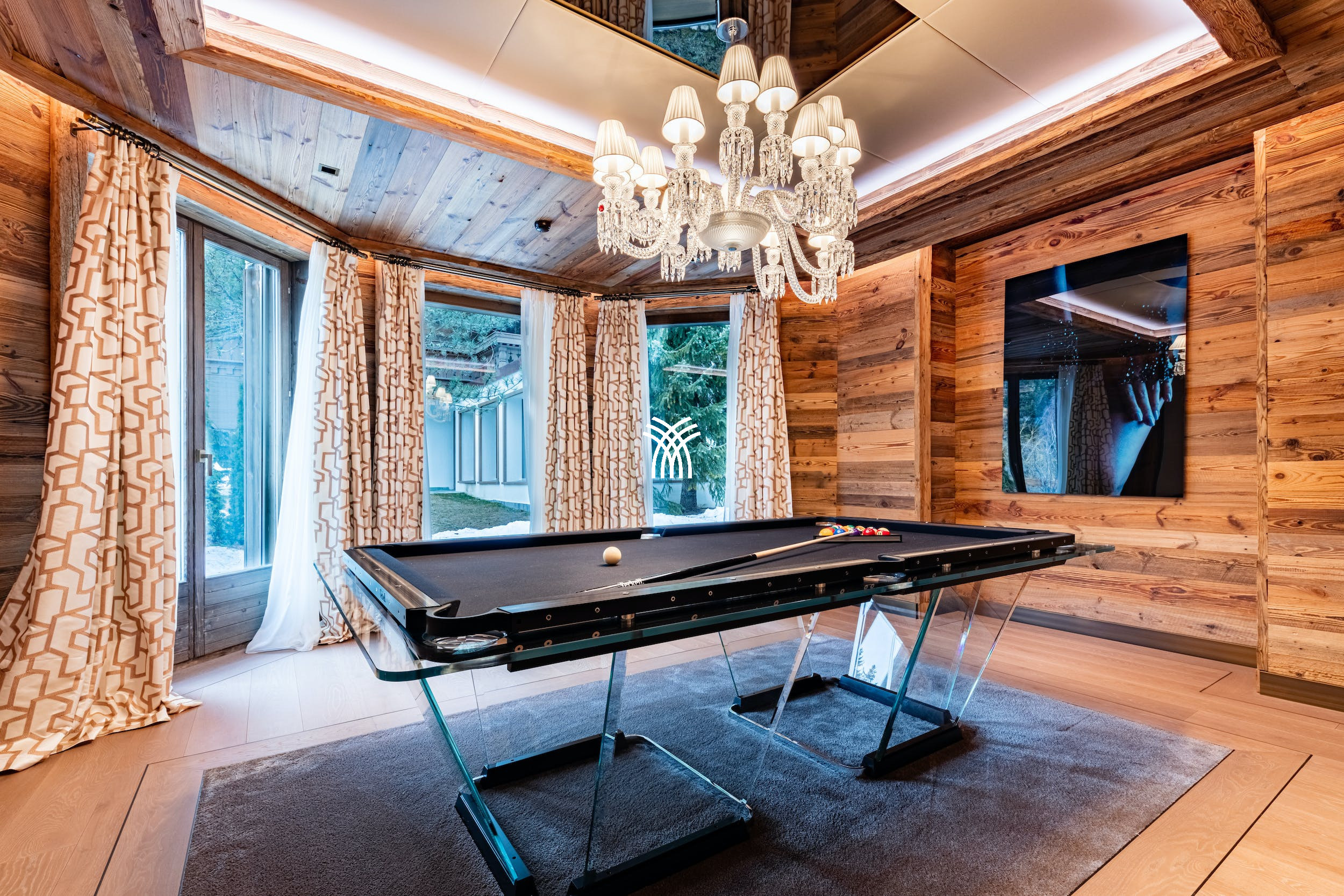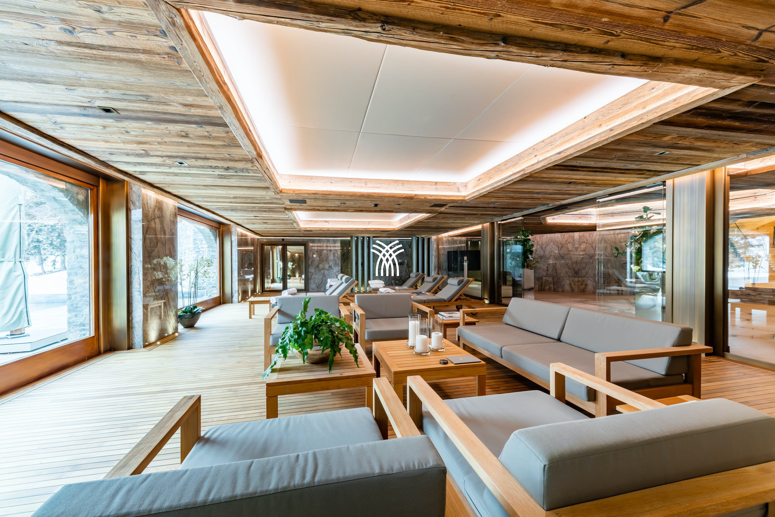 The chalet also features an exceptional wellness area with two independent spas, an indoor swimming pool, outdoor jacuzzis, hammams, saunas, a treatment room and a hairdressing salon. It is the ideal place to recharge in complete discretion, in absolute alpine luxury. For families and groups wishing to combine relaxation and outdoor activities, the location of Chalet Christiana is ideal, close to ski slopes, golf courses and hiking trails.