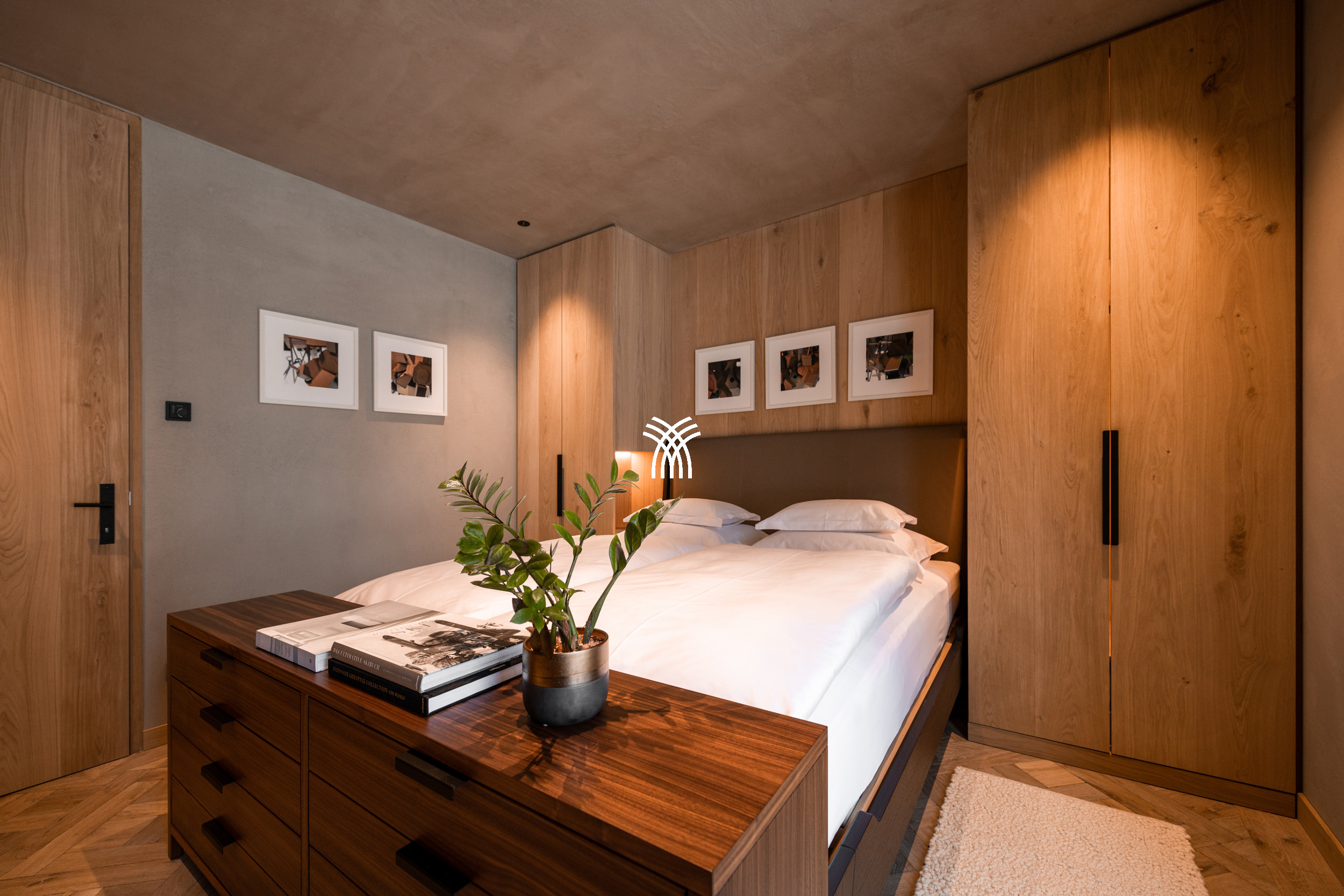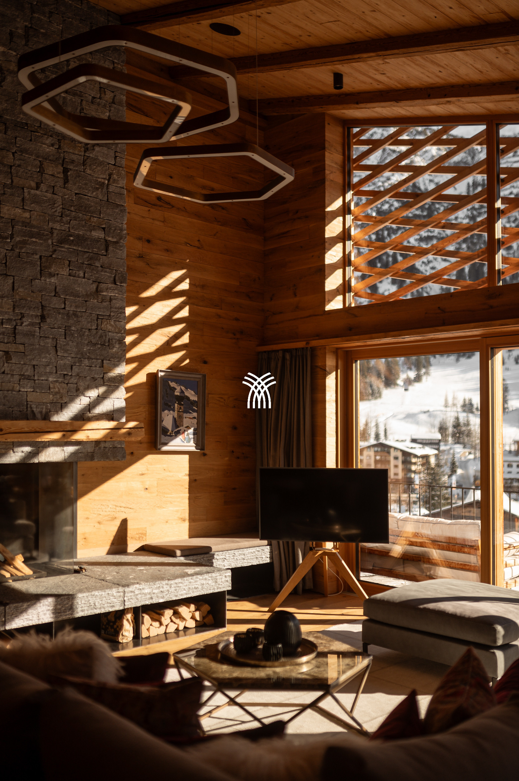 For entertainment, the chalet reveals a playful and luxurious side with its private party room, complete with a bar, darts, table soccer, pinball, multimedia system, and even a private cinema, ensuring unforgettable moments for every guest. Covered parking adds to the convenience, while the overall design reflects a unique symbiosis of tradition and contemporary influences, making Arla a truly distinctive alpine residence.