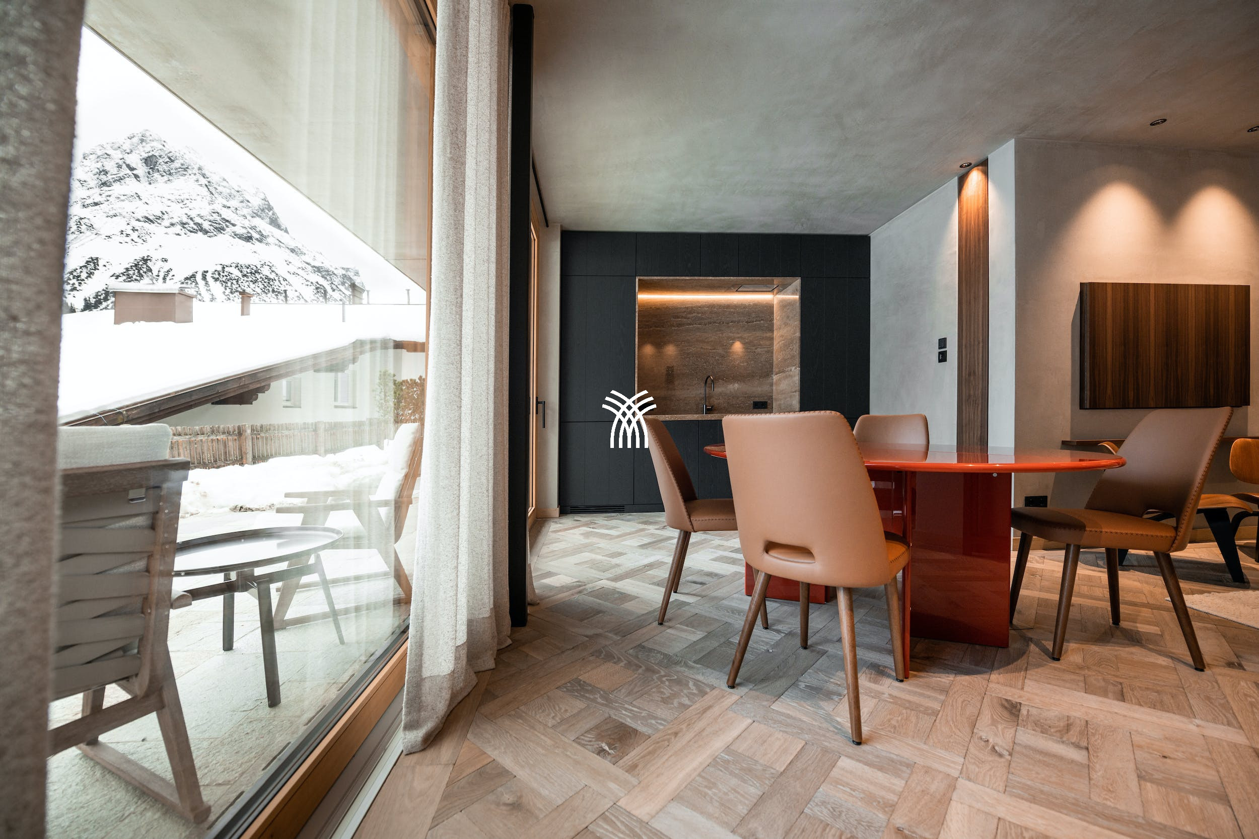 Chalet Athena is a masterpiece of alpine sophistication, offering an unforgettable Luxury Chalet Rental Austria Alps experience in the heart of one of Europe’s most beautiful ski destinations. With five exquisitely designed bedrooms and three separate living, dining, and kitchen areas, the chalet blends high-class interior design with curated designer and vintage furnishings, all framed by panoramic views of the majestic Omeshorn.