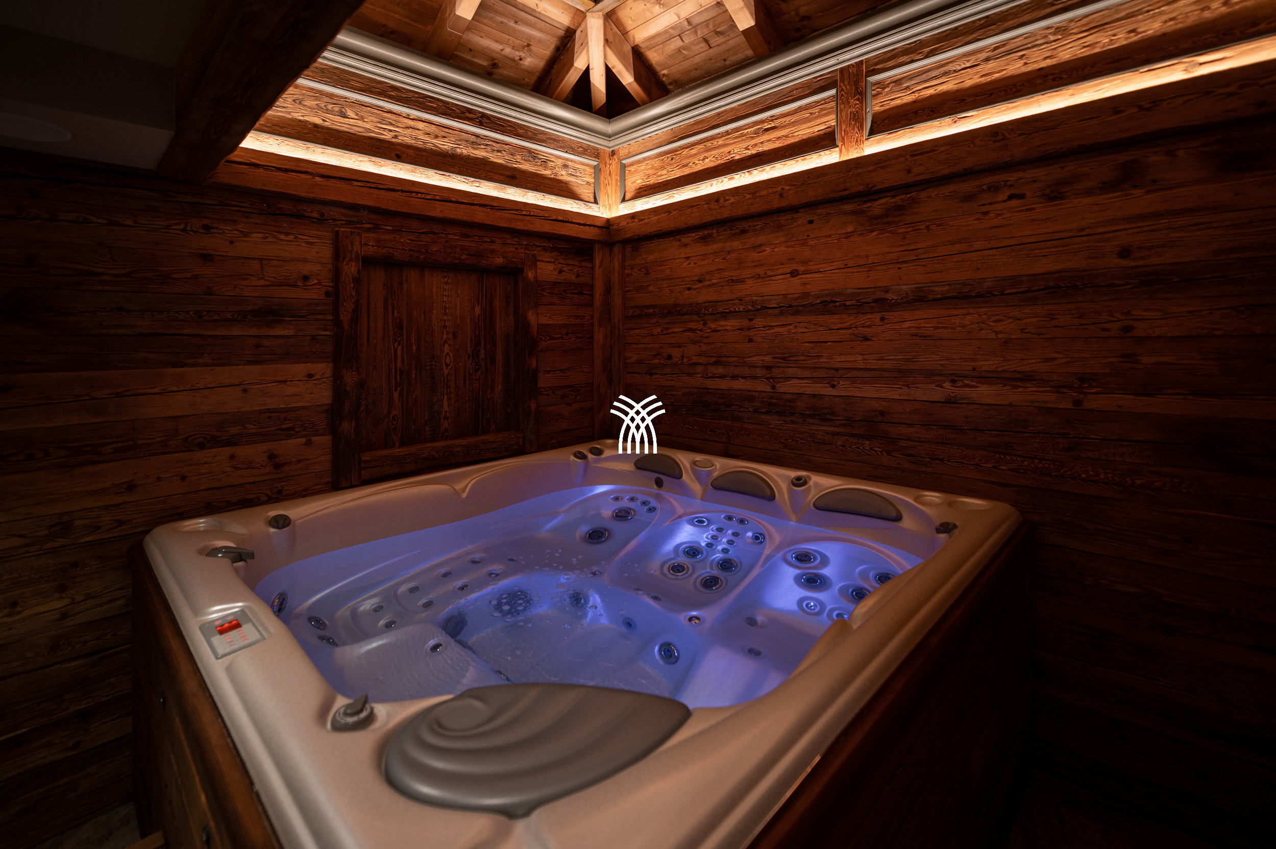 After a thrilling day on the slopes, return to the chalet’s private terrace, where a superb hot tub awaits with panoramic views of the snow-dusted peaks. The terrace also provides an enchanting space for social gatherings or intimate al fresco dining under the alpine sky.