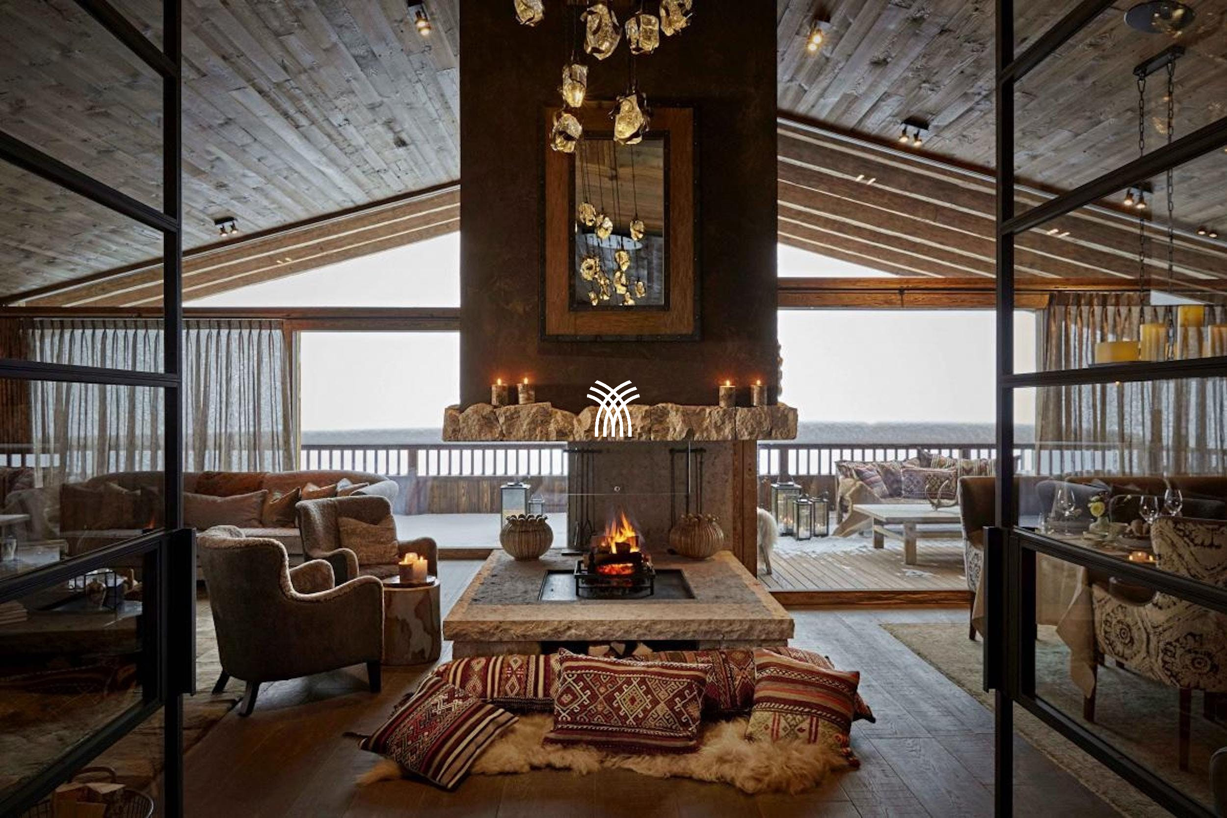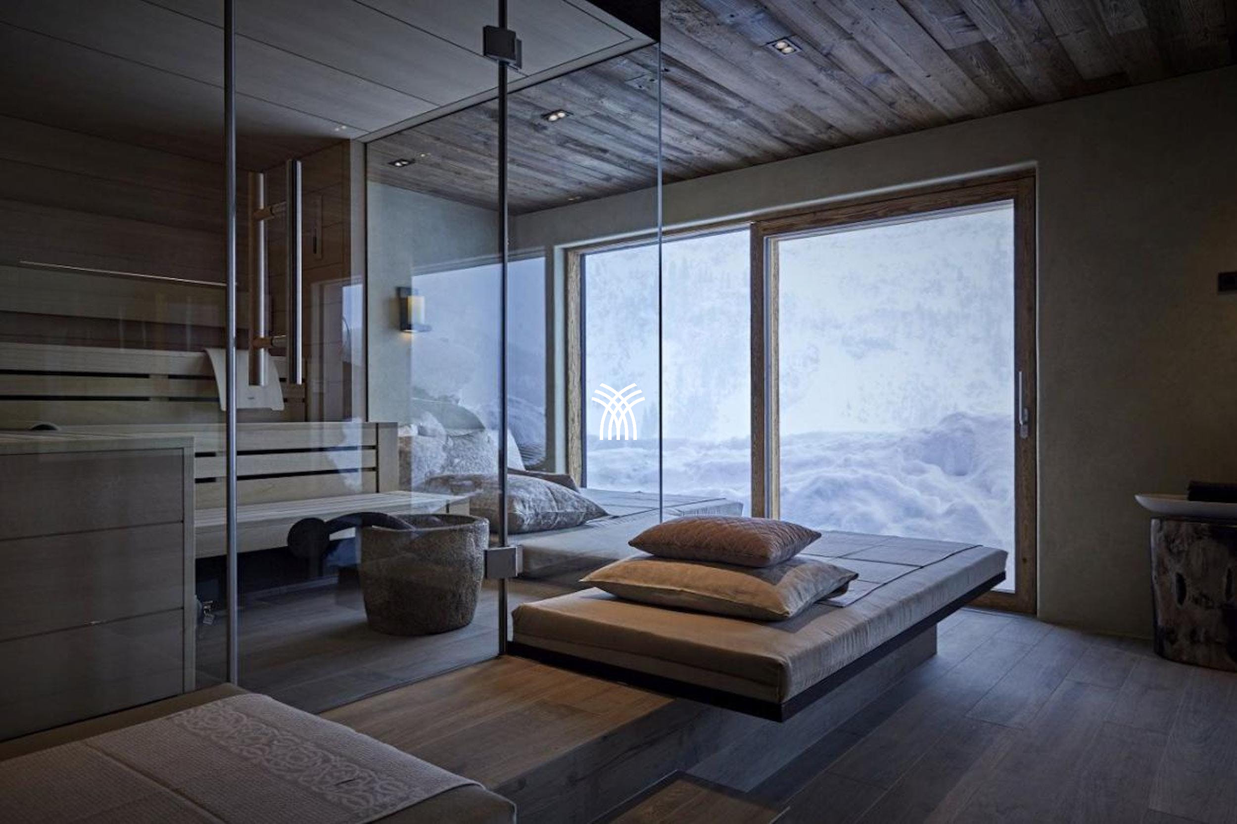 Inside, pale timbered walls, muted tones, and subtle rustic touches create a warm, inviting atmosphere that feels both luxurious and homely. The state-of-the-art spa is a highlight, featuring a serene indoor pool, sauna, and treatment room, while the rooftop hot tub offers breathtaking views of the surrounding peaks.