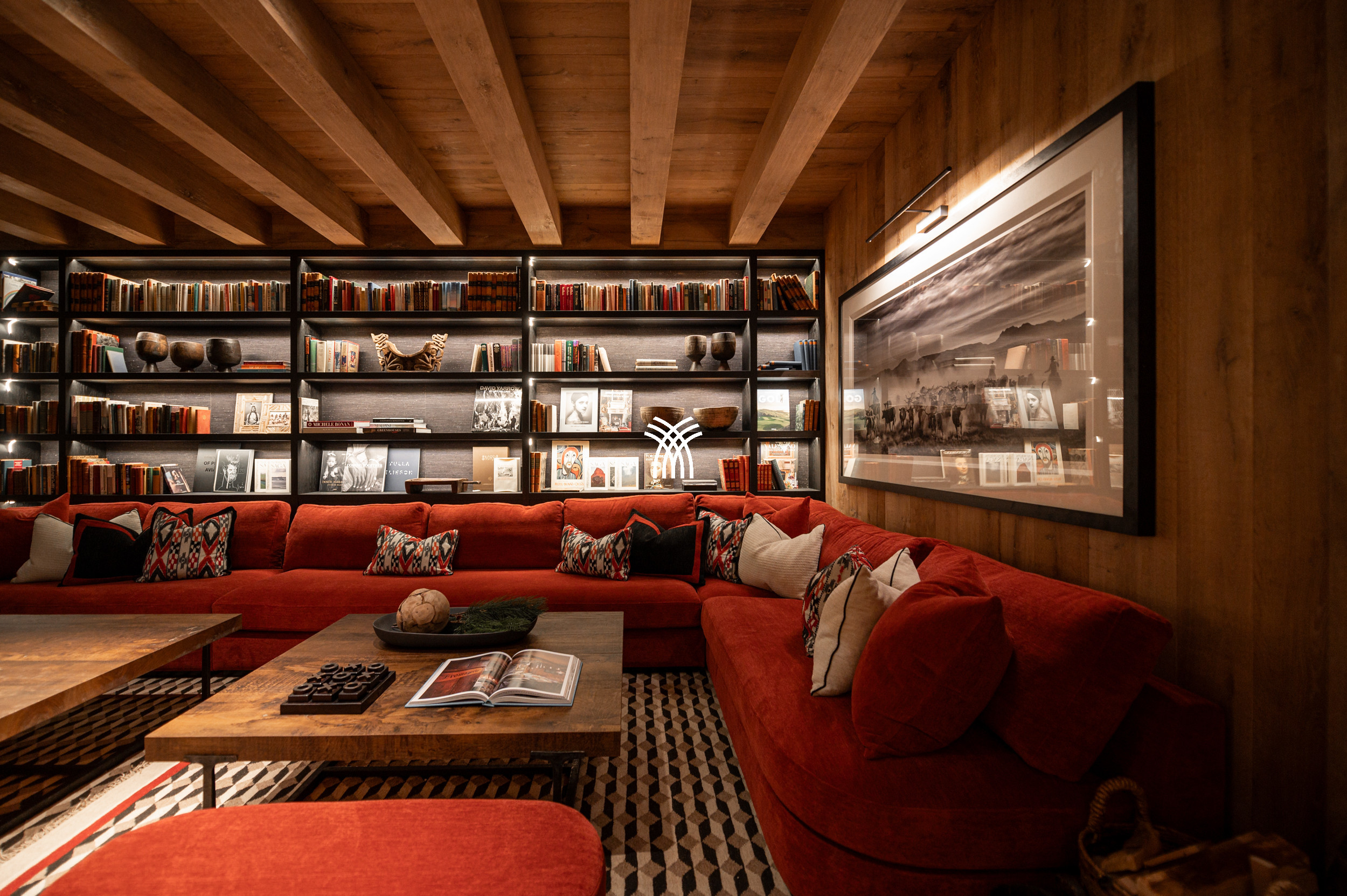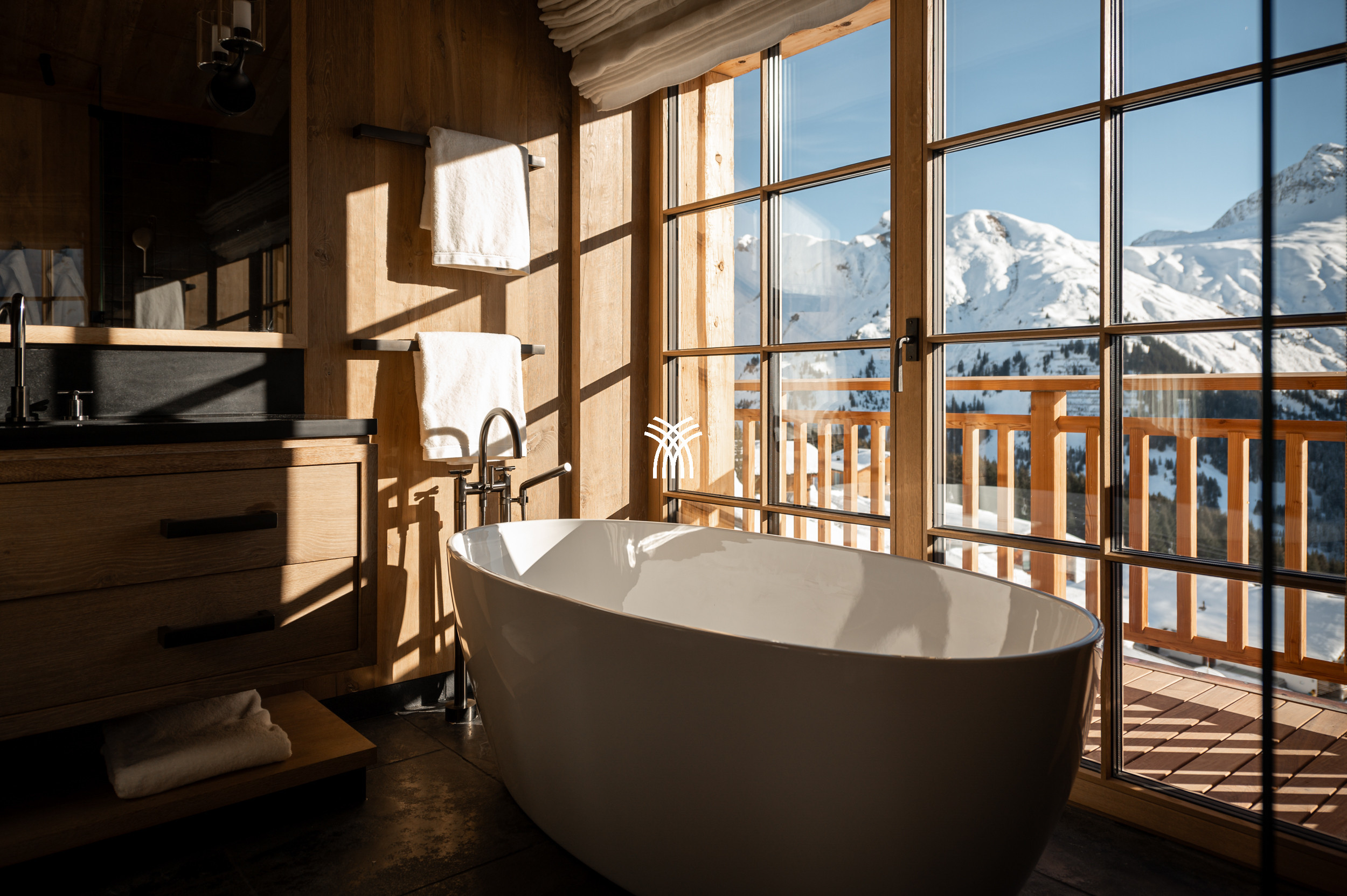 Designed with an emphasis on high-quality materials and thoughtful craftsmanship, The Barn creates an incomparable atmosphere of relaxation and well-being. Seven individually designed bedrooms provide generous accommodation for families and groups seeking privacy and comfort in an exclusive alpine environment. The spacious living and dining area, centered around a cozy fireplace, invites guests to gather after a day in the mountains, while an elegant entertainment room adds another dimension of leisure and enjoyment. From the chalet’s balcony, sweeping views unfold across the majestic peaks surrounding Lech, creating a spectacular backdrop that enhances every moment of the stay.