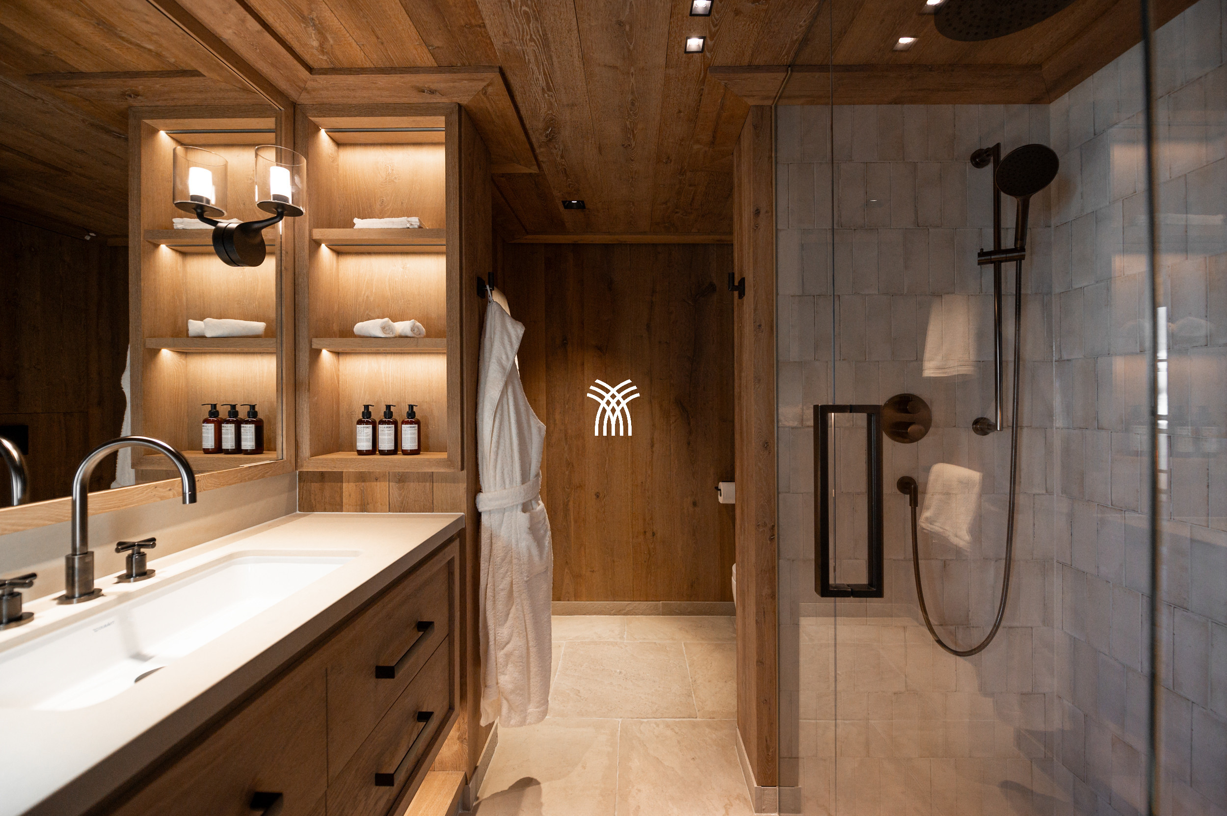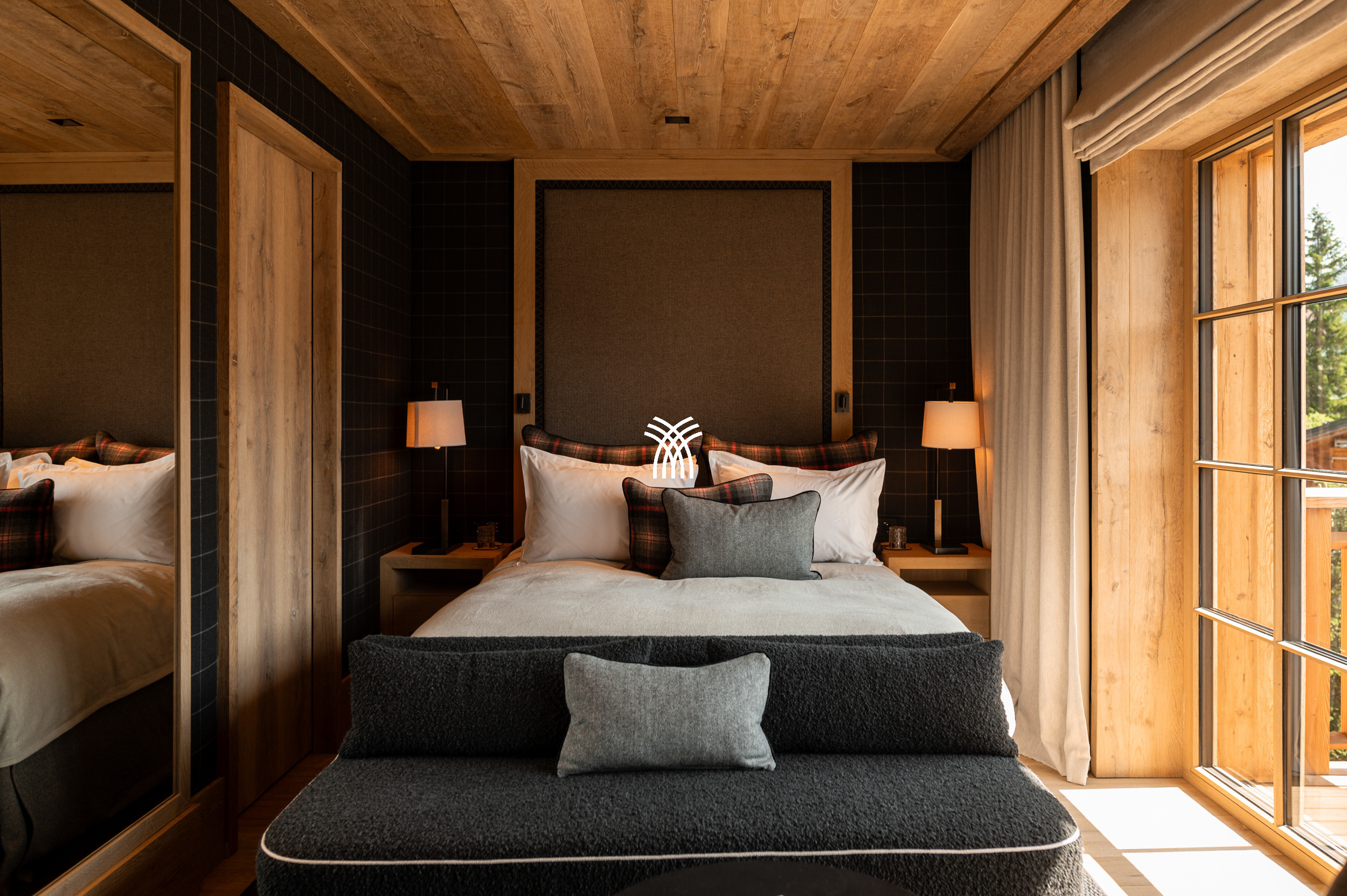 Newly built and thoughtfully designed, Chalet Mimi accommodates up to 14 guests across six beautifully appointed bedrooms. The layout includes a master bedroom, three double rooms, one bedroom with a bunk bed, and an additional children’s room with two bunk beds, making the chalet perfectly suited for families and groups seeking a refined alpine retreat. Every space reflects a harmonious blend of craftsmanship and understated luxury, where tradition is expressed through handcrafted details, natural textures, and a serene alpine aesthetic.
