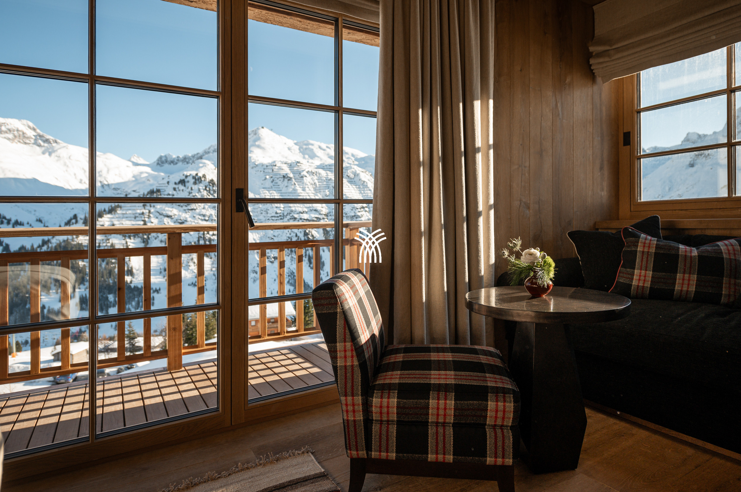 Nestled in the heart of Oberlech am Arlberg, Chalet Mimi offers an exceptional luxury villa rental Oberlech experience where refined alpine tradition meets discreet contemporary comfort. With direct ski-in and ski-out access, the chalet welcomes guests into a warm and inviting atmosphere defined by natural materials, elegant wooden elements, and soothing tones inspired by the surrounding mountain landscape. From the moment you arrive, breathtaking views unfold across the alpine peaks—whether admired after a day on the slopes, from the comfort of the living room beside the open fireplace, or while relaxing with a drink in the outdoor Jacuzzi overlooking the snow-covered scenery.