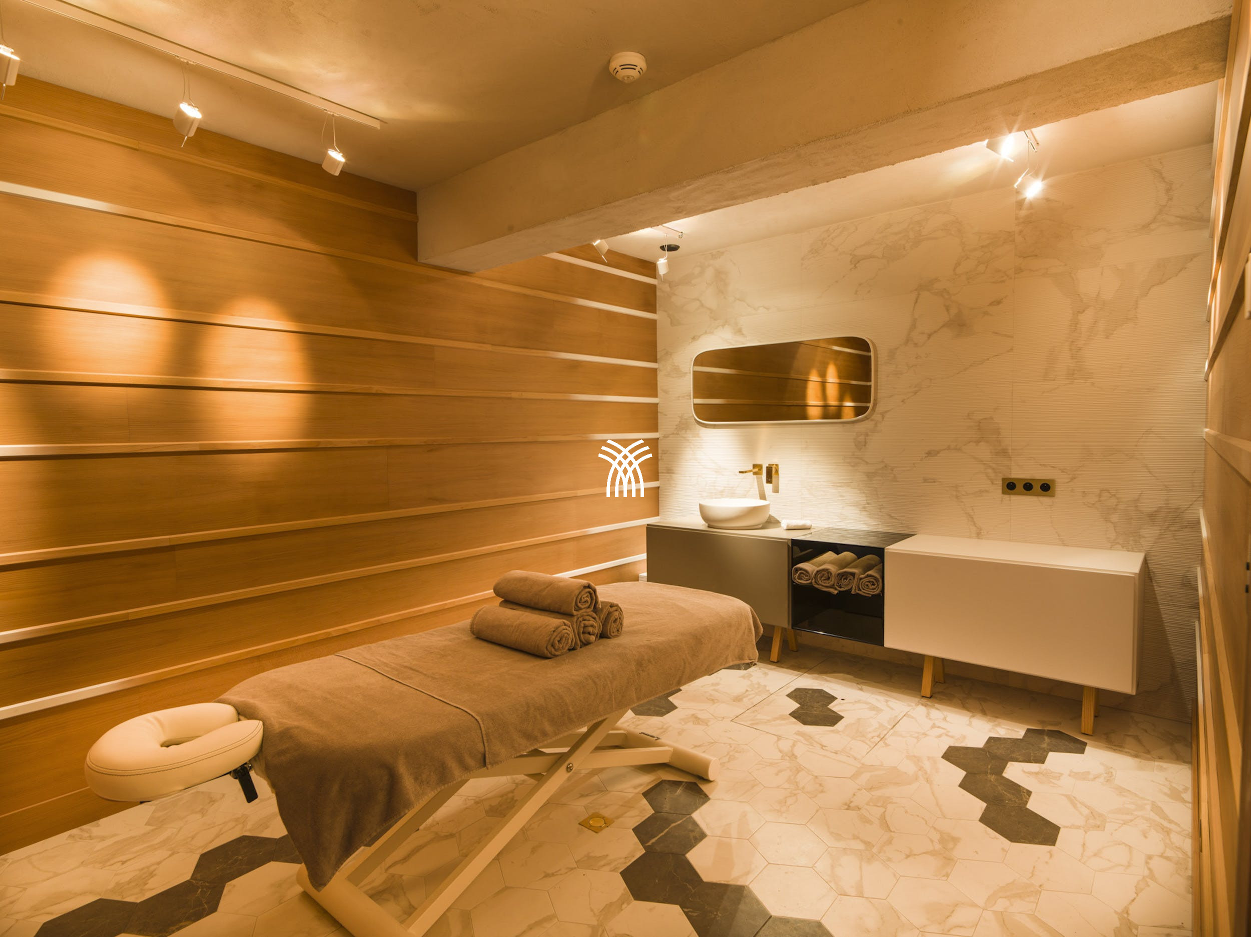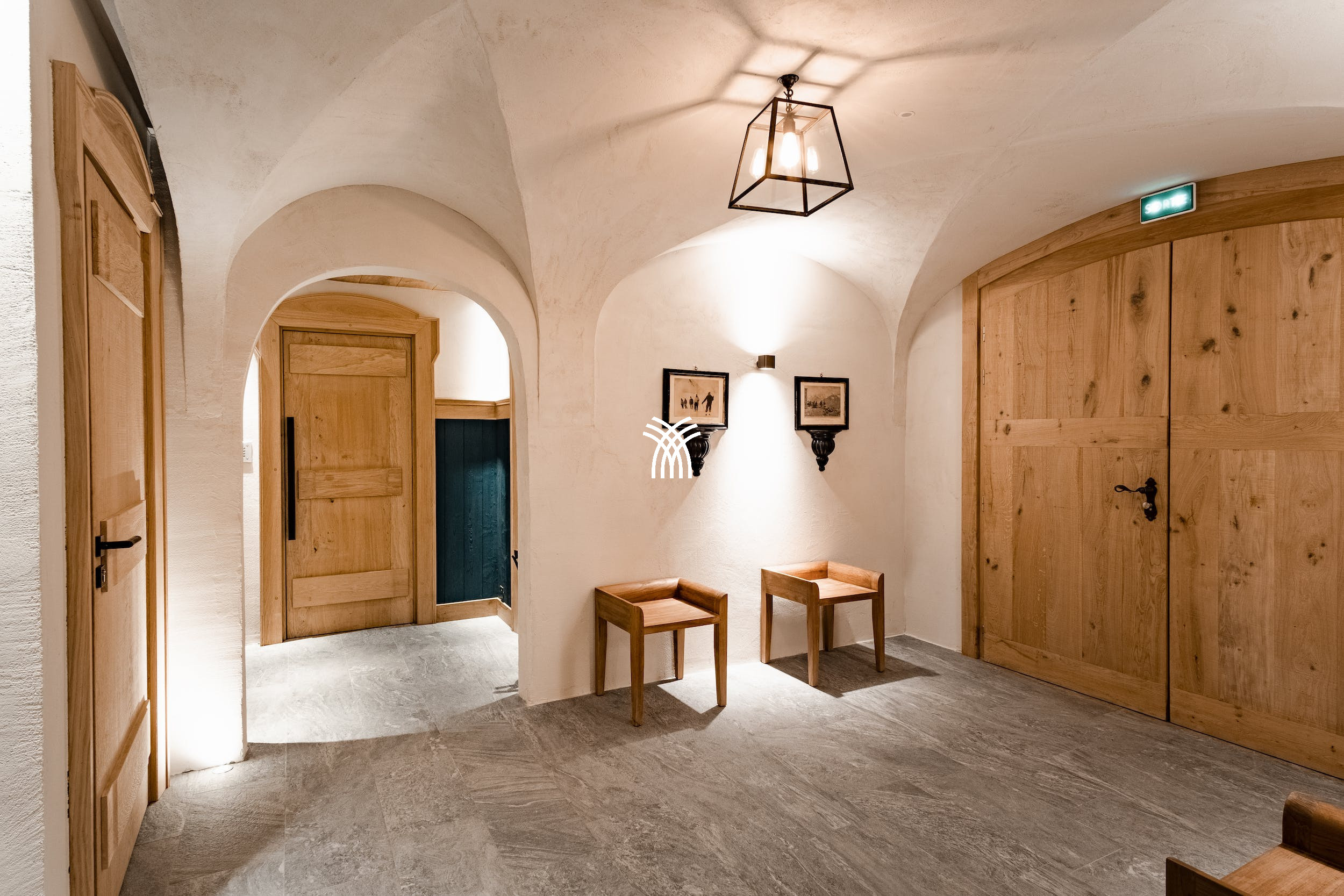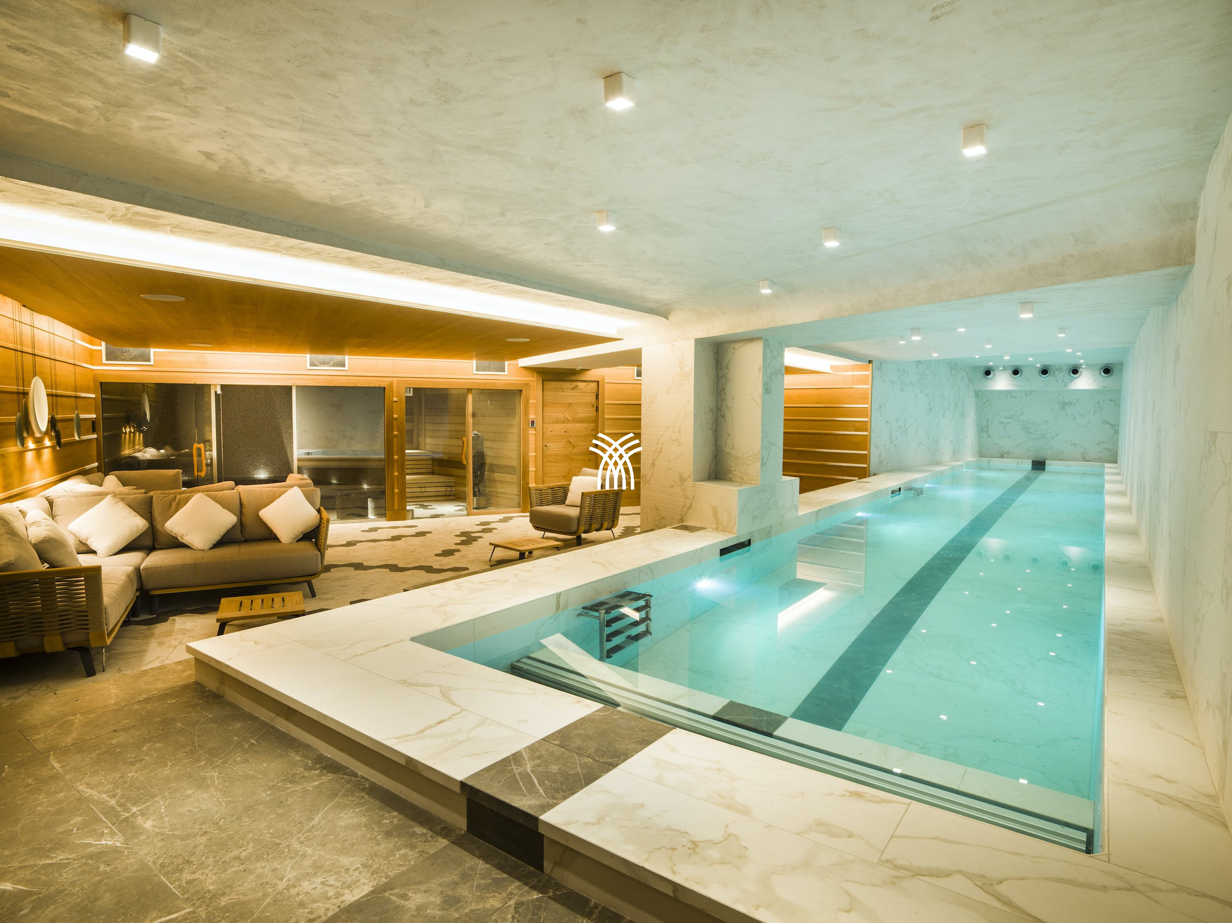 At the heart of this luxury residence is a private wellness centre on the ground floor. Here, you can relax and recharge in the indoor swimming pool with counter-current, unwind in the steam room and sauna, or indulge in a bespoke treatment in the massage cabin after a day on the slopes.