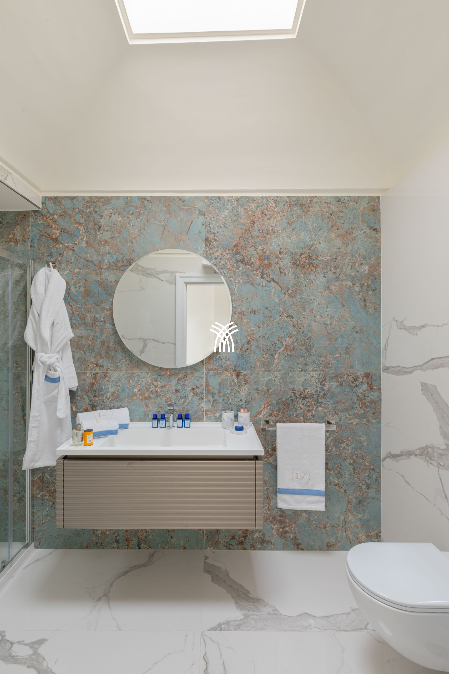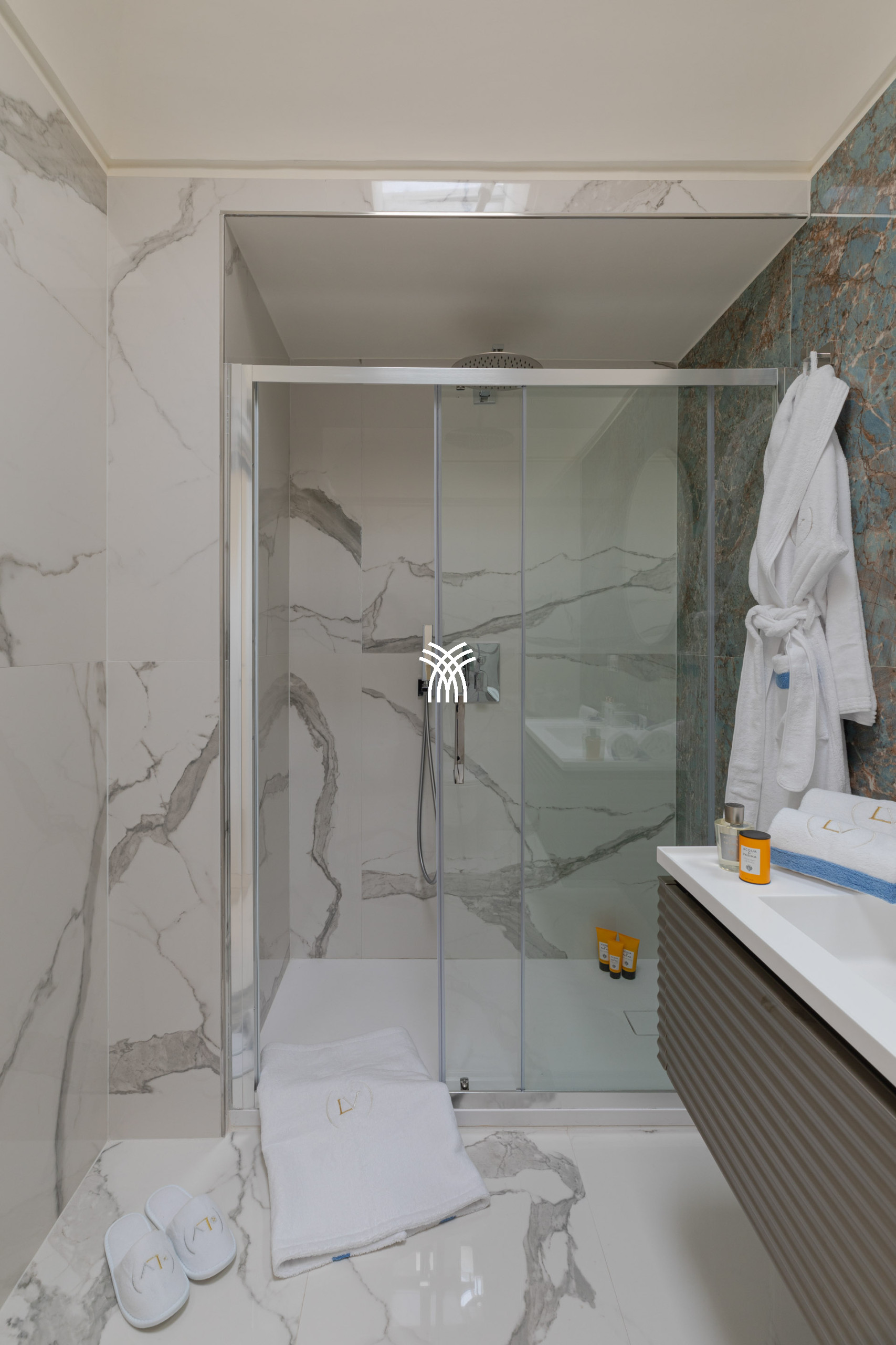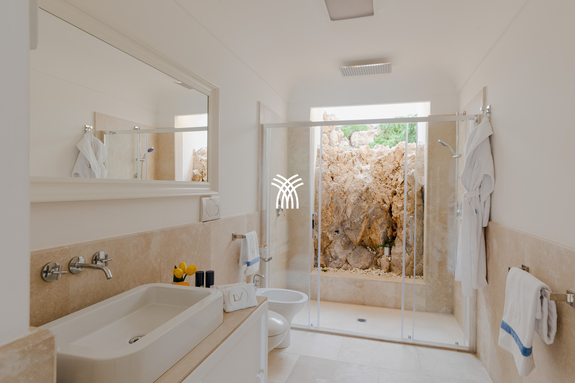 Completely renovated in 2021 with noble materials, it can accommodate up to eight people, and up to ten with its staff or guest annex. On two levels, the master suite on the garden level is a true work of art carved into the rock, with a stone fireplace, walk-in closet, bathroom carved from natural stone, and private living room. On the upper floor, three other suites welcome guests in a refined decor blending Italian marble and contemporary furniture.