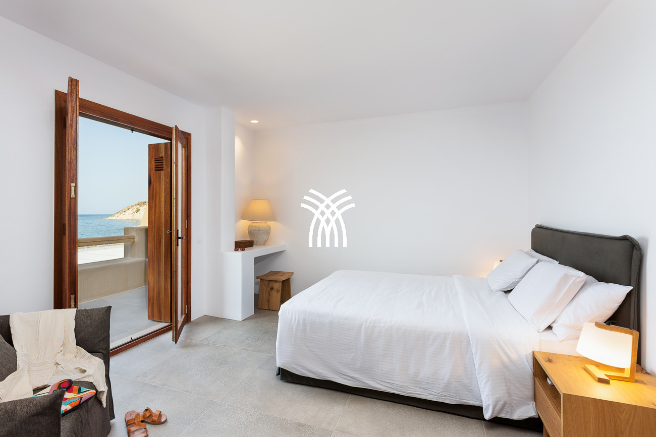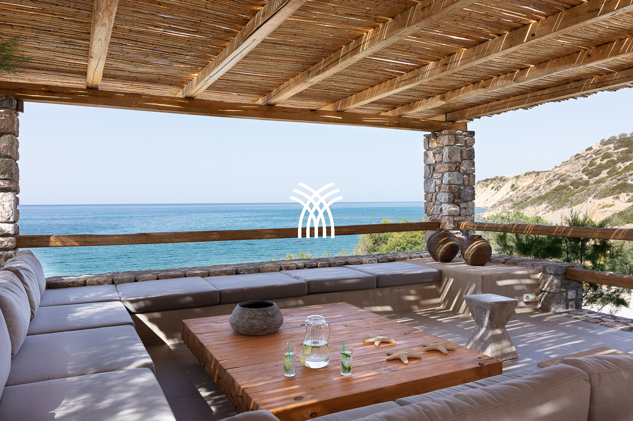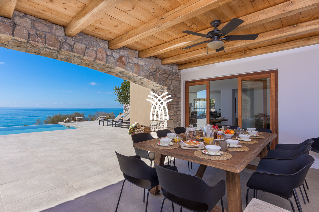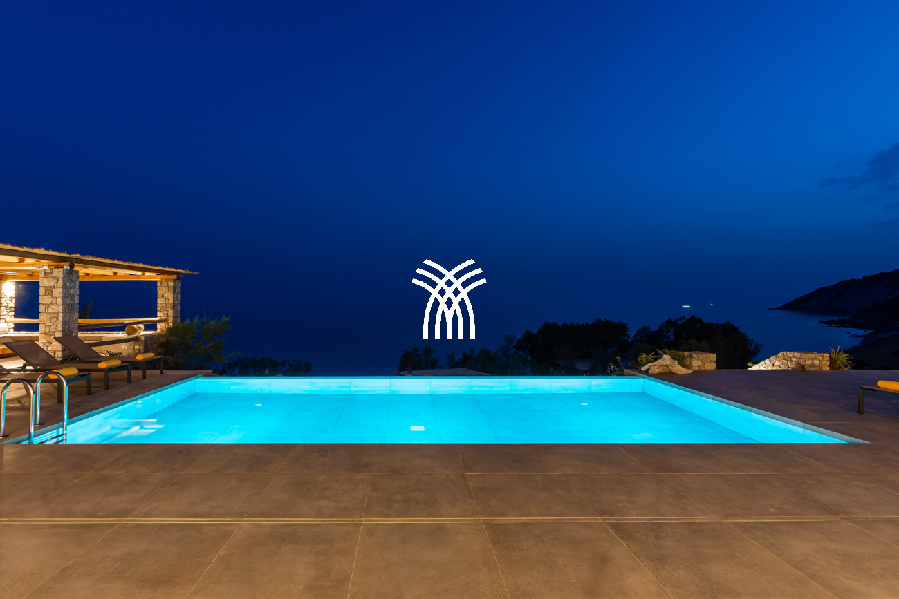 Just a few steps from the beach, this luxury seafront villa reveals uninterrupted views of the horizon and the ocean, in absolute silence only punctuated by the sound of waves. Arriving at the property is an experience in itself: a winding path crosses an ancient olive grove, passes by a chapel dedicated to Saint Dimitrios and gradually leads to a natural promontory overlooking a reef with turquoise hues and an untouched sandy beach, gradually revealing this timeless refuge.