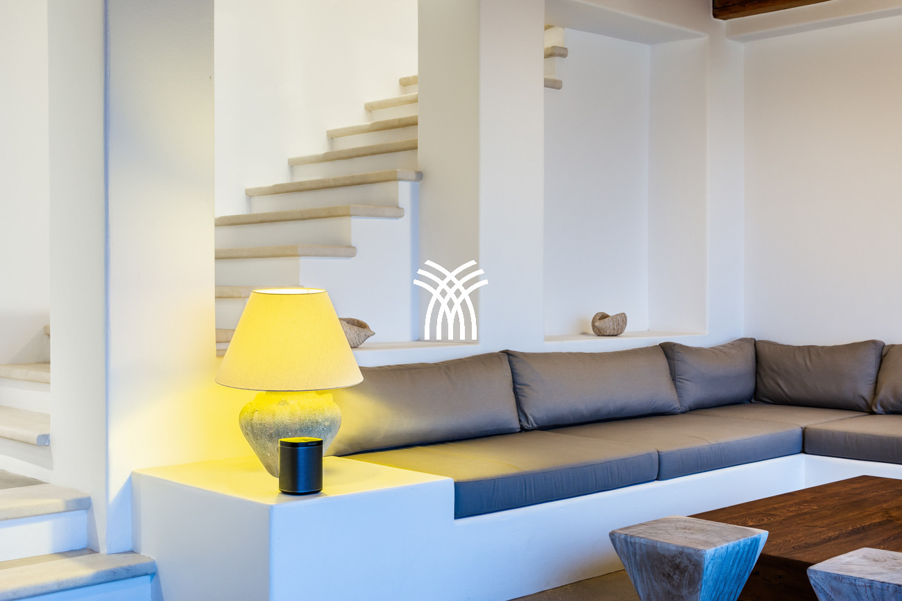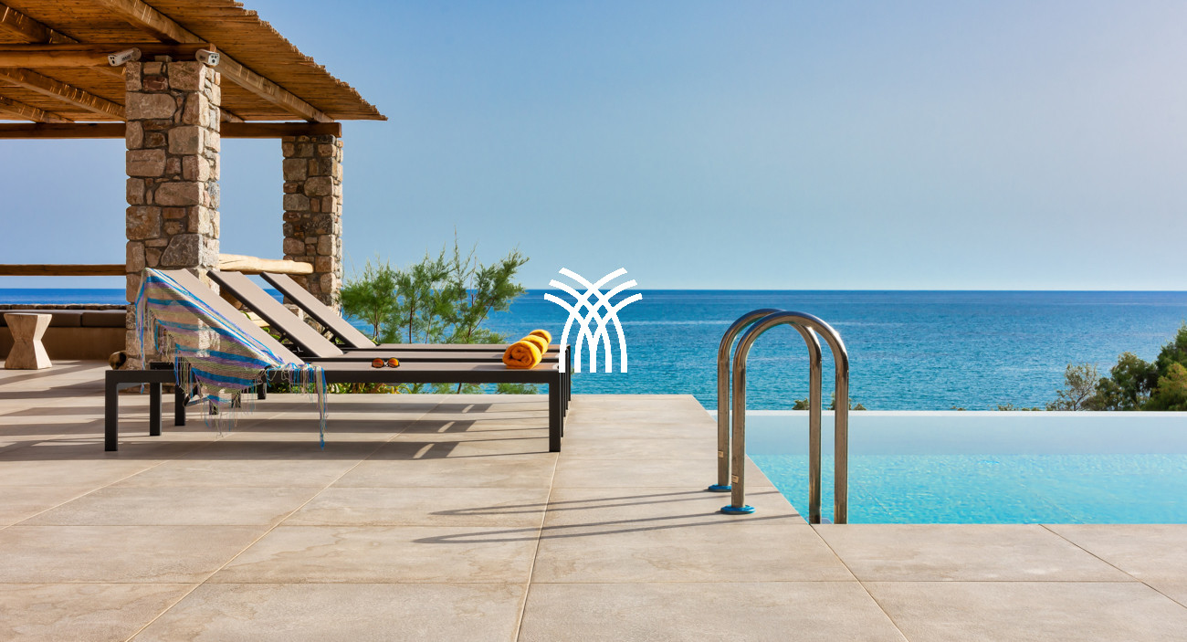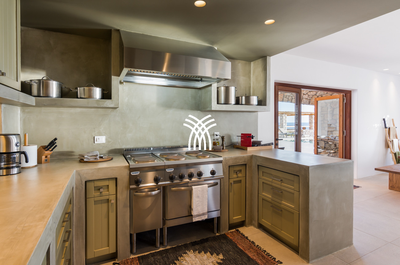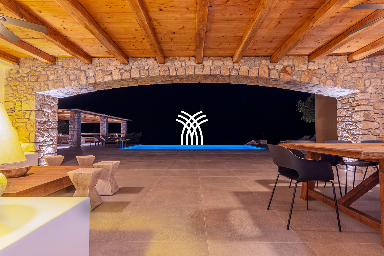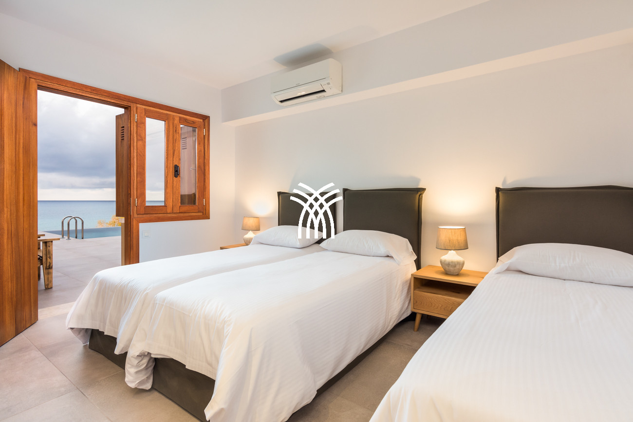 Just a few steps from the beach, this luxury seafront villa reveals uninterrupted views of the horizon and the ocean, in absolute silence only punctuated by the sound of waves. Arriving at the property is an experience in itself: a winding path crosses an ancient olive grove, passes by a chapel dedicated to Saint Dimitrios and gradually leads to a natural promontory overlooking a reef with turquoise hues and an untouched sandy beach, gradually revealing this timeless refuge.