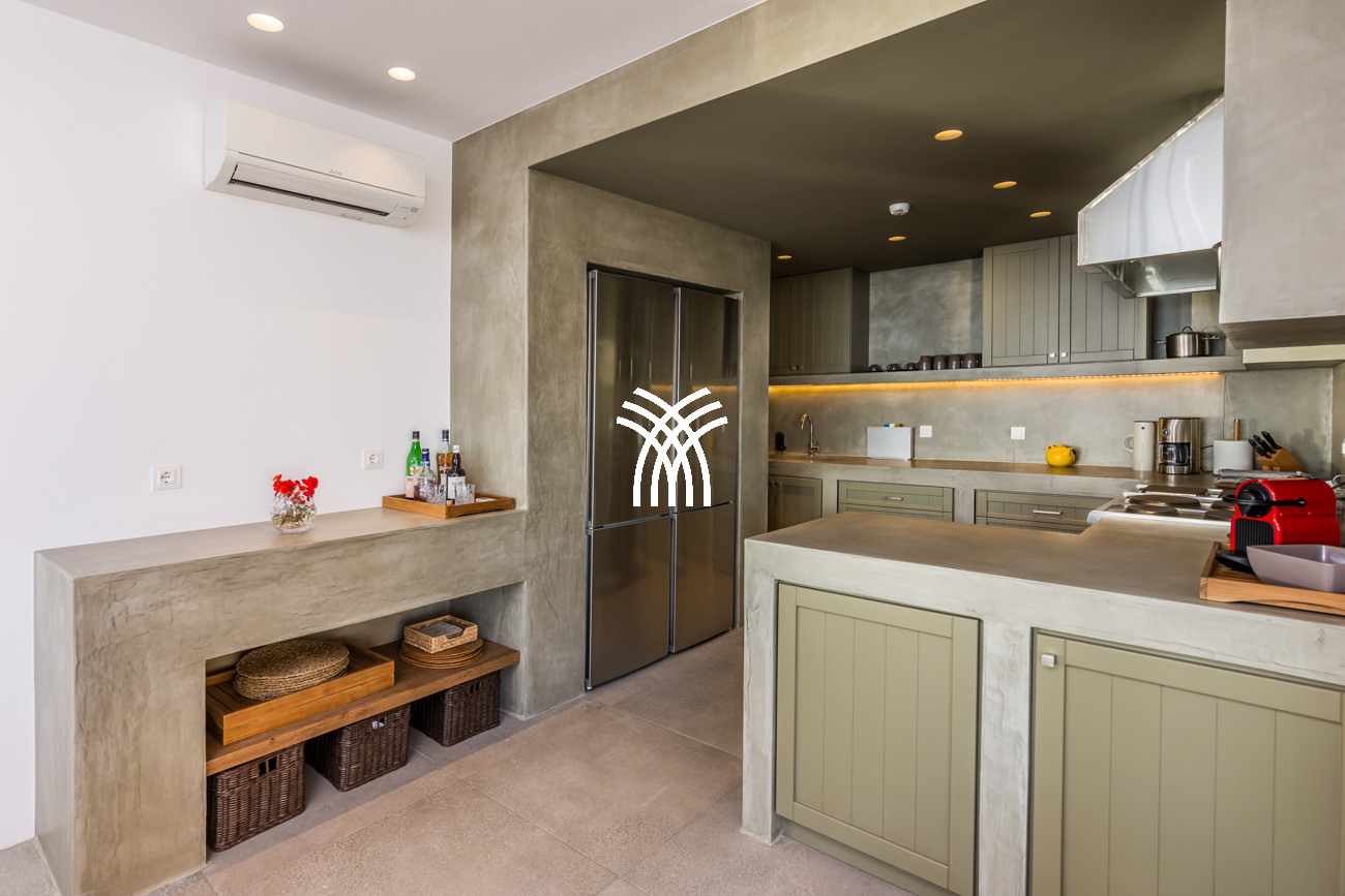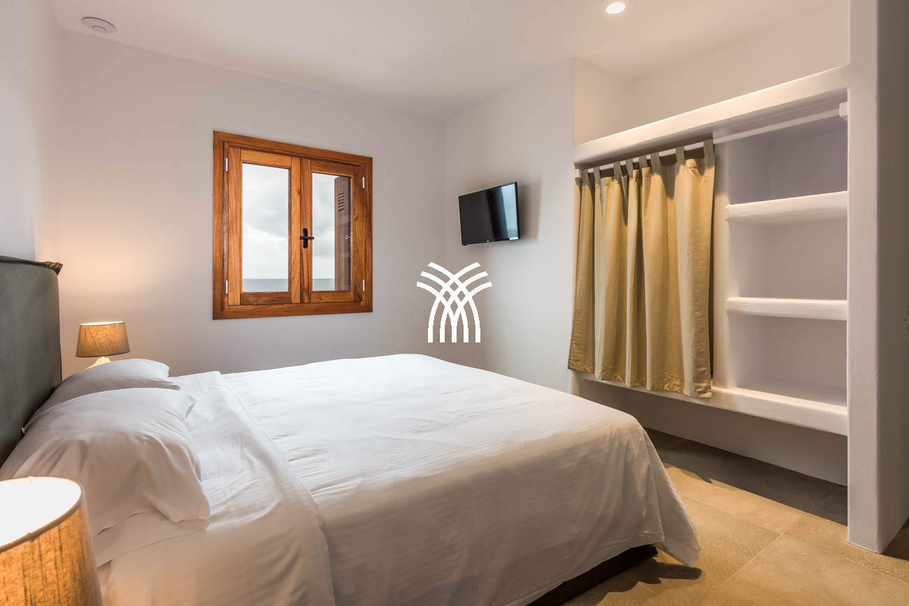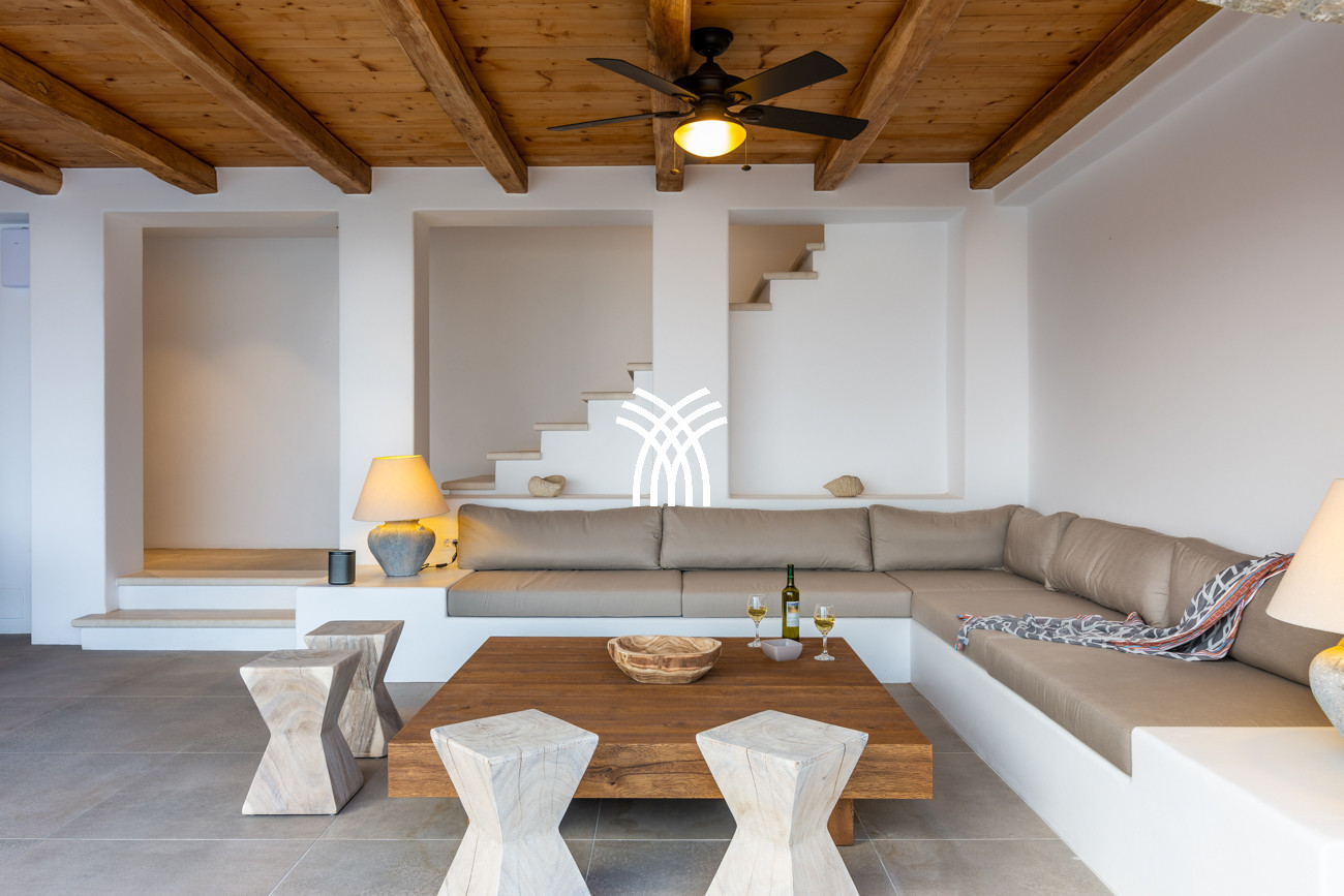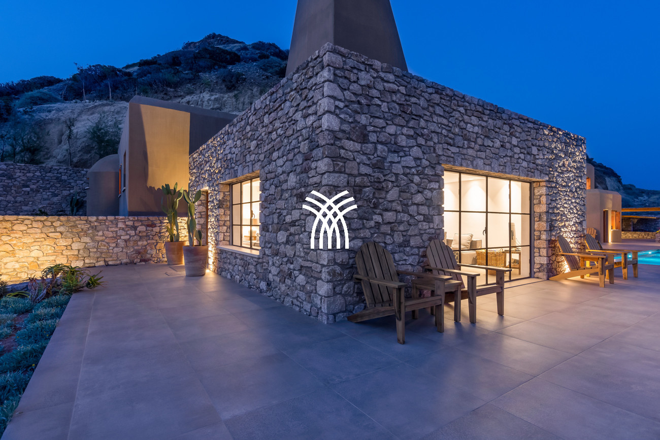 Just a few steps from the beach, this luxury seafront villa reveals uninterrupted views of the horizon and the ocean, in absolute silence only punctuated by the sound of waves. Arriving at the property is an experience in itself: a winding path crosses an ancient olive grove, passes by a chapel dedicated to Saint Dimitrios and gradually leads to a natural promontory overlooking a reef with turquoise hues and an untouched sandy beach, gradually revealing this timeless refuge.