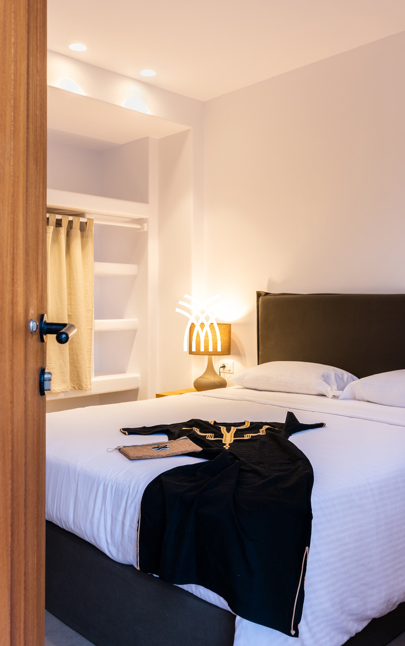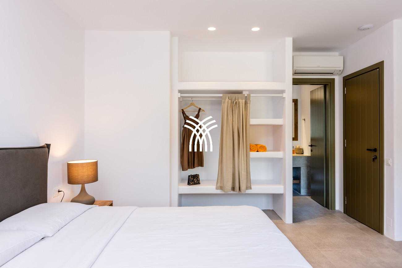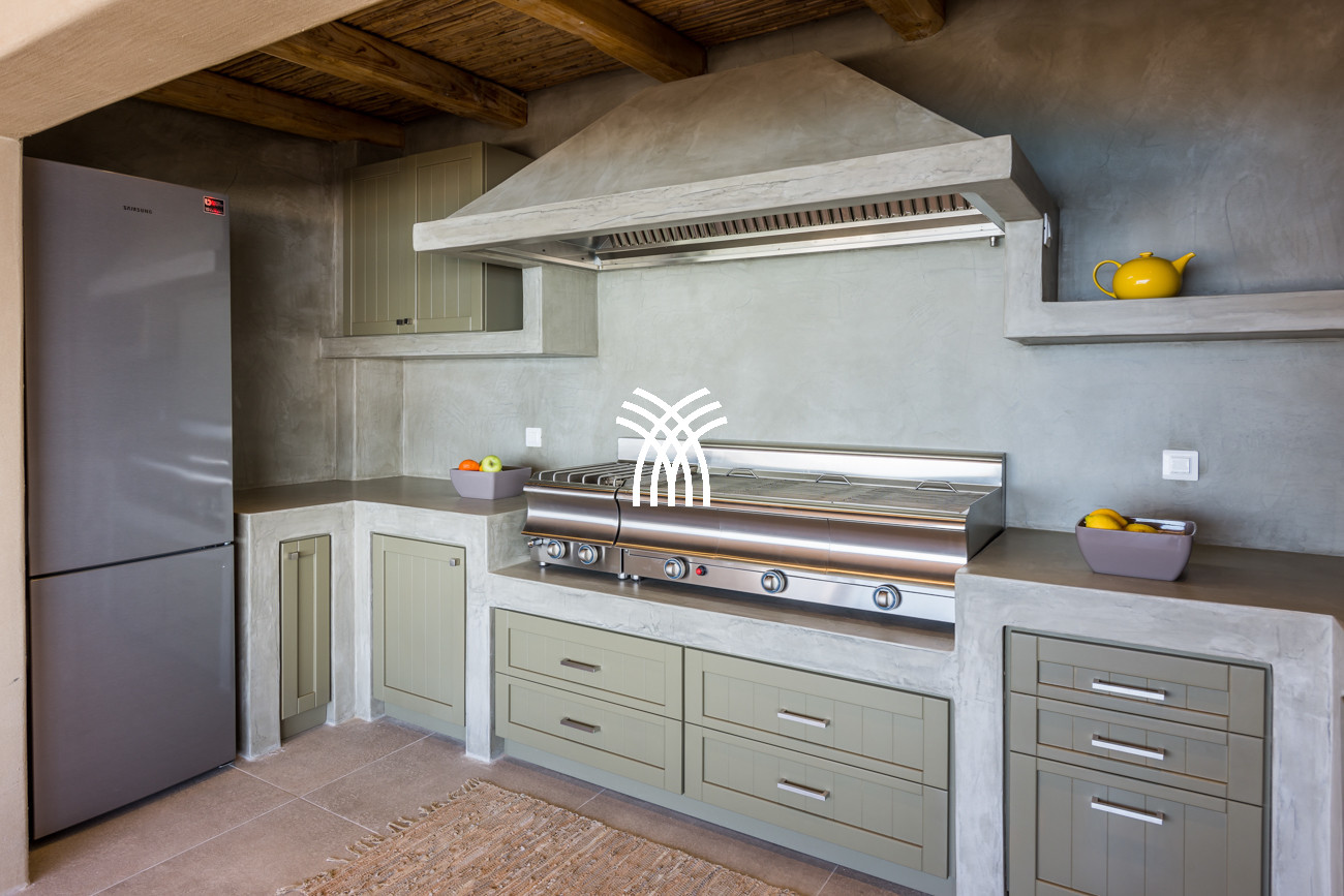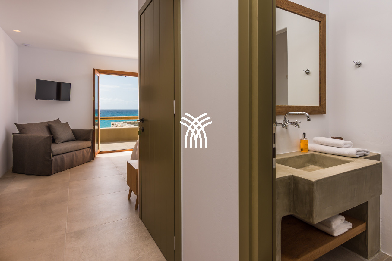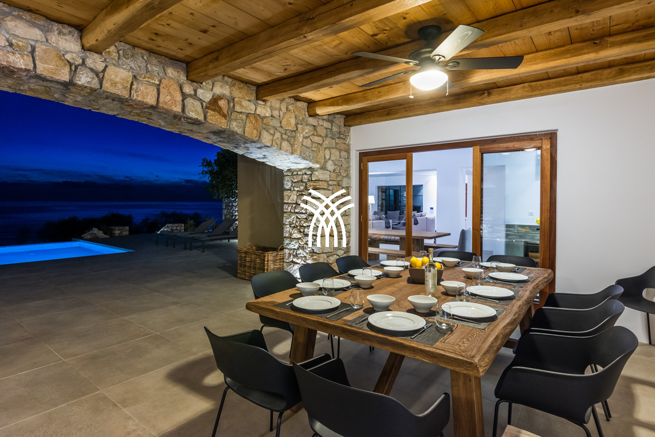 Just a few steps from the beach, this luxury seafront villa reveals uninterrupted views of the horizon and the ocean, in absolute silence only punctuated by the sound of waves. Arriving at the property is an experience in itself: a winding path crosses an ancient olive grove, passes by a chapel dedicated to Saint Dimitrios and gradually leads to a natural promontory overlooking a reef with turquoise hues and an untouched sandy beach, gradually revealing this timeless refuge.