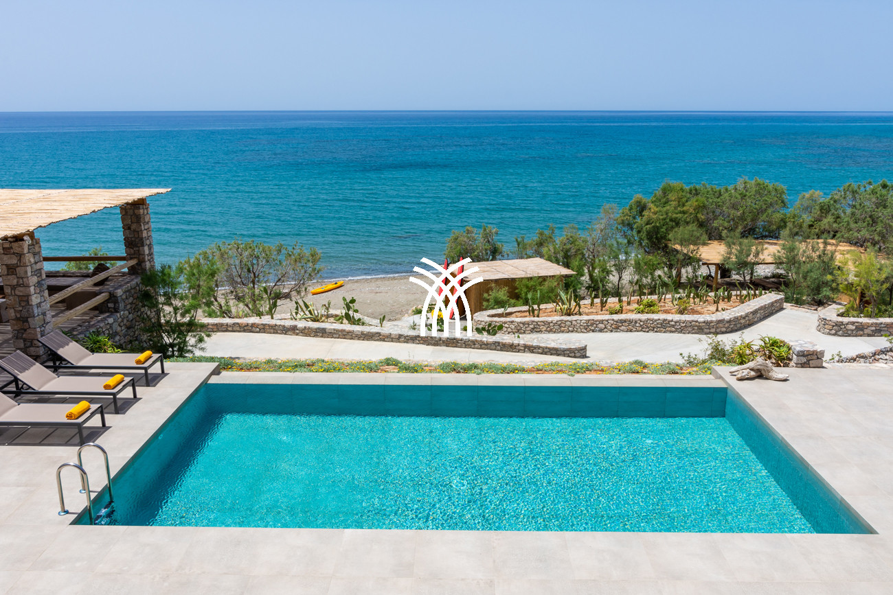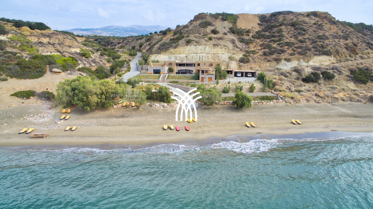 Set directly along the shores of southern Crete, this exceptional seaside retreat known as Villa Arvi offers an extraordinary escape where dramatic mountain landscapes meet the endless blue of the Libyan Sea. Designed as a private coastal estate composed of the main house, a separate guesthouse block, and an additional guestroom by the sea, the property delivers the scale, privacy, and atmosphere sought by travelers looking for a refined luxury villa rental Greece experience in one of the island’s most authentic and unspoiled settings.