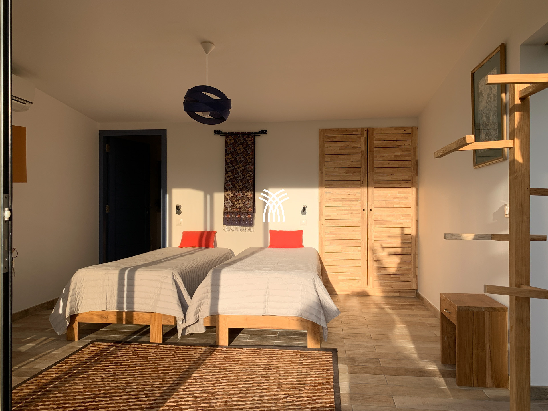 With its three air-conditioned suites, each equipped with its own private outdoor shower room, the Villa Sunset Palm guarantees a unique experience and optimal comfort. The main bedroom offers an unobstructed view of the sea, while the two others, facing east, benefit from a bright and soothing setting. All bedding is carefully chosen to ensure restful nights, and the outdoor shower rooms add an exotic touch to your stay.
