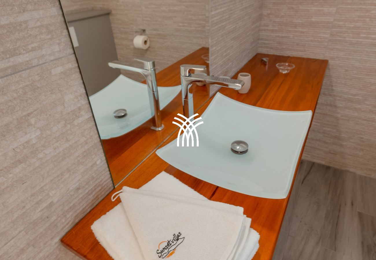 The vast living space of Villa Sunset Bay invites you to relax. The modern, fully-equipped American kitchen opens onto a bright and friendly living room, ideal for sharing privileged moments. Outside, the charm is immediate: an elegant wooden terrace surrounds an infinity mirror pool and a jacuzzi, offering breathtaking views of tropical sunsets. A barbecue, pool table, and ping-pong corner complete this space dedicated to conviviality and leisure.