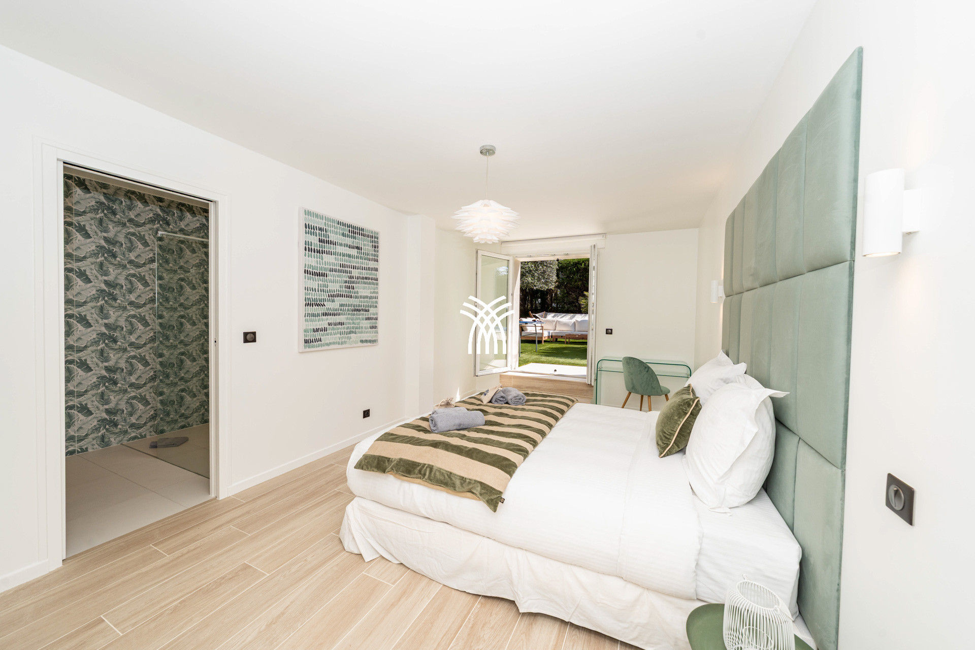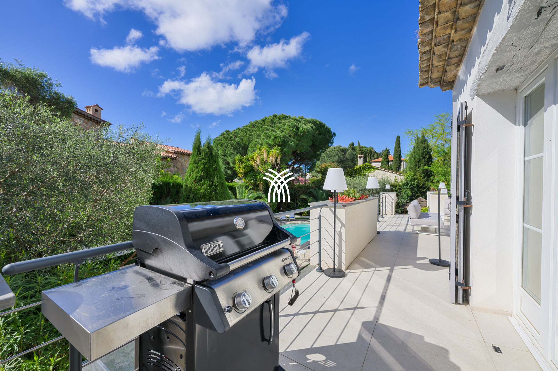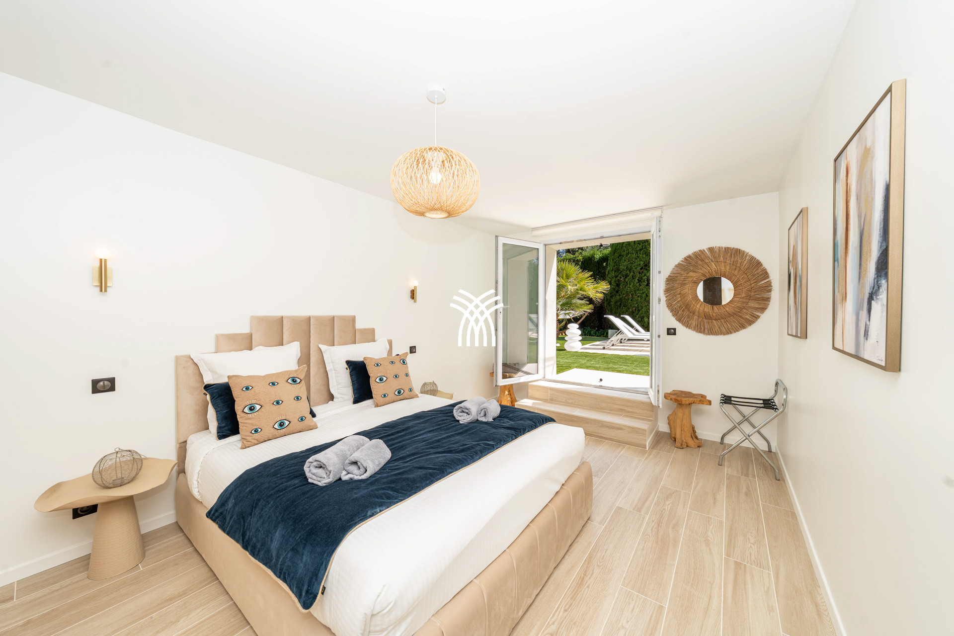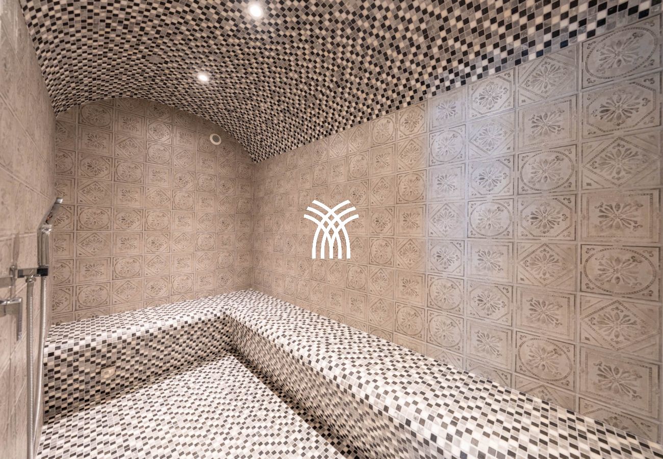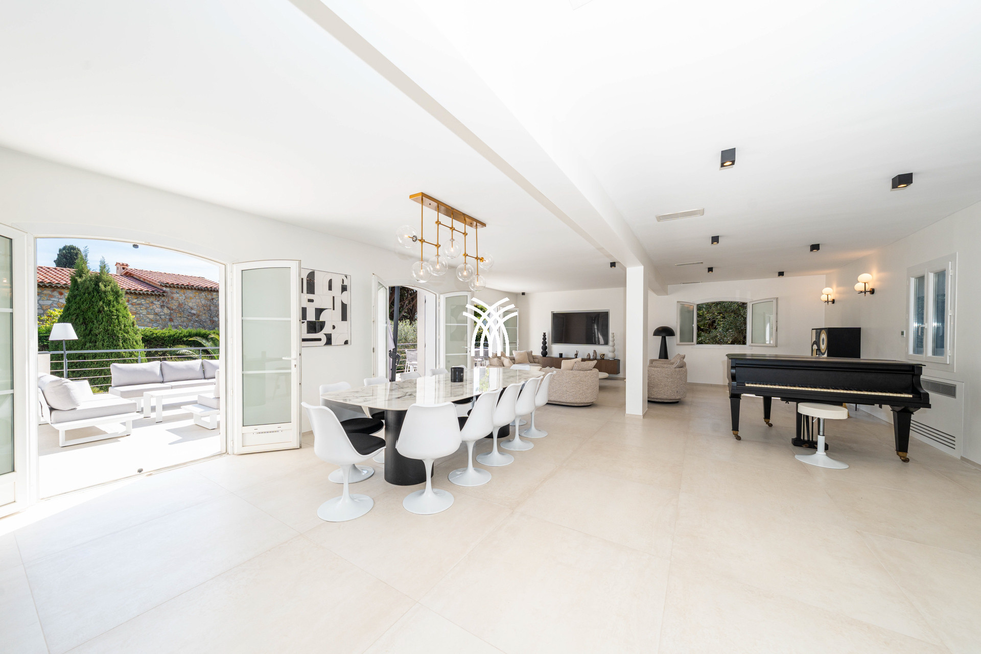 It accommodates up to 12 people thanks to its 6 elegant suites, all equipped with private bathrooms, including an independent studio perfectly suited for guests or staff. The vast living room bathed in natural light opens onto a south-facing terrace, where a grand piano adds a touch of elegance and conviviality. The high-end, fully equipped kitchen will delight gastronomy enthusiasts and private chefs.
