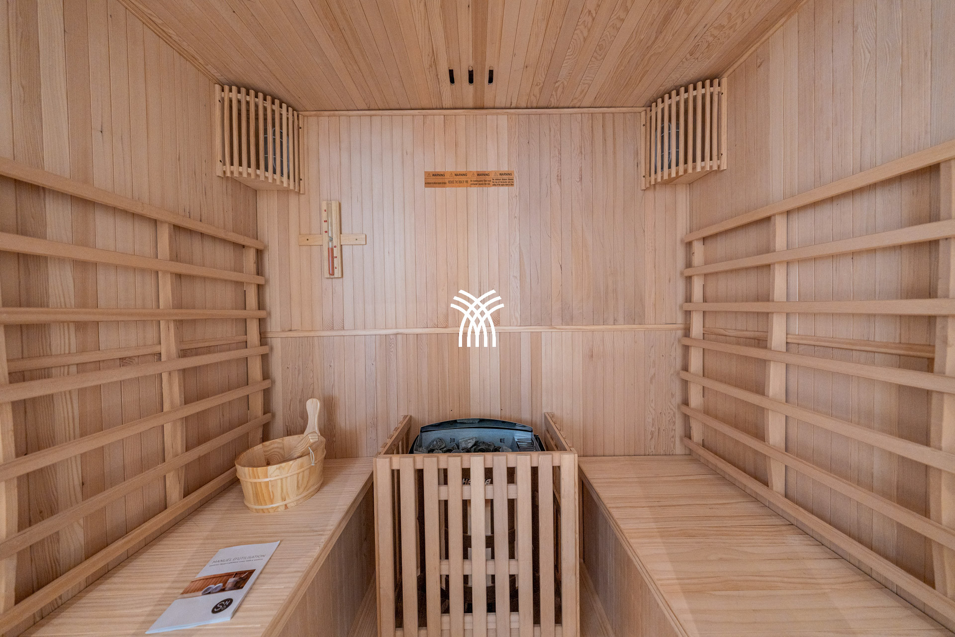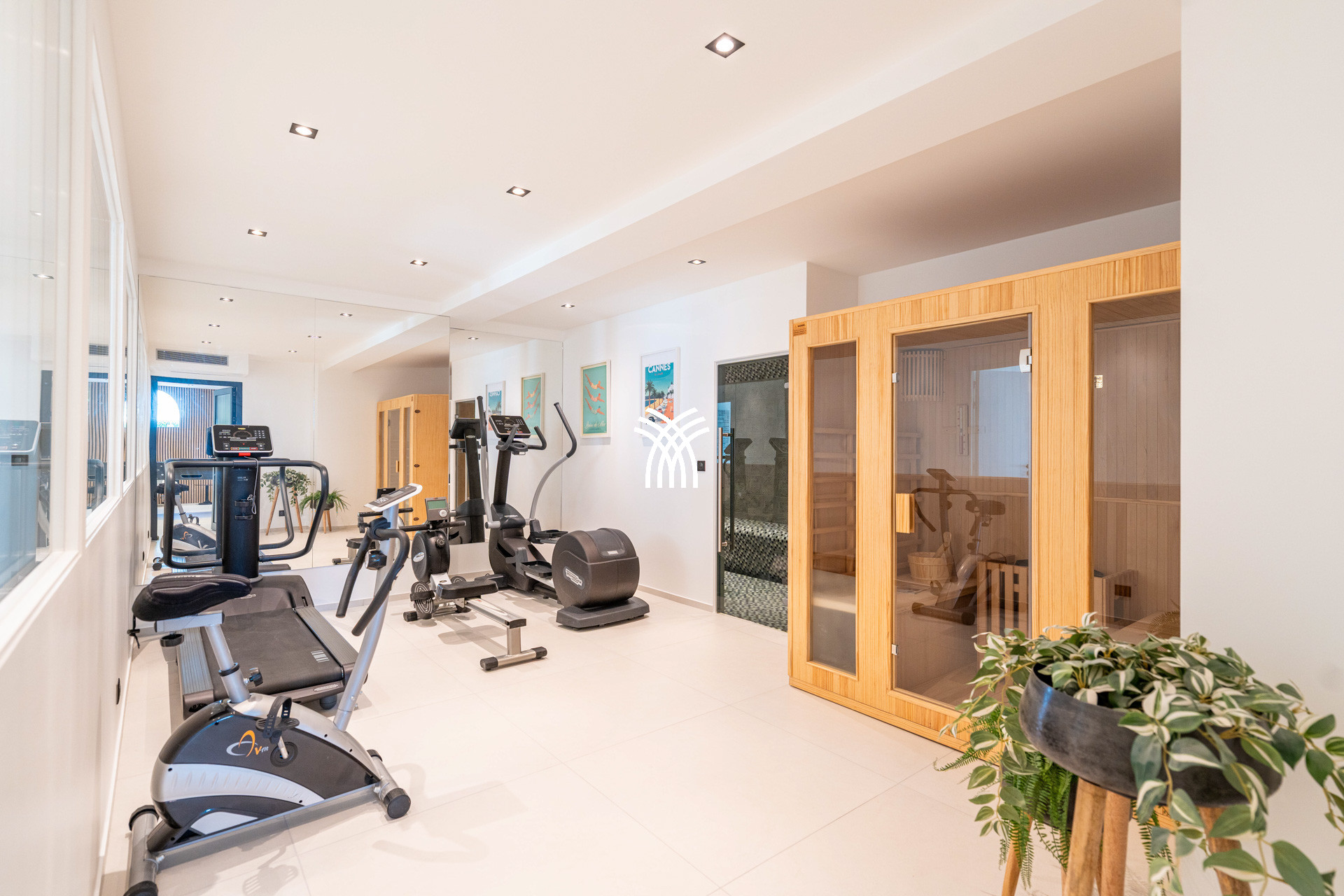 Thought for well-being, Villa Séverine offers a complete relaxation space with sauna, hammam, and a gym equipped with 4 Technogym machines. On the leisure side, everything is gathered to share warm moments: foosball, ping-pong, petanque court. Outside, the heated pool is lined with 12 sun loungers and the large landscaped terrace invites relaxation and outdoor meals.