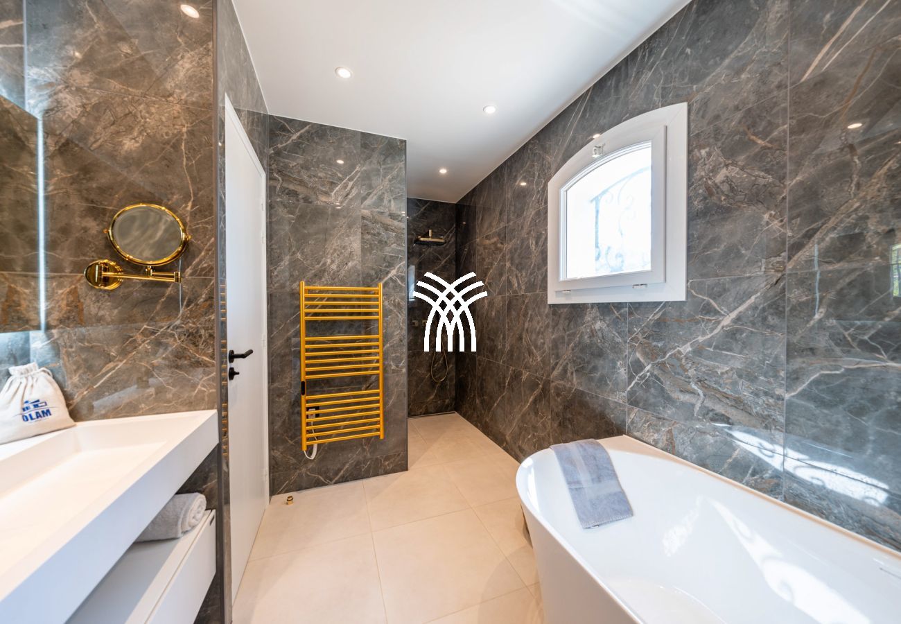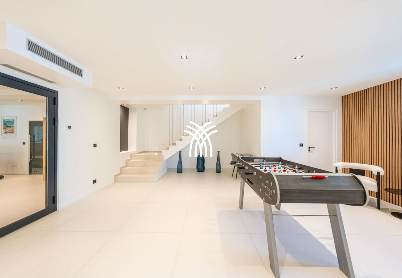 This luxury villa in Cannes also has 3 private parking spaces, 2 of which have electric charging stations, and is fully air-conditioned. It is an ideal option for family or friends' vacations, as well as for congresses and professional events in Cannes, thanks to its central location and accessibility.