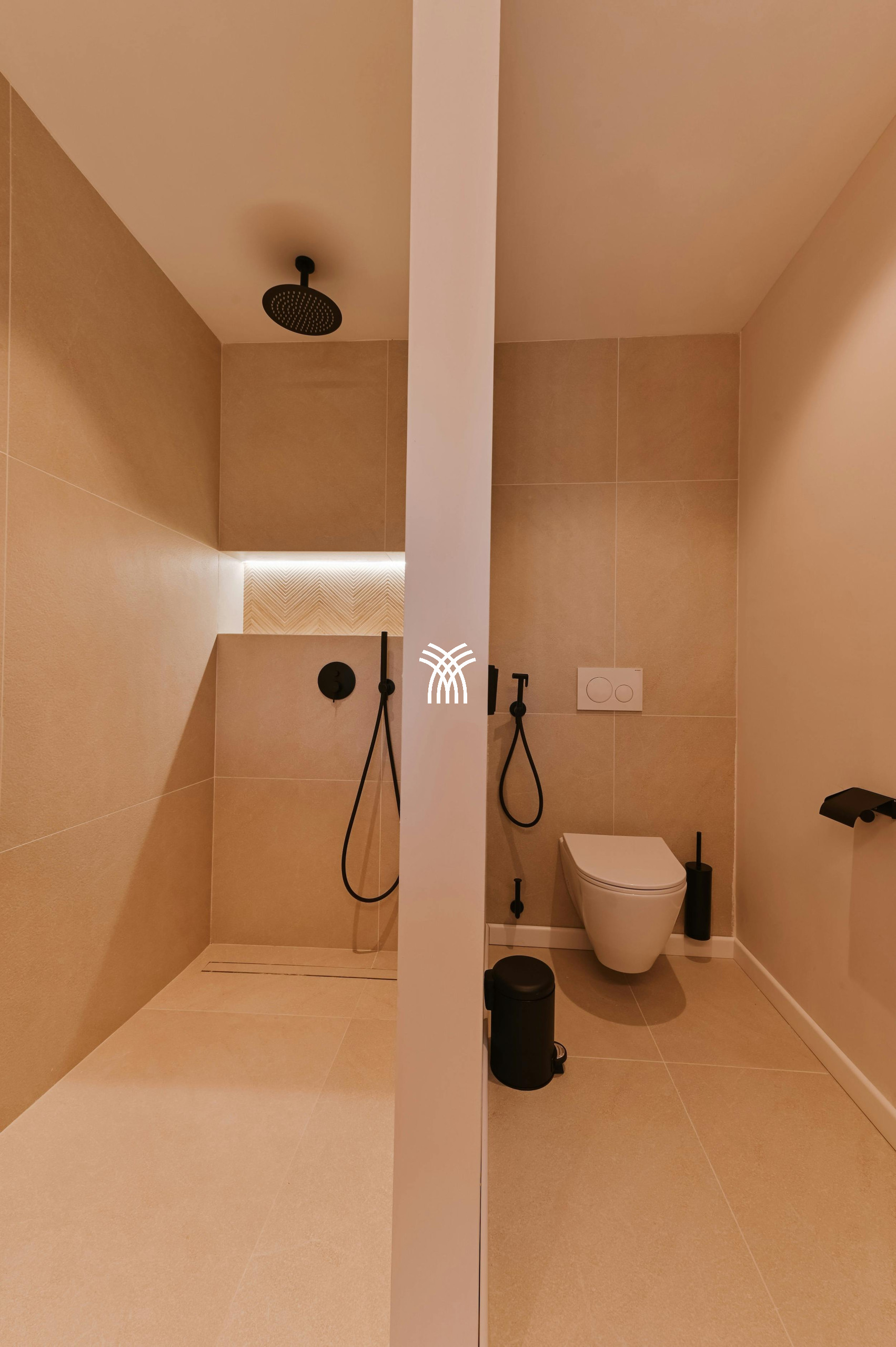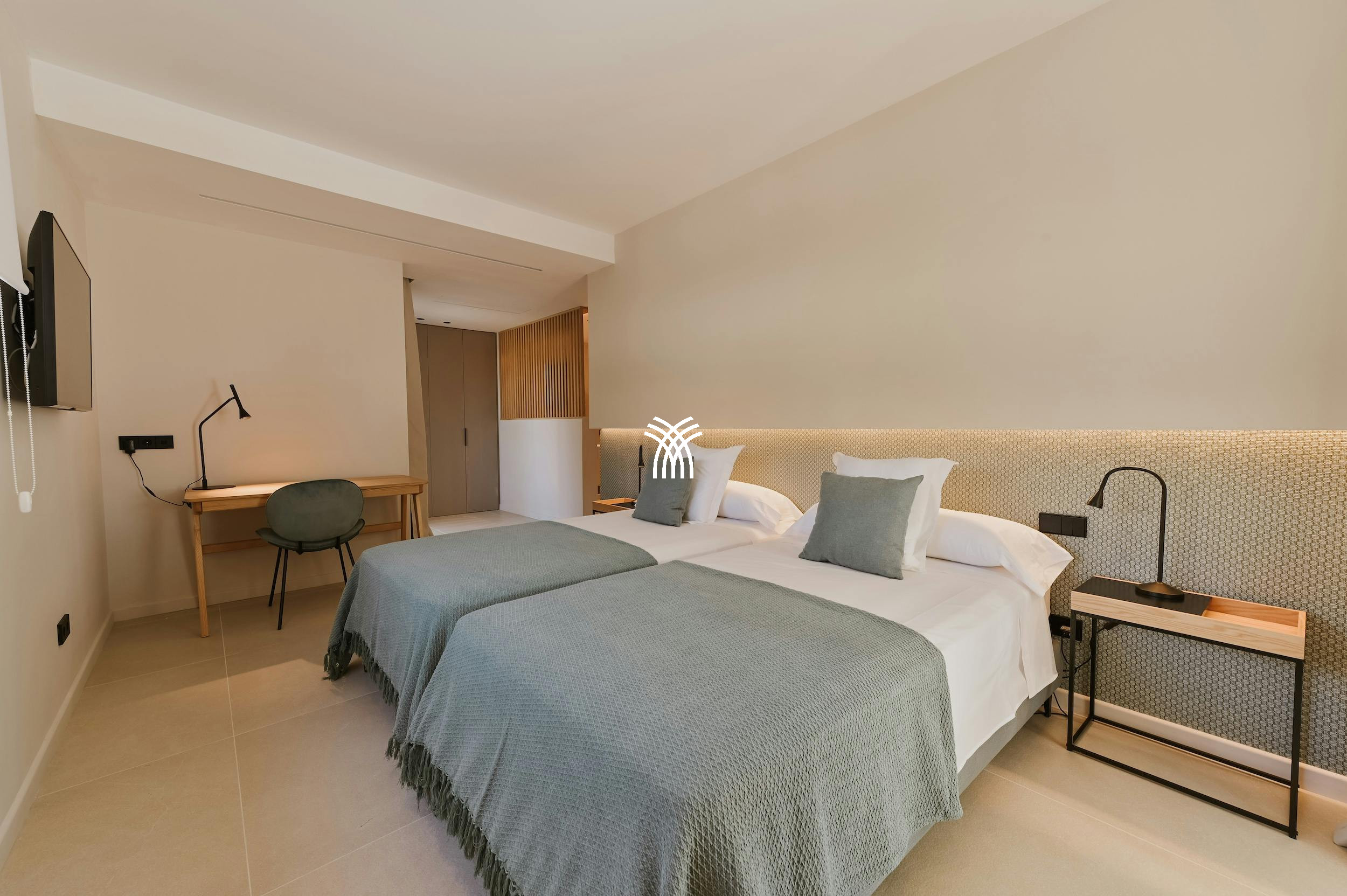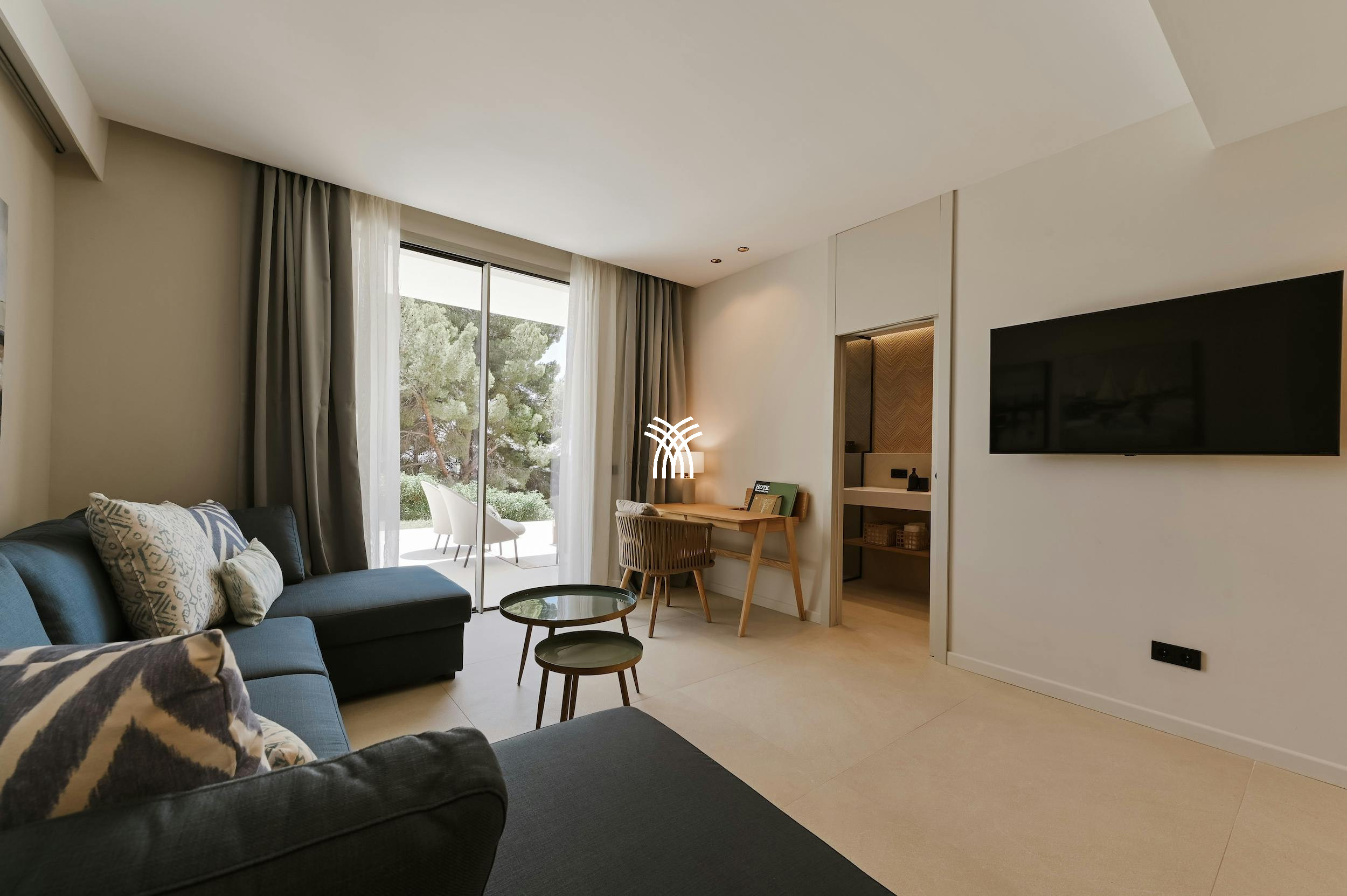 Villa Hosefina offers six beautifully appointed bedrooms across two levels. The ground floor hosts three rooms, including a flexible bedroom with sofa bed and workstation, a spacious suite with en-suite bath, and a comfortable space ideal for staff or a nanny. On the upper floor, three more bedrooms each offer access to a private terrace, luxurious en-suite bathrooms with rain showers, and stunning views. The master suite adds a freestanding bathtub and a private lounge with TV and work area.