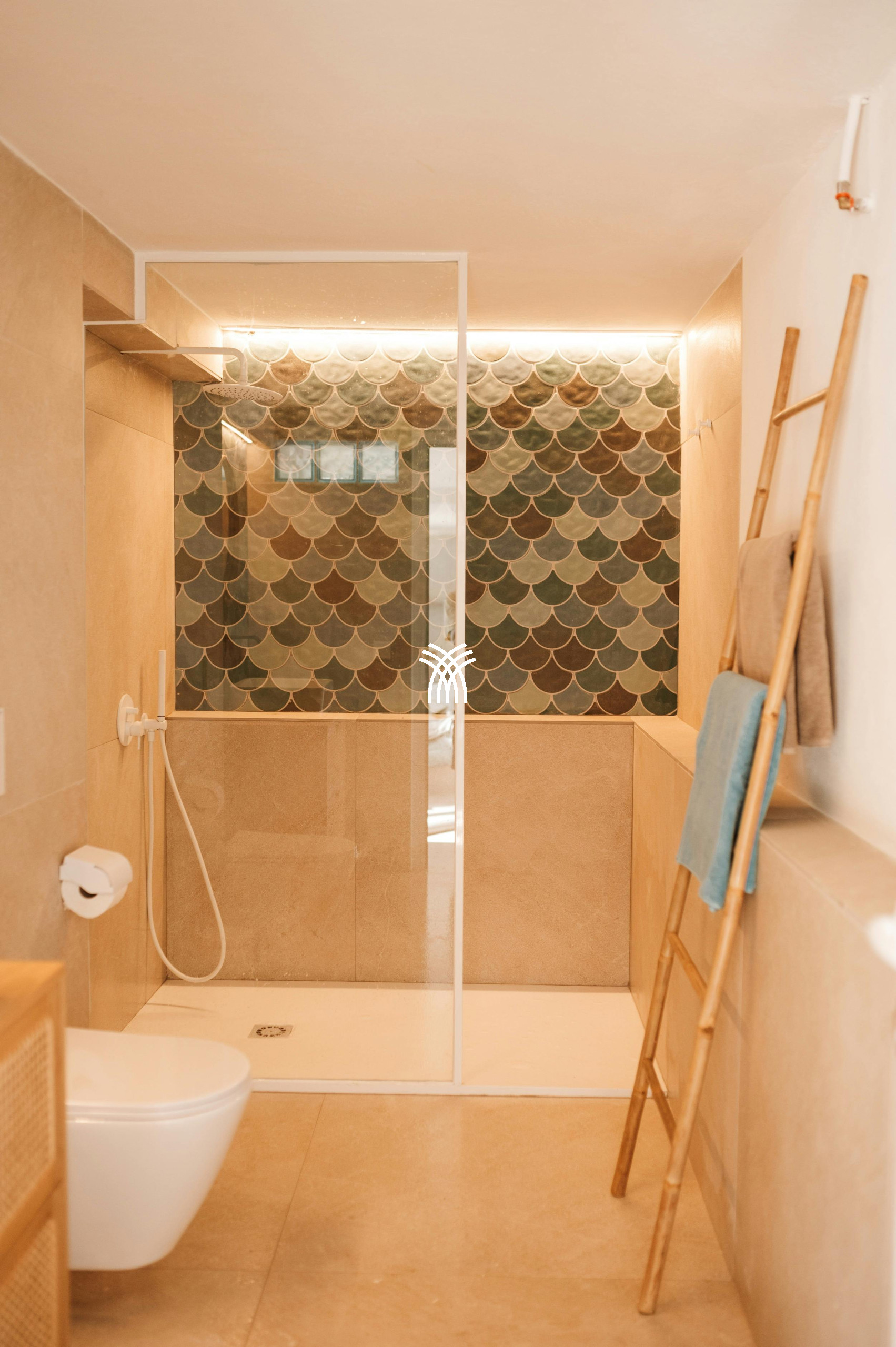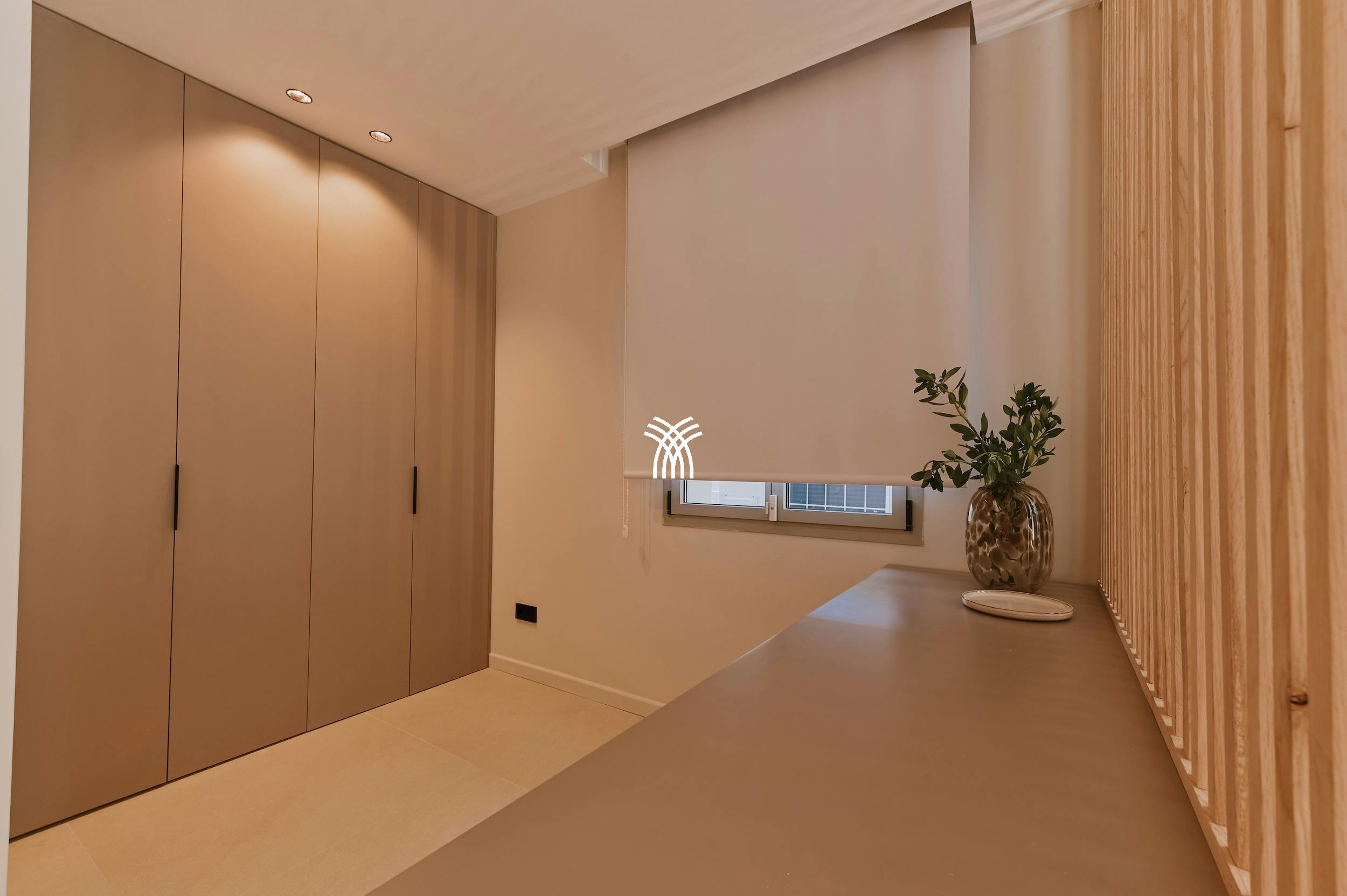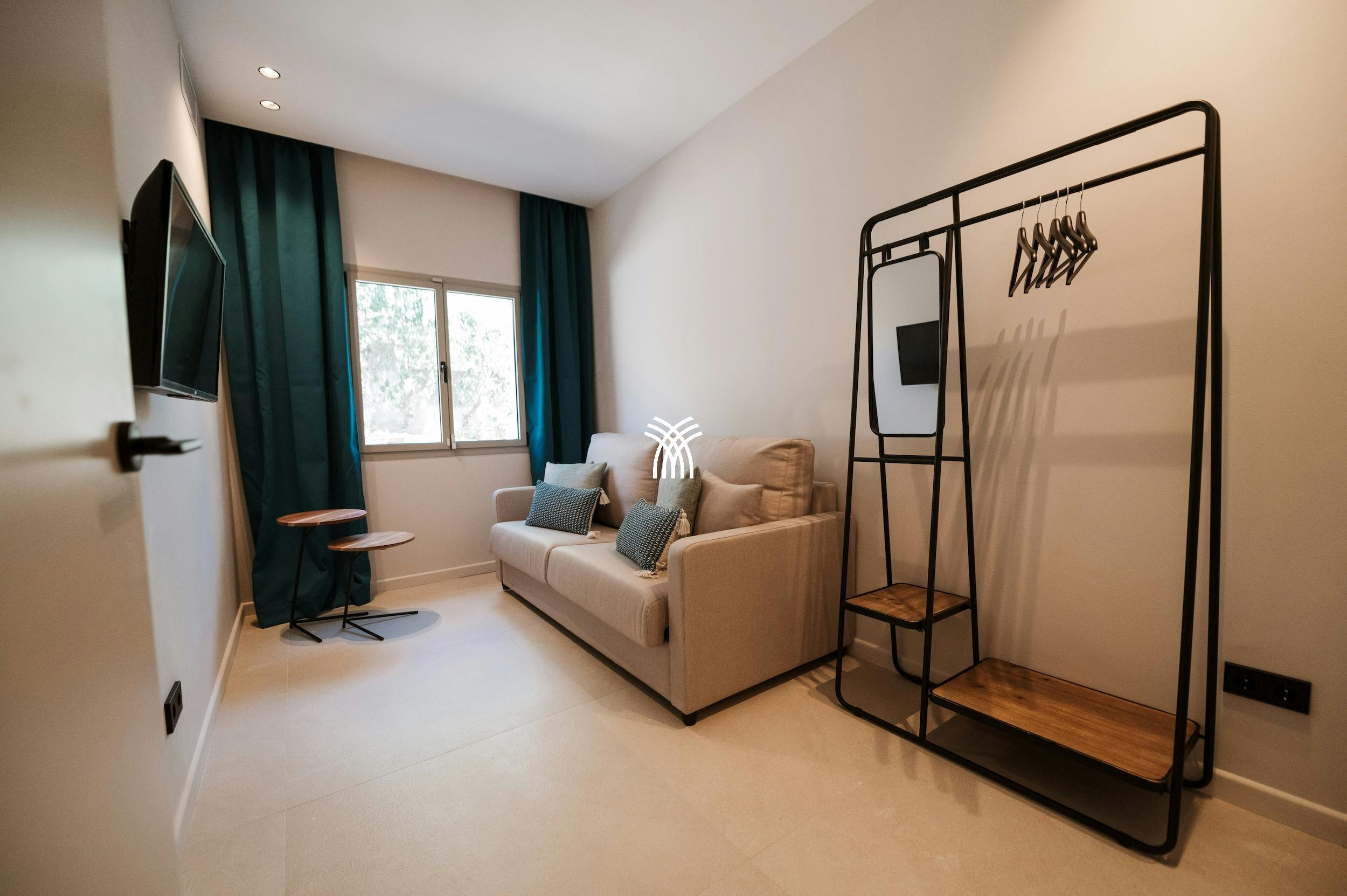 Villa Hosefina offers six beautifully appointed bedrooms across two levels. The ground floor hosts three rooms, including a flexible bedroom with sofa bed and workstation, a spacious suite with en-suite bath, and a comfortable space ideal for staff or a nanny. On the upper floor, three more bedrooms each offer access to a private terrace, luxurious en-suite bathrooms with rain showers, and stunning views. The master suite adds a freestanding bathtub and a private lounge with TV and work area.