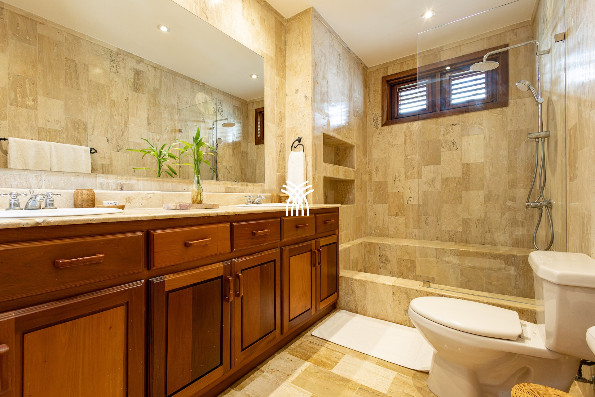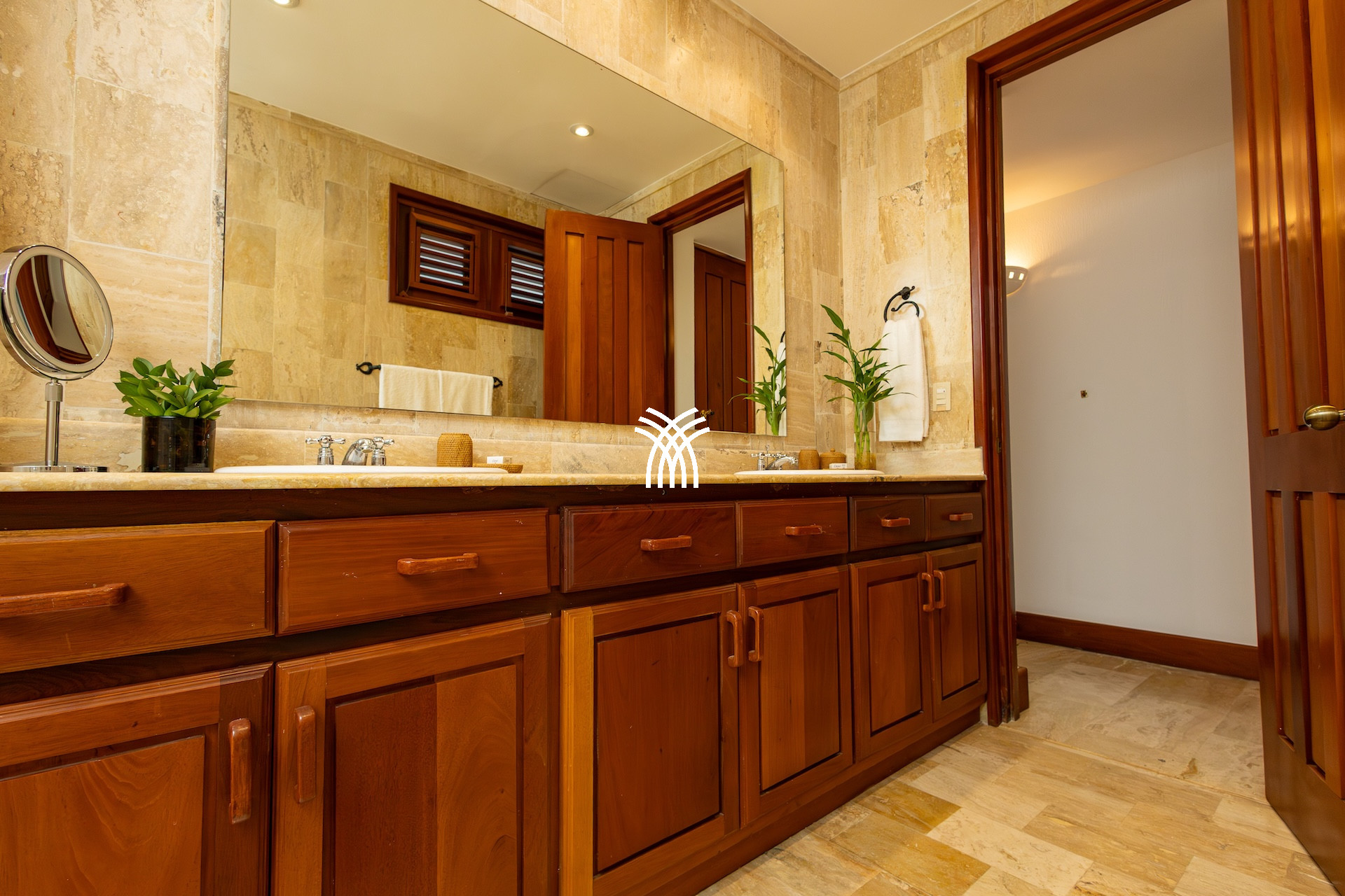 Designed to accommodate up to eight people, this luxury villa rental in the Dominican Republic has four comfortable suites where refined linen, elegant bathrooms and spacious storage create a perfect cocoon for rest. Each space breathes calm and discretion, offering everyone their privacy in the heart of an exotic setting.
