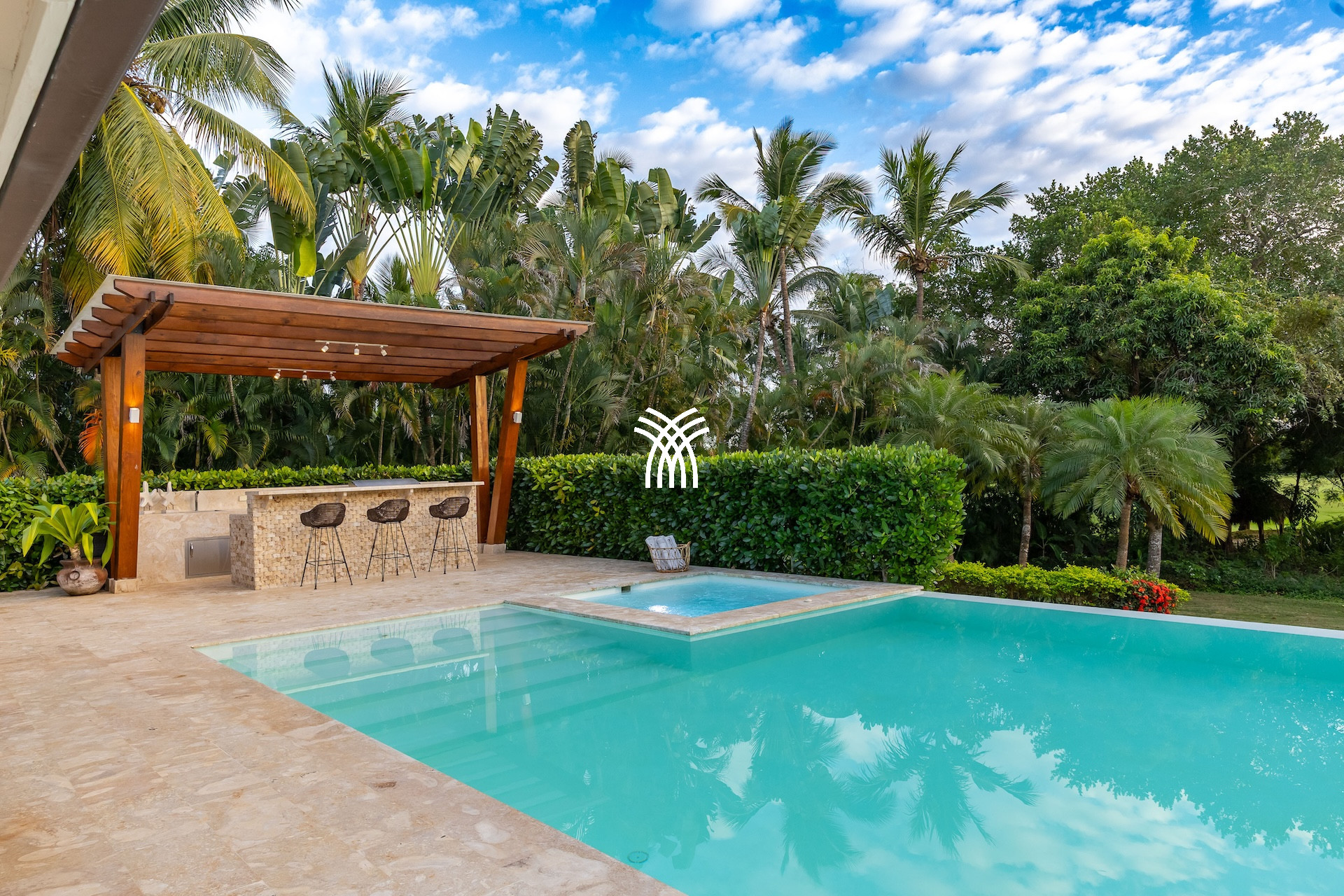 Casa Bliss is an ode to tropical elegance, nestled in the heart of the prestigious Casa de Campo estate, and perfect for a luxury villa rental in the Dominican Republic that combines refinement, serenity and absolute intimacy. This four-bedroom villa, situated on the edge of an immaculate golf course, captivates with its architecture that gives pride of place to nature and indoor-outdoor comfort.