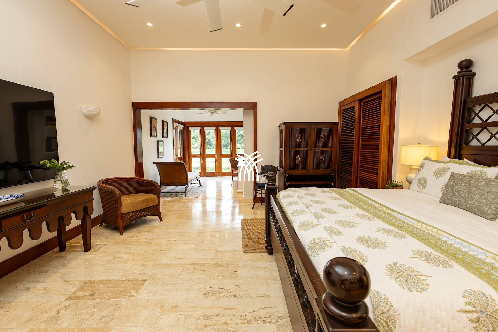 From the moment you arrive via the grand, tree-lined driveway, Casa Saman invites you into a world where serenity and sophistication coexist. The villa’s open, breezy design creates a seamless connection between indoor comfort and the vibrant outdoor setting. The spacious living room flows gracefully onto a sun-drenched patio, revealing panoramic views of the tropical gardens and the glistening swimming pool beyond—a perfect setting for quiet reflection or joyful moments with family and friends.