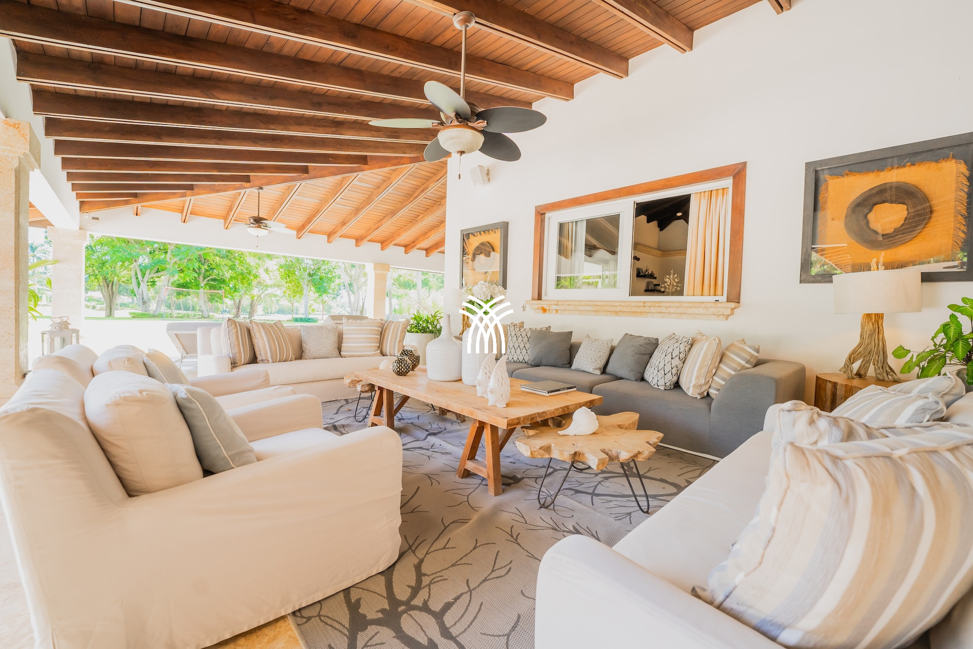 Villa Coral is an elegant private retreat overlooking the celebrated Links Golf Course and the shimmering Caribbean Sea, offering an exceptional setting for travelers seeking a refined yet welcoming luxury villa rental in the Dominican Republic. Designed for effortless family living and sophisticated island relaxation, the residence opens into generous living and dining spaces where natural light, open views, and graceful interiors create a calm and social atmosphere ideal for gathering, entertaining, and unwinding in complete comfort.
