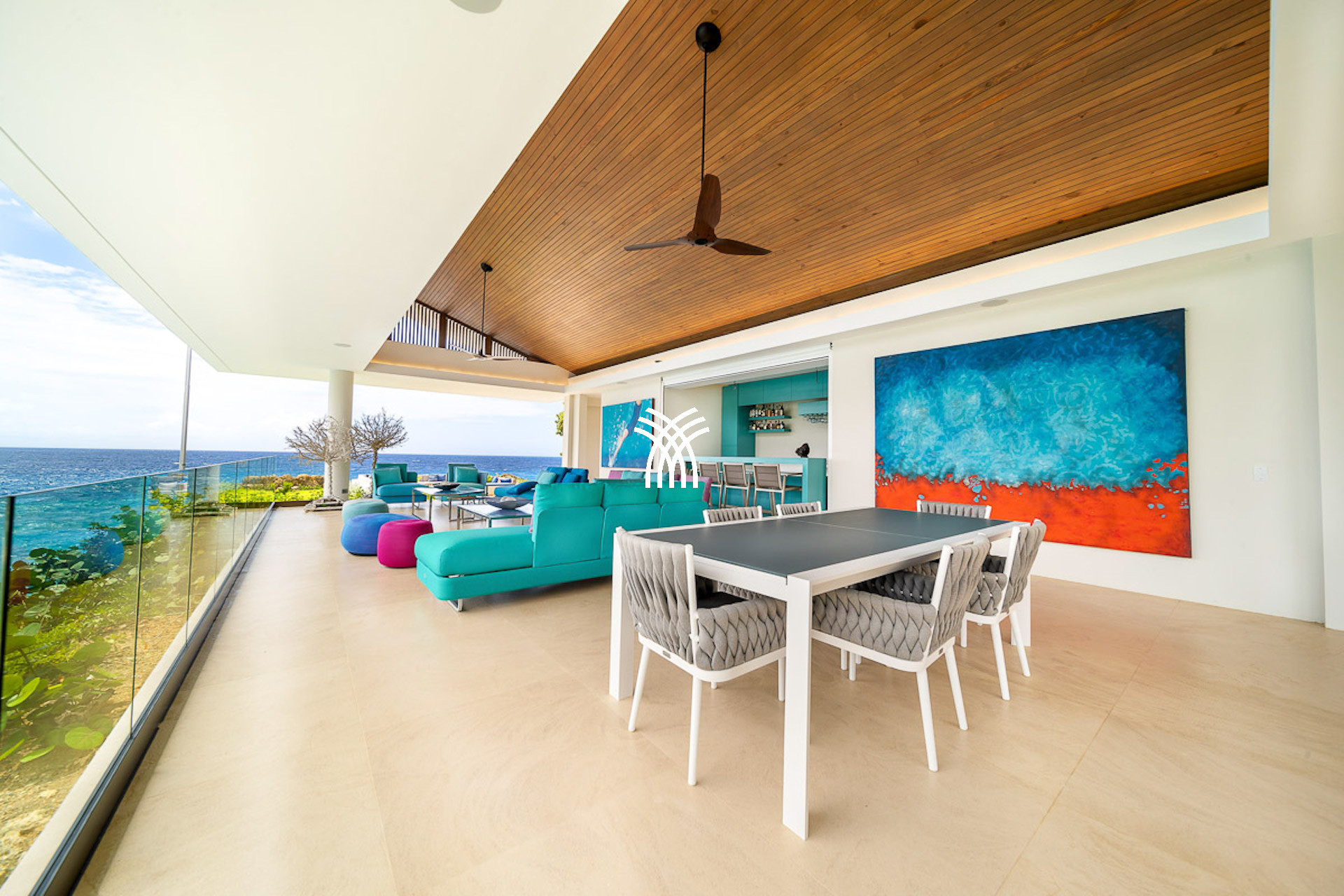 As twilight falls, the poolside terrace becomes an oasis of calm and beauty. Whether you're basking in the warm glow of sunset or sharing cocktails with loved ones in the ocean breeze, each evening is imbued with enchantment. Inside, the state-of-the-art "show kitchen" invites you to witness culinary artistry firsthand, while the adjoining industrial kitchen ensures every dish is a masterpiece crafted with precision and passion.