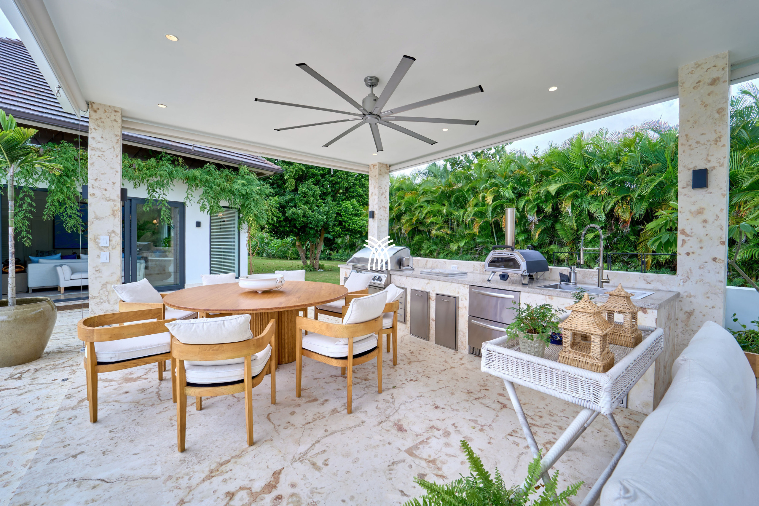 The villa is perfectly suited for memorable family stays and social gatherings, offering a comfortable air-conditioned family TV room for relaxed evenings, as well as an independent air-conditioned dining room that creates an intimate setting for shared meals. Outdoors, a spectacular gazebo becomes the natural heart of entertainment, thoughtfully equipped with a television, BBQ, and pizza oven, inviting long afternoons of outdoor cooking, casual celebrations, and warm Caribbean nights spent together in complete privacy.