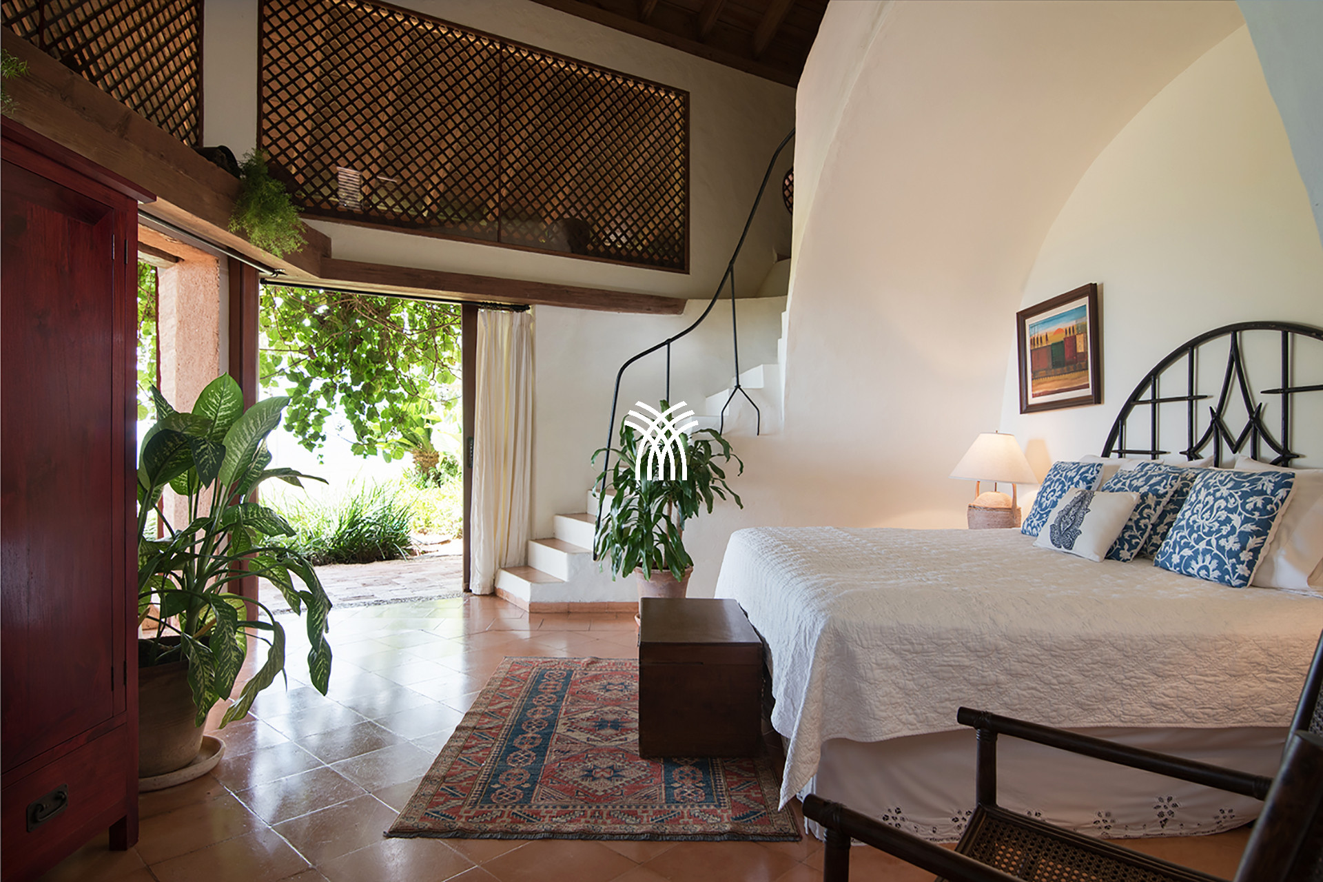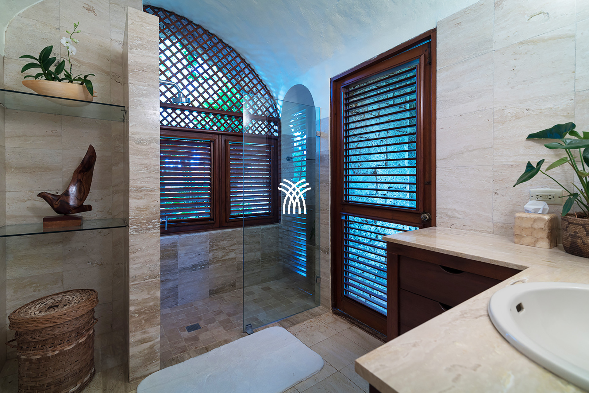 The master suite is a sanctuary of tranquility, perfectly positioned to greet the sunrise over the sea, while a second master suite and two beautifully appointed guest bedrooms provide the same level of luxury, privacy, and comfort. Each room is fully air-conditioned and features its own en-suite bathroom, ensuring a serene and restorative stay.