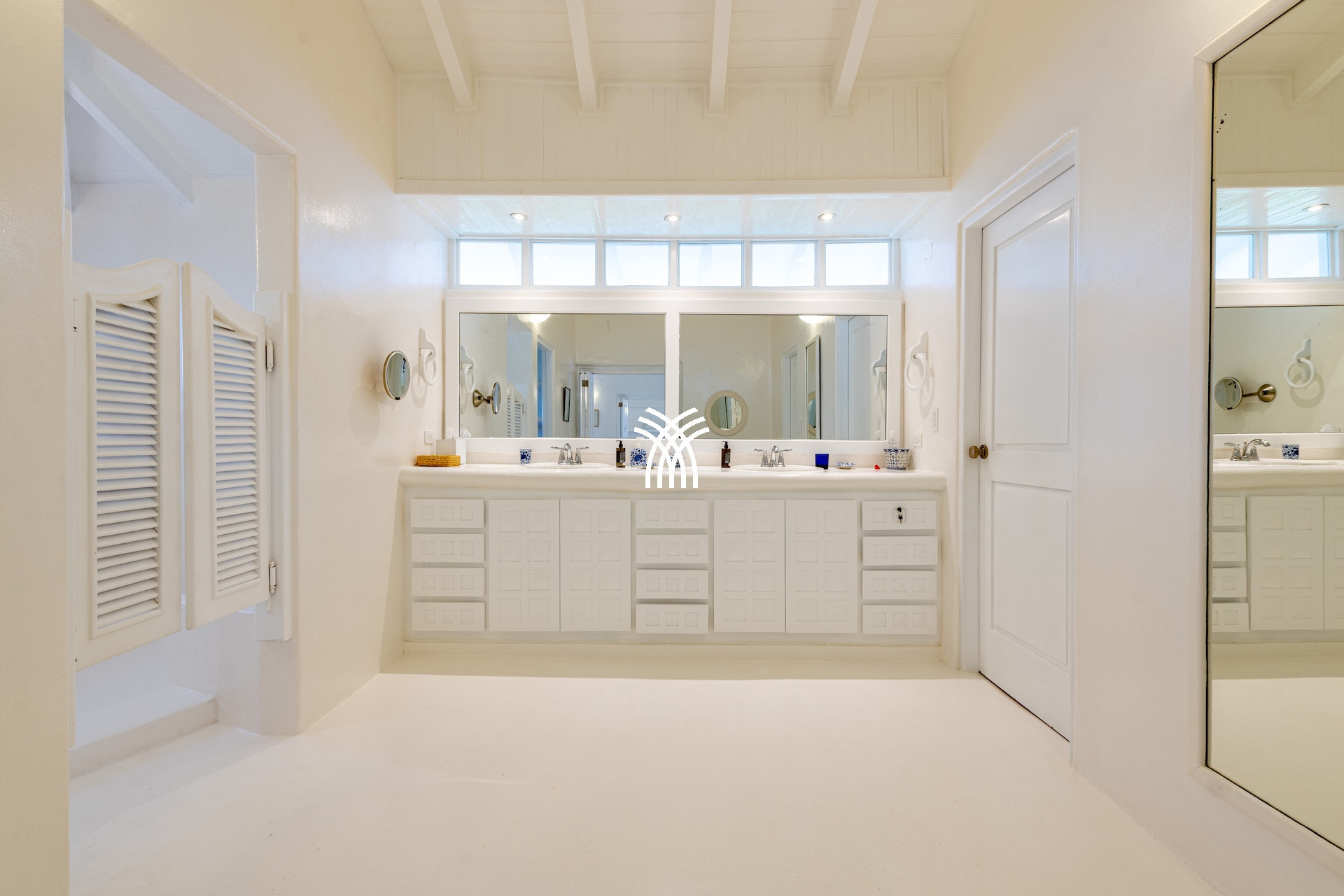 Gatherings are made extraordinary with a formal dining area that seats fourteen, while a charming breakfast nook offers a more intimate way to greet each day with uninterrupted views of the water. On the ground floor, the guest master suite, two additional guest bedrooms, and a cozy studio all open to a breezy outdoor corridor, where mornings begin with the beauty of tropical gardens and the endless sea. Upstairs, the main master suite, a secondary master, and a delightful children’s room provide sanctuary and space for every member of the family.