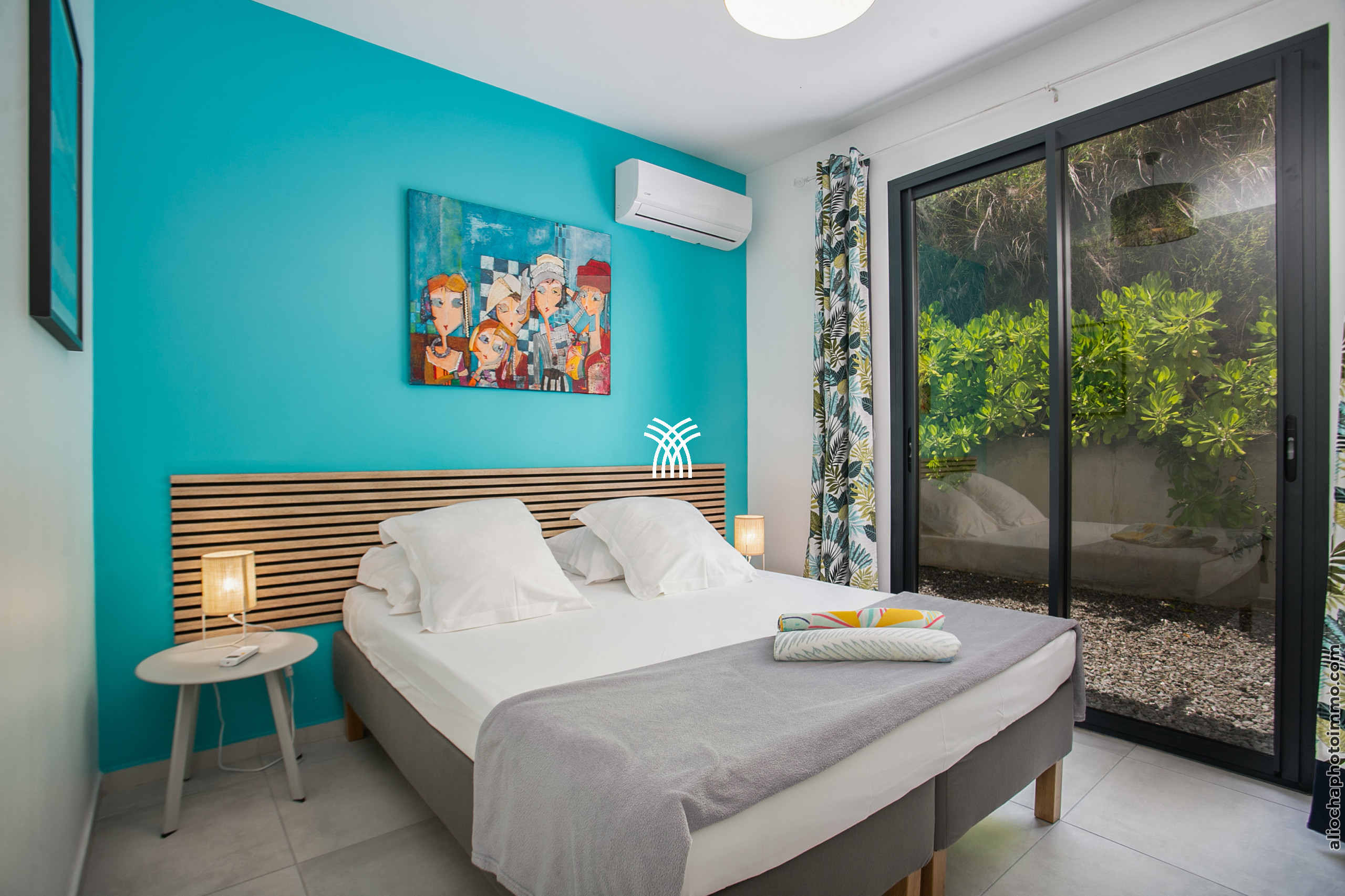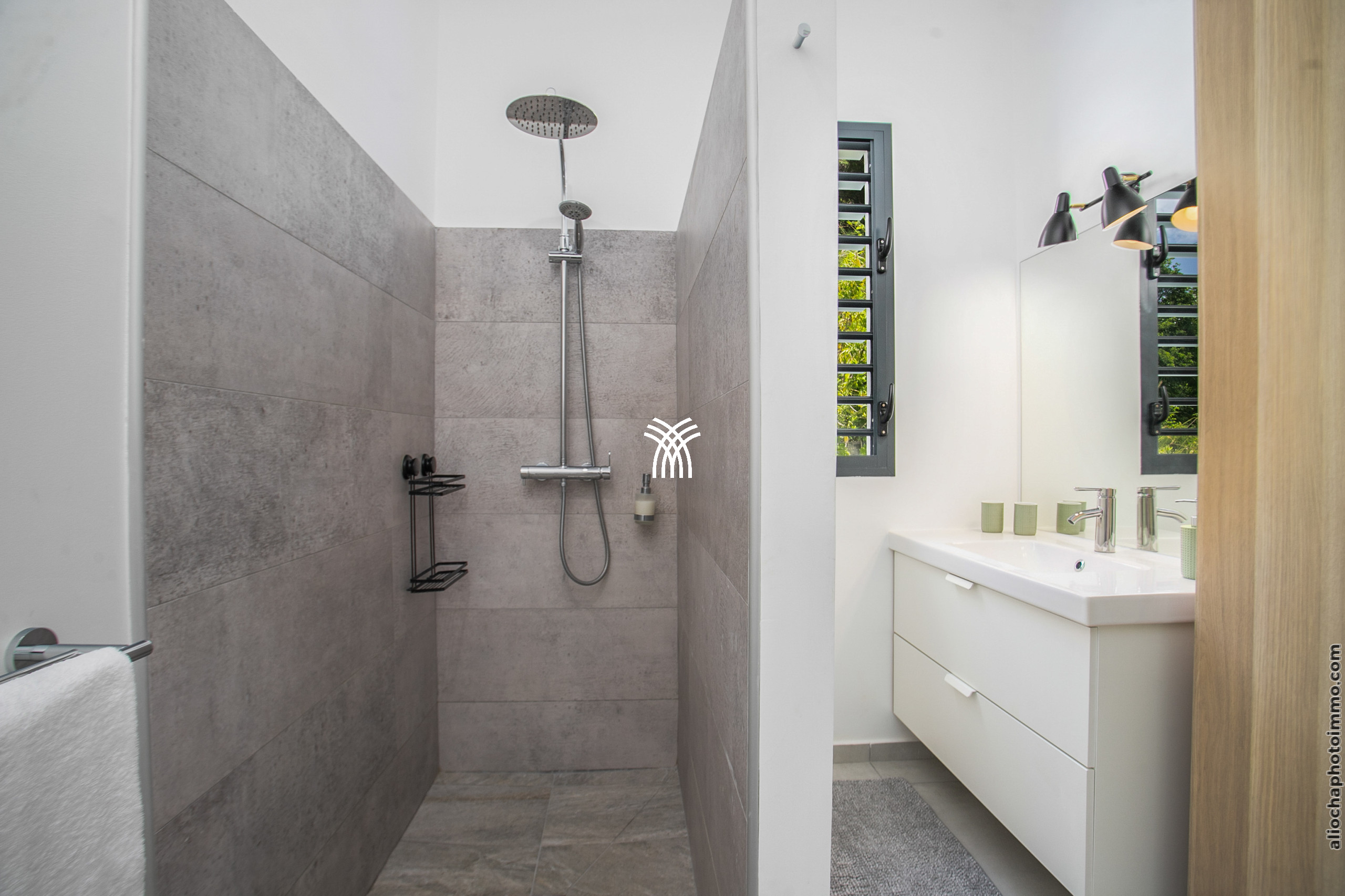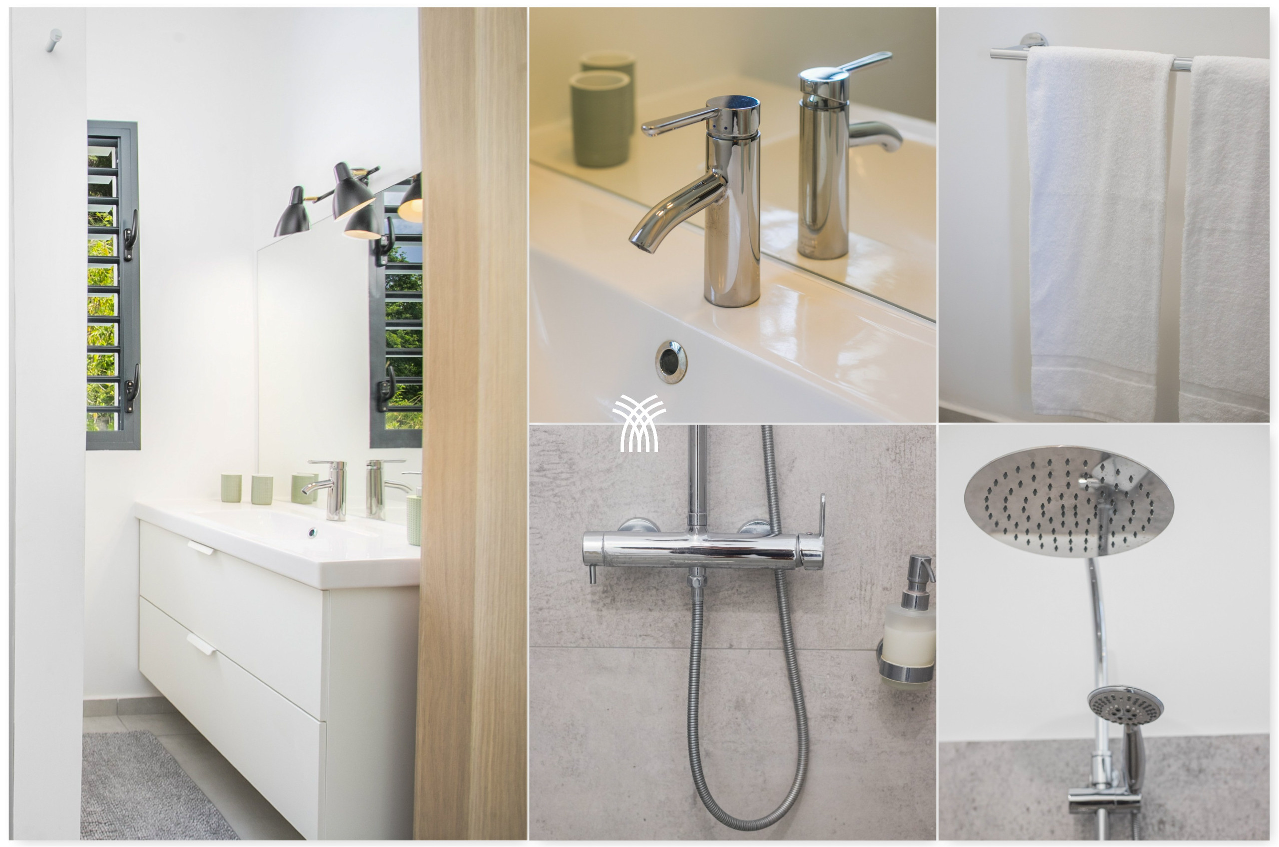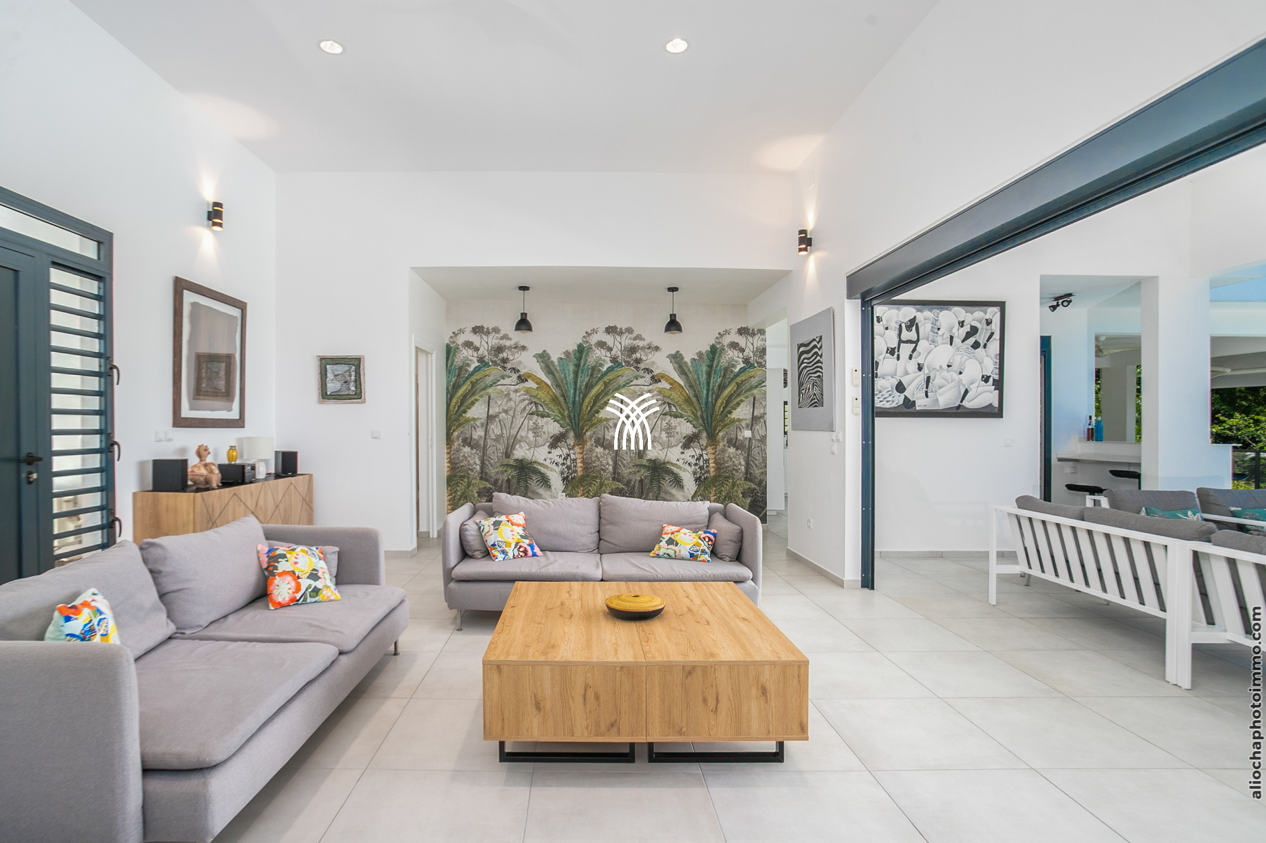 The Aqua villa, a true haven of serenity, offers a refined decor with tropical influences. The tiled roof, exposed beams, and light filtered through the slatted screens provide an authentic Creole charm. All spaces have been designed for comfort and well-being, in a bright and soothing atmosphere.