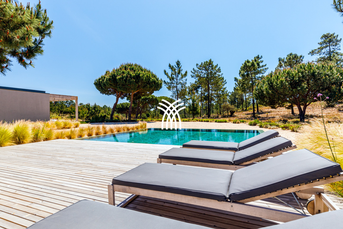 Set in the tranquil countryside of Muda, in the heart of Comporta, Villa Camellia embodies refined contemporary living immersed in nature, offering an exceptional experience of privacy, space, and elegance in one of Portugal’s most sought-after destinations. Designed by renowned architect Pedro Ferreira Pinto, this remarkable property unfolds across a vast 23-hectare estate framed by pine forests and open meadows, creating an atmosphere of serenity that defines the essence of a luxury villa rental Portugal and an authentic luxury villa rental Comporta.