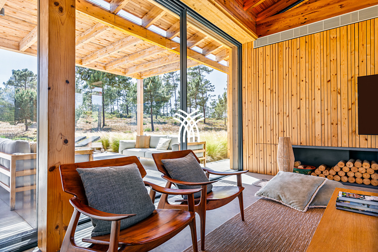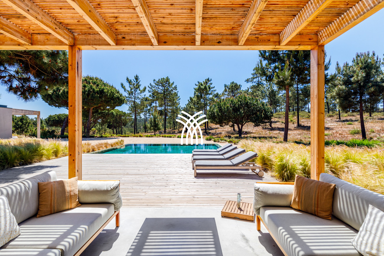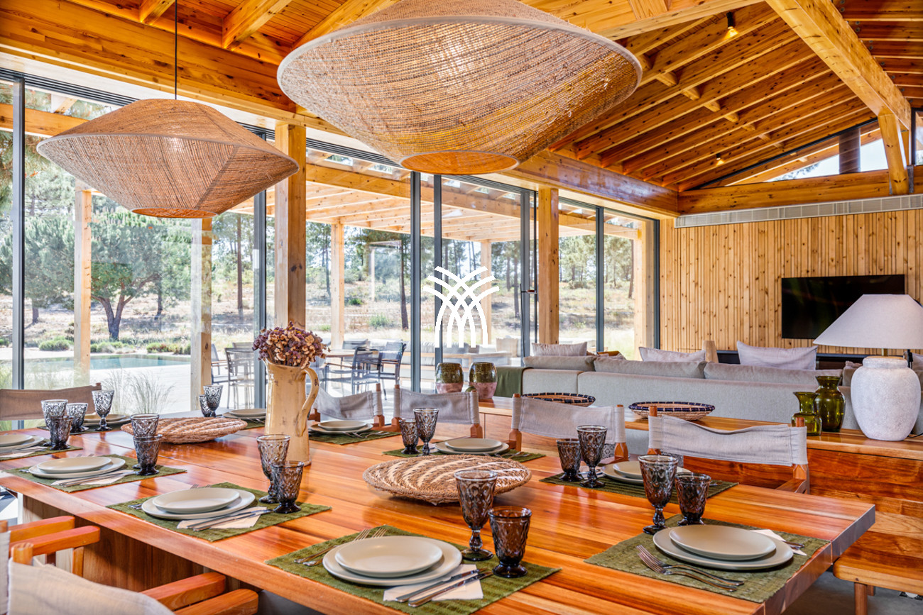 Bathed in sunlight throughout the day, Villa Amaya reveals a harmonious connection with its surroundings, with views opening toward the natural reserve and sunsets unfolding through the woods in soft, golden tones. The heated saltwater swimming pool forms the heart of the outdoor living experience, framed by expansive gardens and open spaces designed for relaxation, contemplation, and shared moments under the Comporta sky. Every corner of the property invites guests to slow down and embrace the rhythm of nature, where elegance is expressed through simplicity and space.
