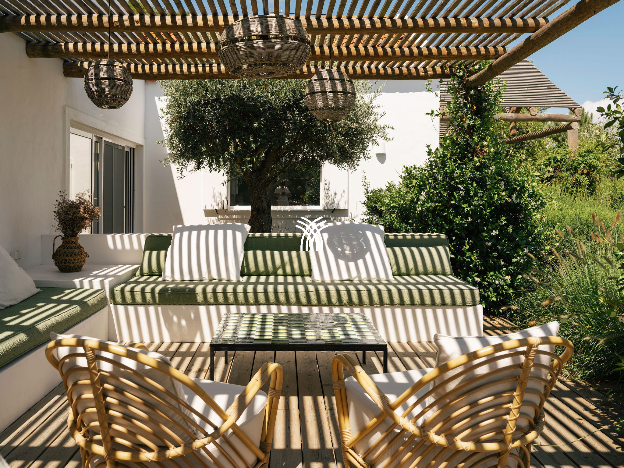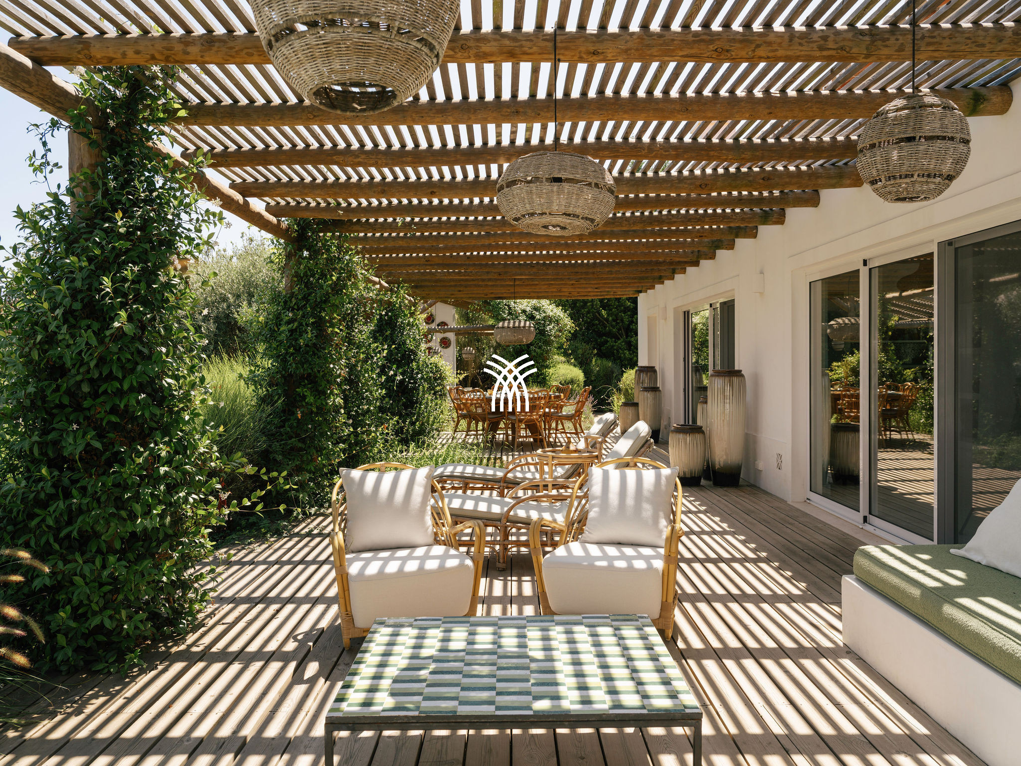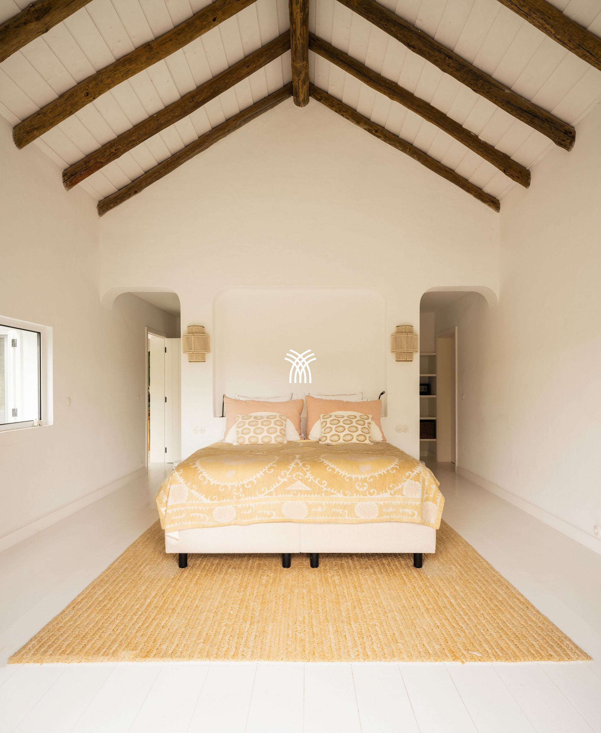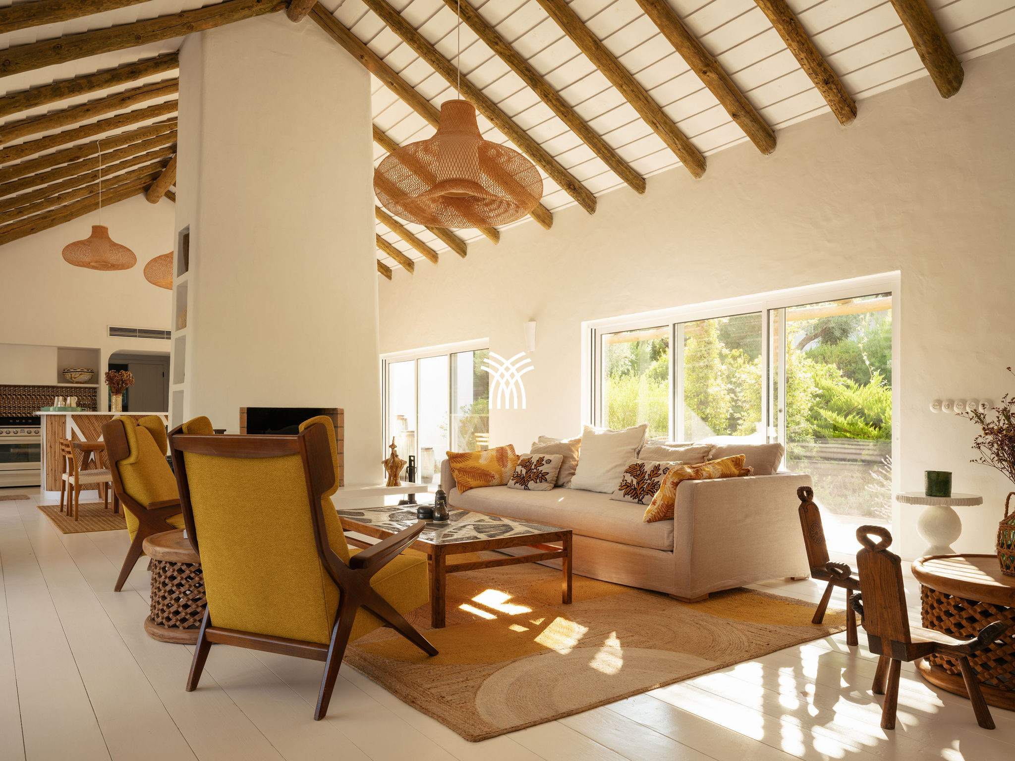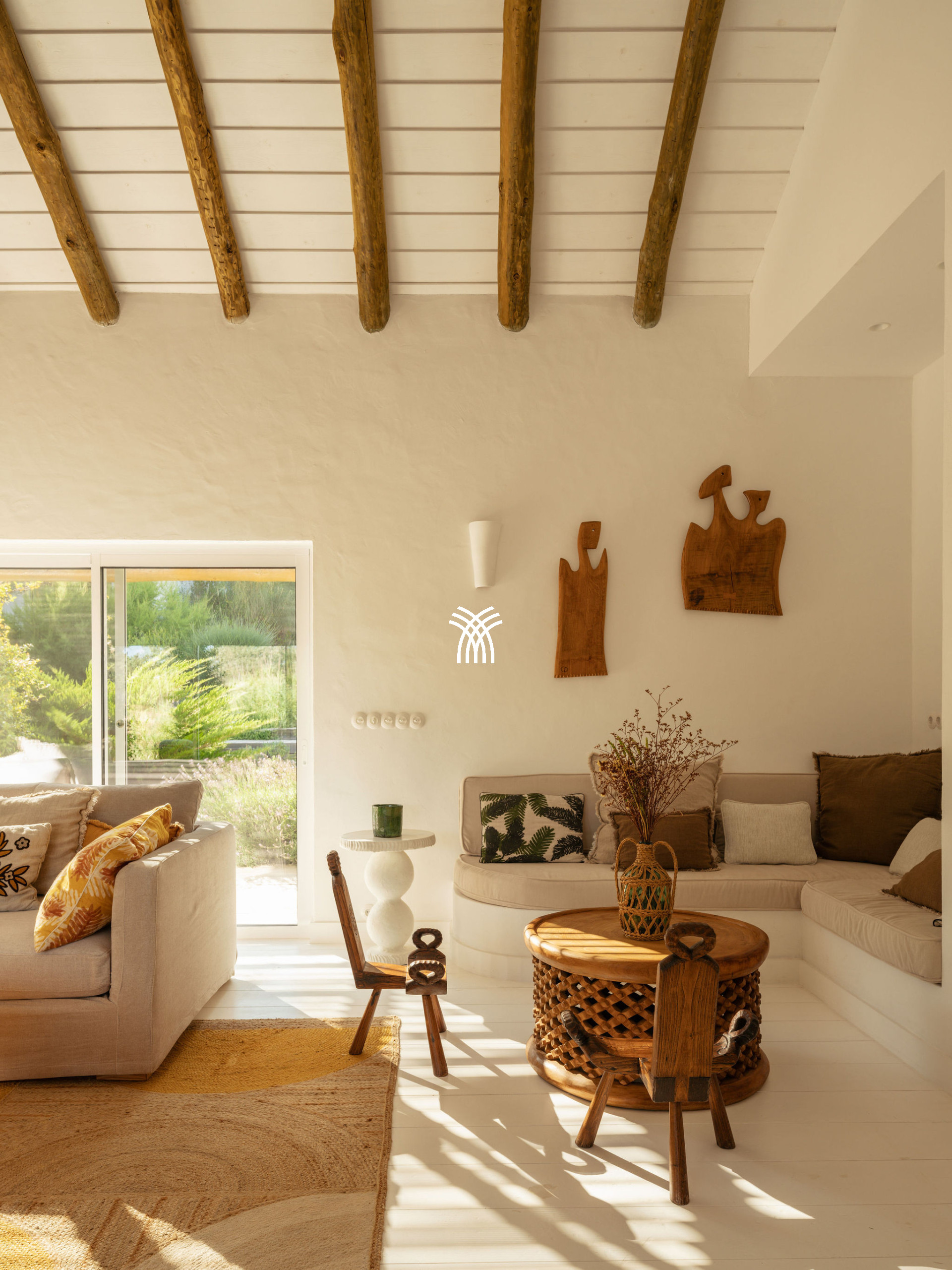 Immersed in the lush natural landscape of Comporta, Villa Katsu is an architect-designed retreat that embodies contemporary elegance and refined simplicity, where clean lines, wooden shutters, and harmonious proportions blend seamlessly with the surrounding environment. Bathed in natural light, the interiors unfold through expansive windows that invite the outdoors inside, illuminating crisp white walls, soaring ceilings, and warm parquet floors, while carefully curated artworks and subtle decorative accents bring vibrancy and personality to the serene aesthetic, creating an atmosphere that defines the essence of a luxury villa rental Portugal and an authentic luxury villa rental Comporta.