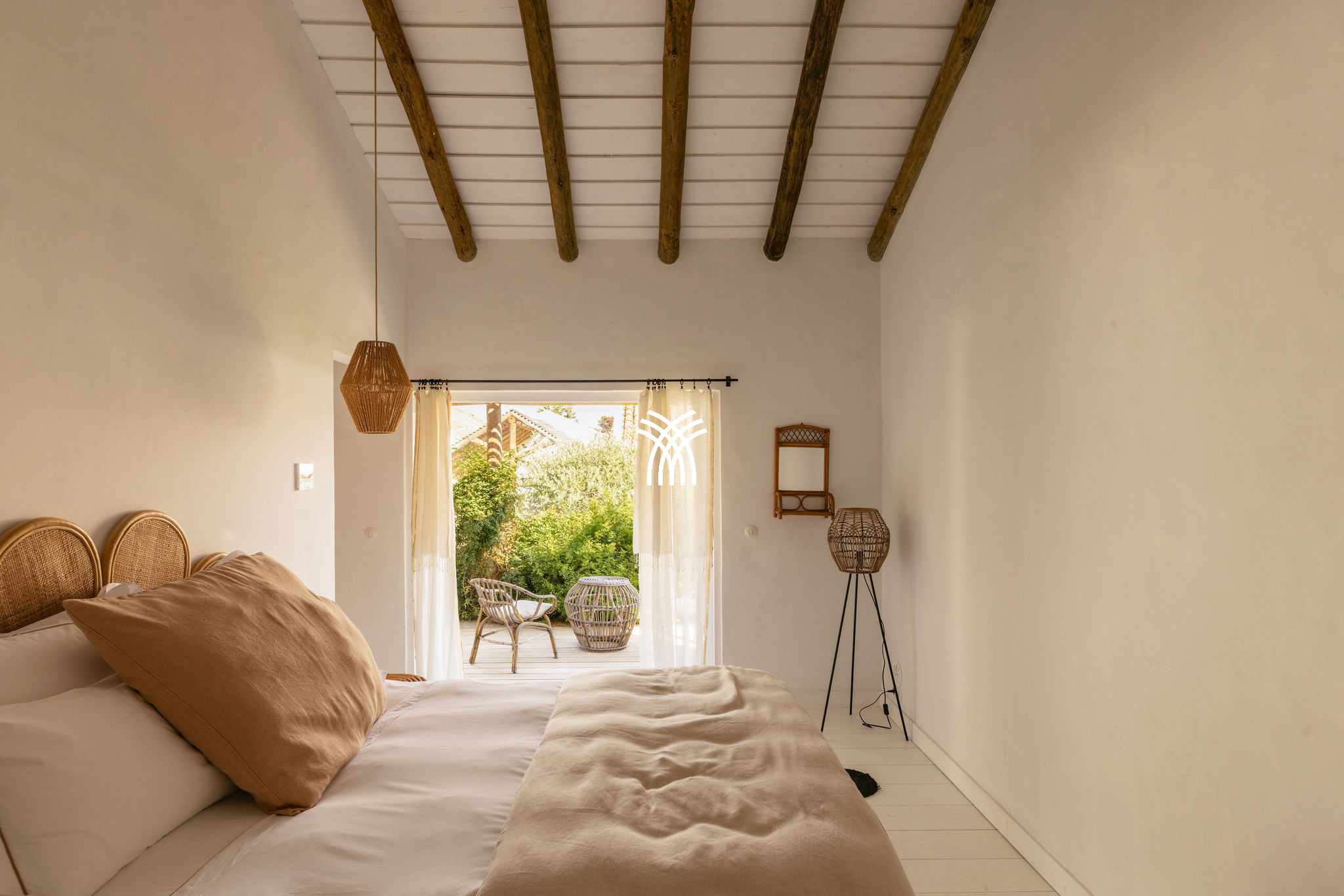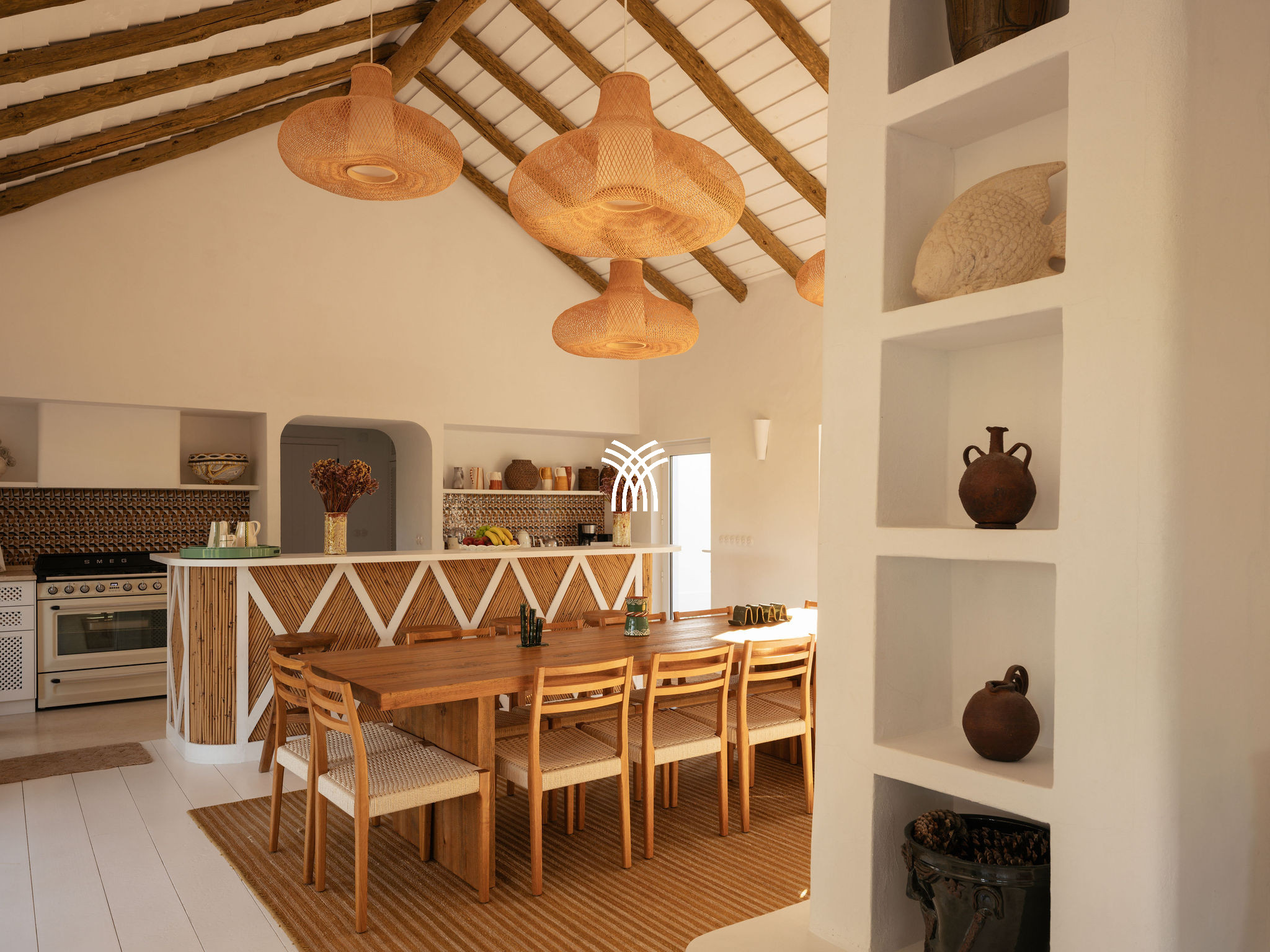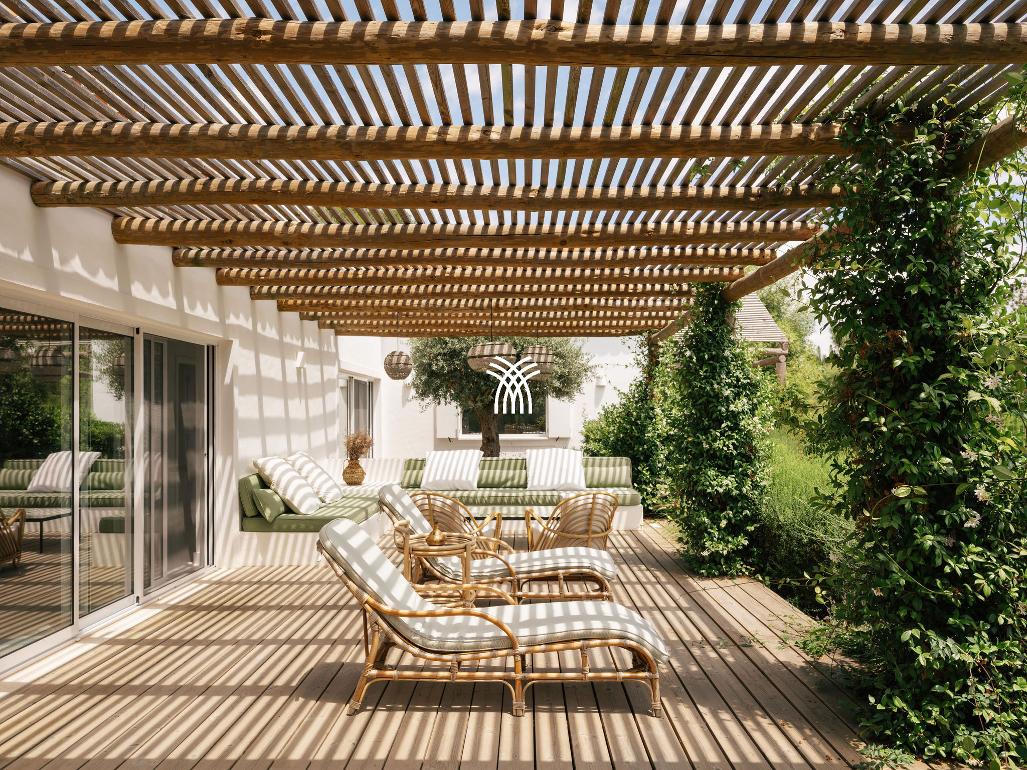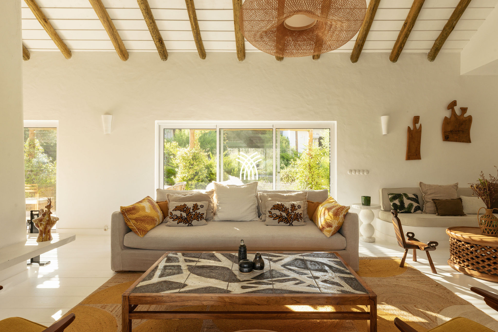 Immersed in the lush natural landscape of Comporta, Villa Katsu is an architect-designed retreat that embodies contemporary elegance and refined simplicity, where clean lines, wooden shutters, and harmonious proportions blend seamlessly with the surrounding environment. Bathed in natural light, the interiors unfold through expansive windows that invite the outdoors inside, illuminating crisp white walls, soaring ceilings, and warm parquet floors, while carefully curated artworks and subtle decorative accents bring vibrancy and personality to the serene aesthetic, creating an atmosphere that defines the essence of a luxury villa rental Portugal and an authentic luxury villa rental Comporta.