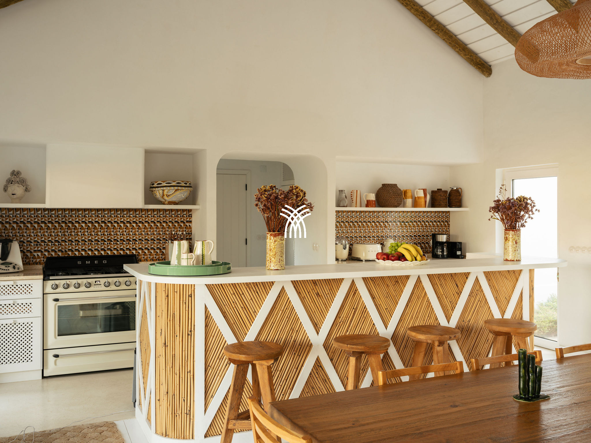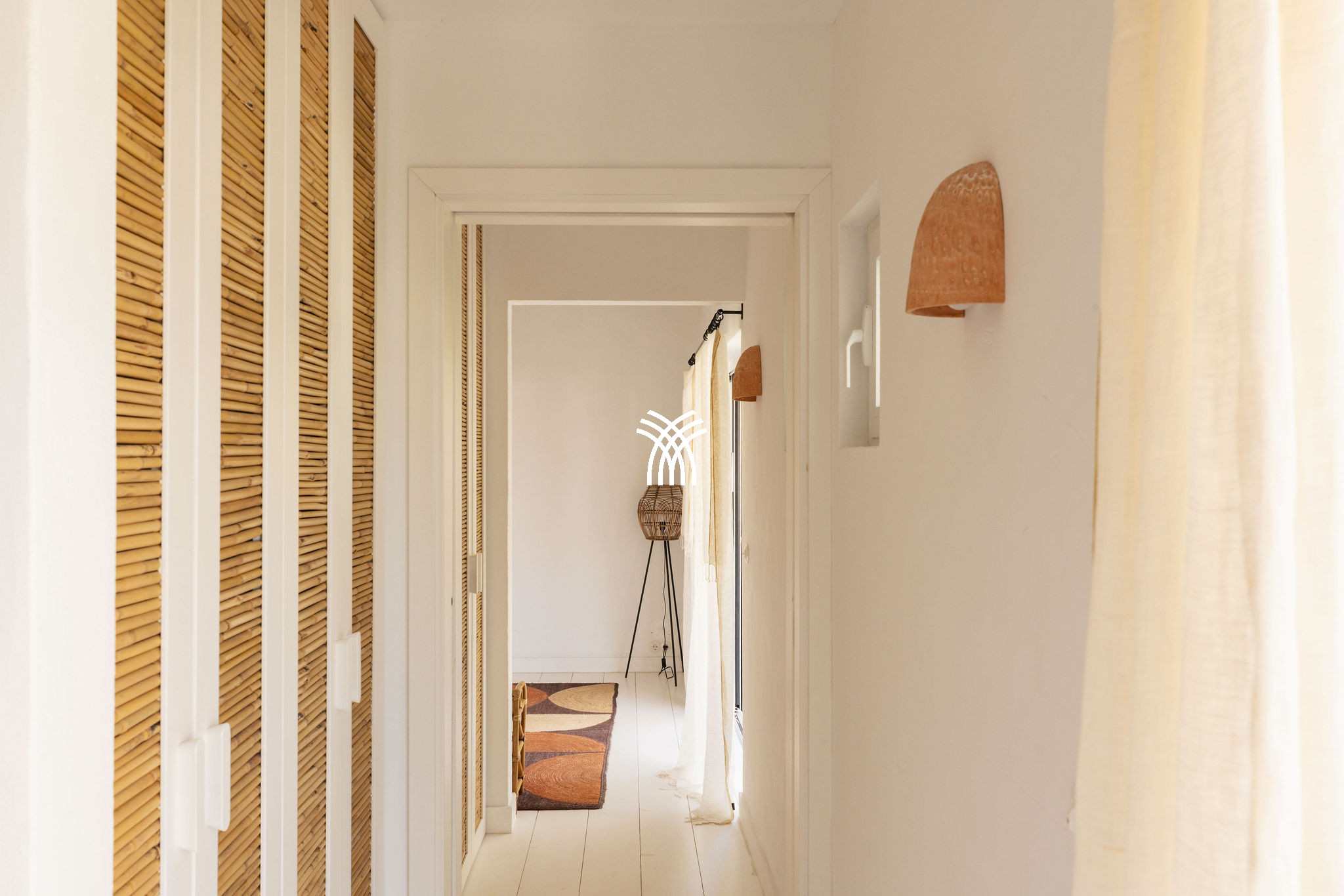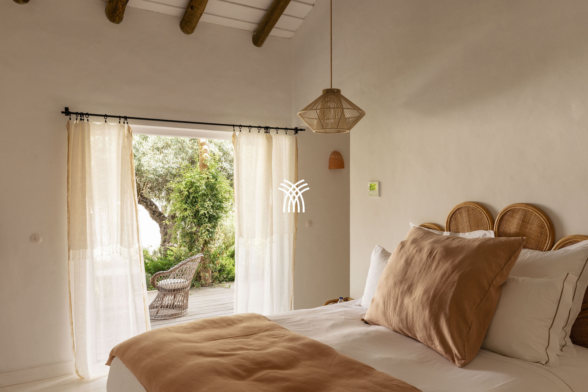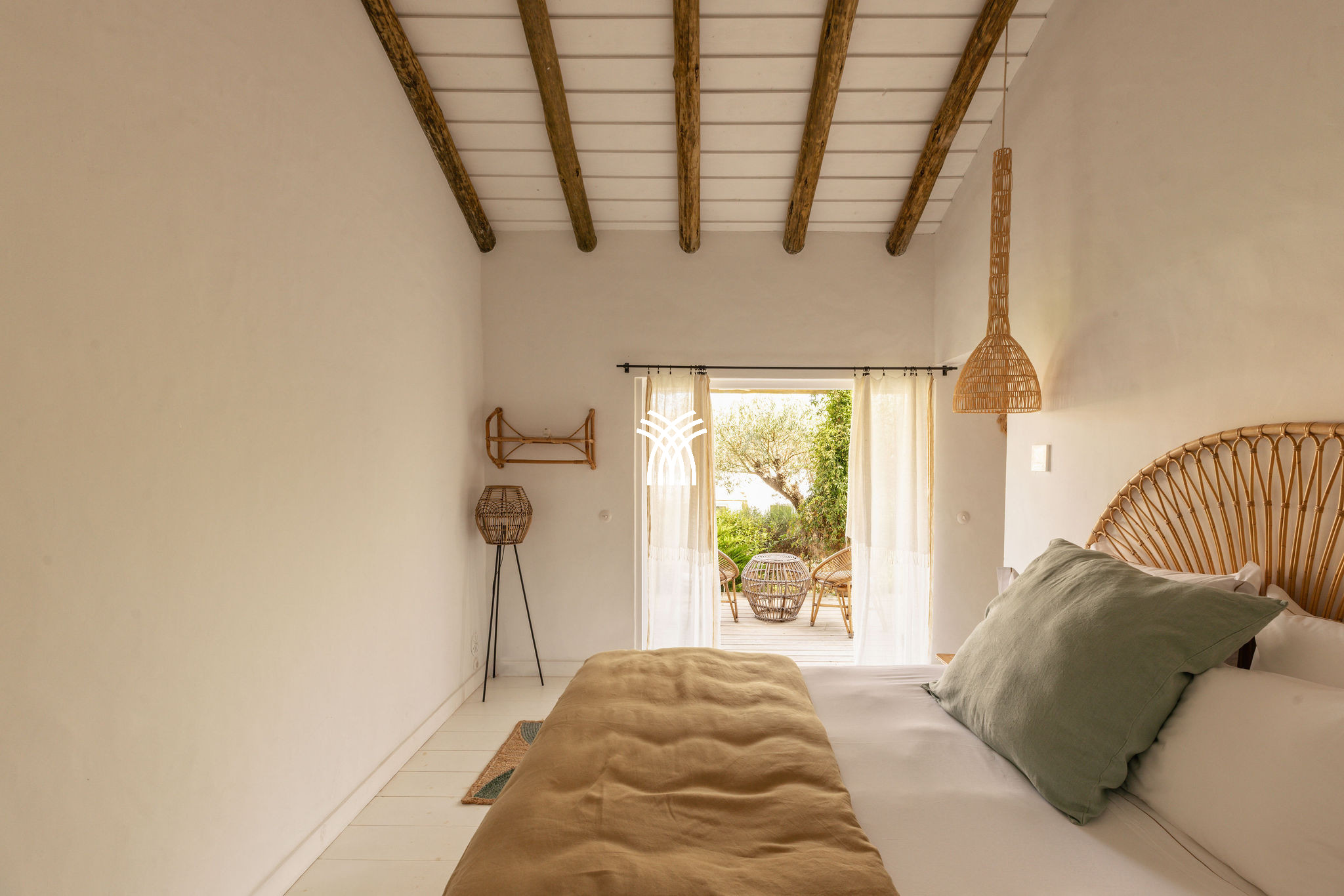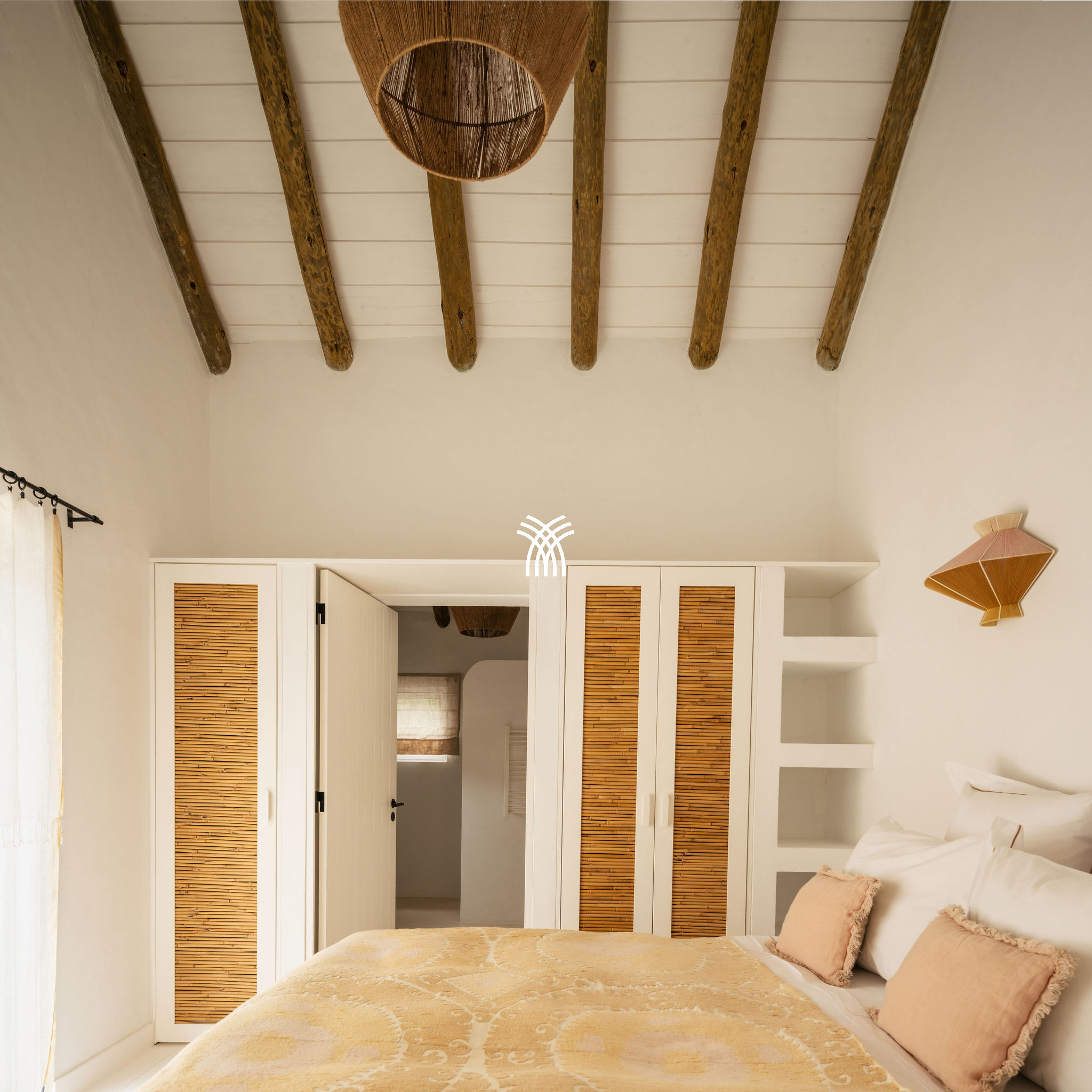 Immersed in the lush natural landscape of Comporta, Villa Katsu is an architect-designed retreat that embodies contemporary elegance and refined simplicity, where clean lines, wooden shutters, and harmonious proportions blend seamlessly with the surrounding environment. Bathed in natural light, the interiors unfold through expansive windows that invite the outdoors inside, illuminating crisp white walls, soaring ceilings, and warm parquet floors, while carefully curated artworks and subtle decorative accents bring vibrancy and personality to the serene aesthetic, creating an atmosphere that defines the essence of a luxury villa rental Portugal and an authentic luxury villa rental Comporta.