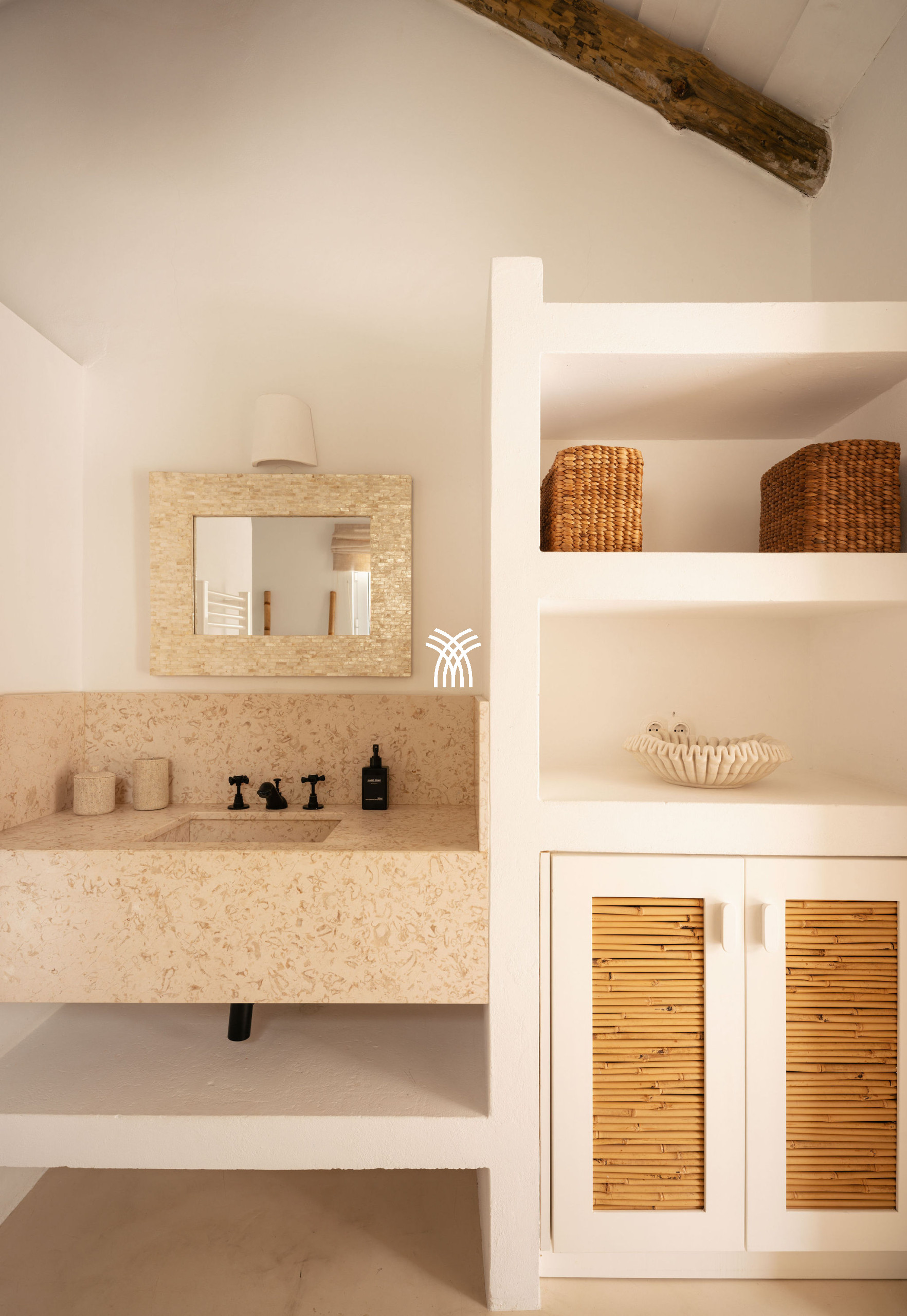 Designed to accommodate up to fourteen guests, Villa Branca features six beautifully appointed bedrooms and eight bathrooms, complemented by a comfortable sofa bed that enhances flexibility without compromising elegance. Each bedroom opens onto its own unique perspective of the surrounding landscape and is finished with high-quality linens and ensuite bathrooms, creating private sanctuaries of comfort and calm. A separate private area connected to the main villa by a walkway offers an ideal space for children, complete with its own bedroom and bathroom, ensuring both independence and convenience within the estate.