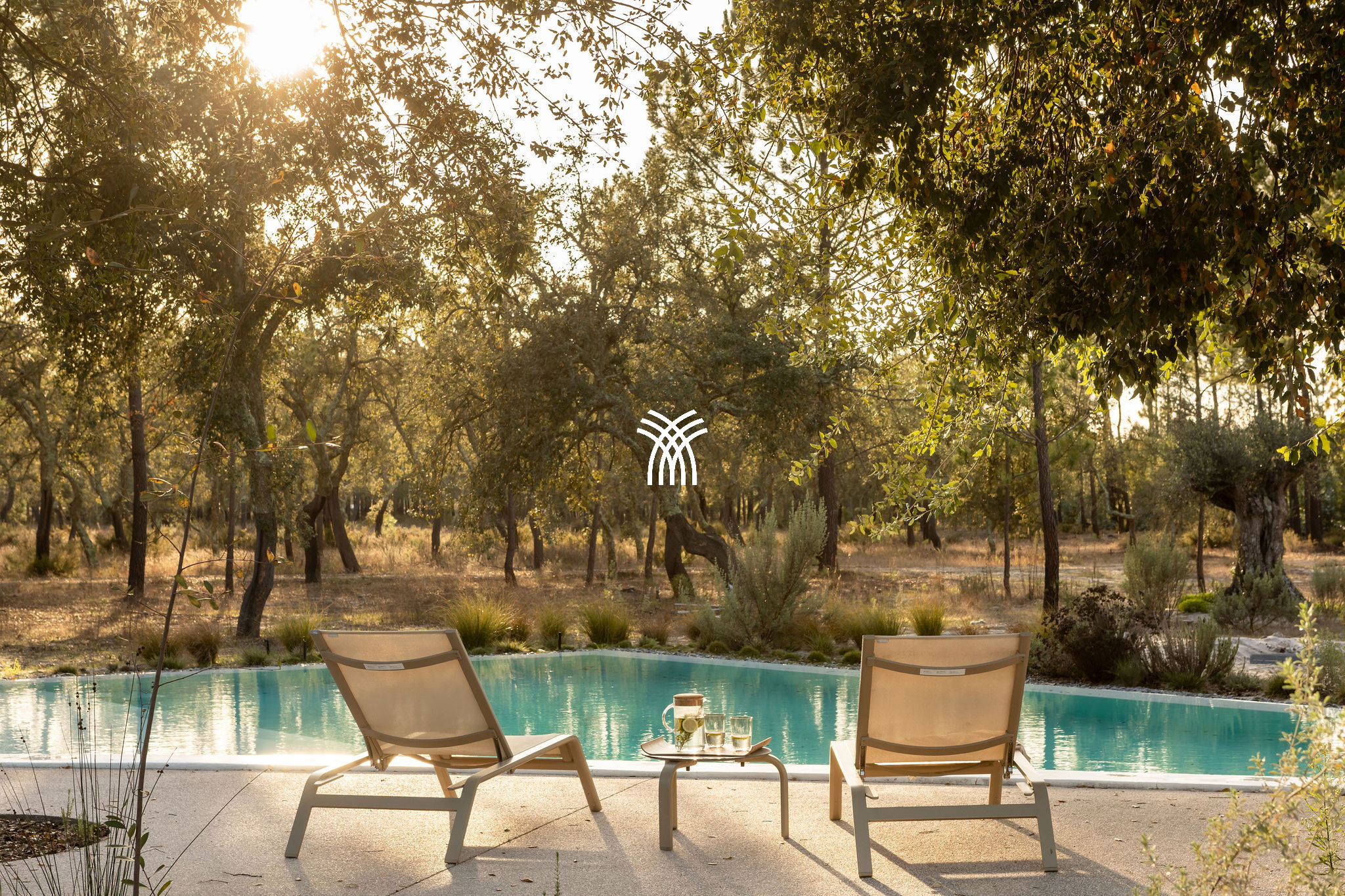 Mornings begin with enchanting views over the landscaped gardens and the inviting swimming pool, where soft light, open skies, and gentle stillness define the rhythm of the day. From sunrise to sunset, the changing colors of the Comporta sky frame every moment with a sense of peace and quiet beauty. The private pool becomes a true oasis, offering refreshing swims, sun-soaked afternoons, and serene moments of relaxation, all set against a backdrop of lush greenery and open пространства.